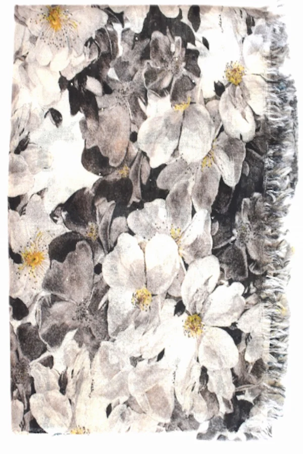80% Cashmere 20% Silk Superfine Mini-sequins Printed Stole. Grey/Beige Floral Print. One size (TU). Entirely manufactured in Italy in our own workshops.