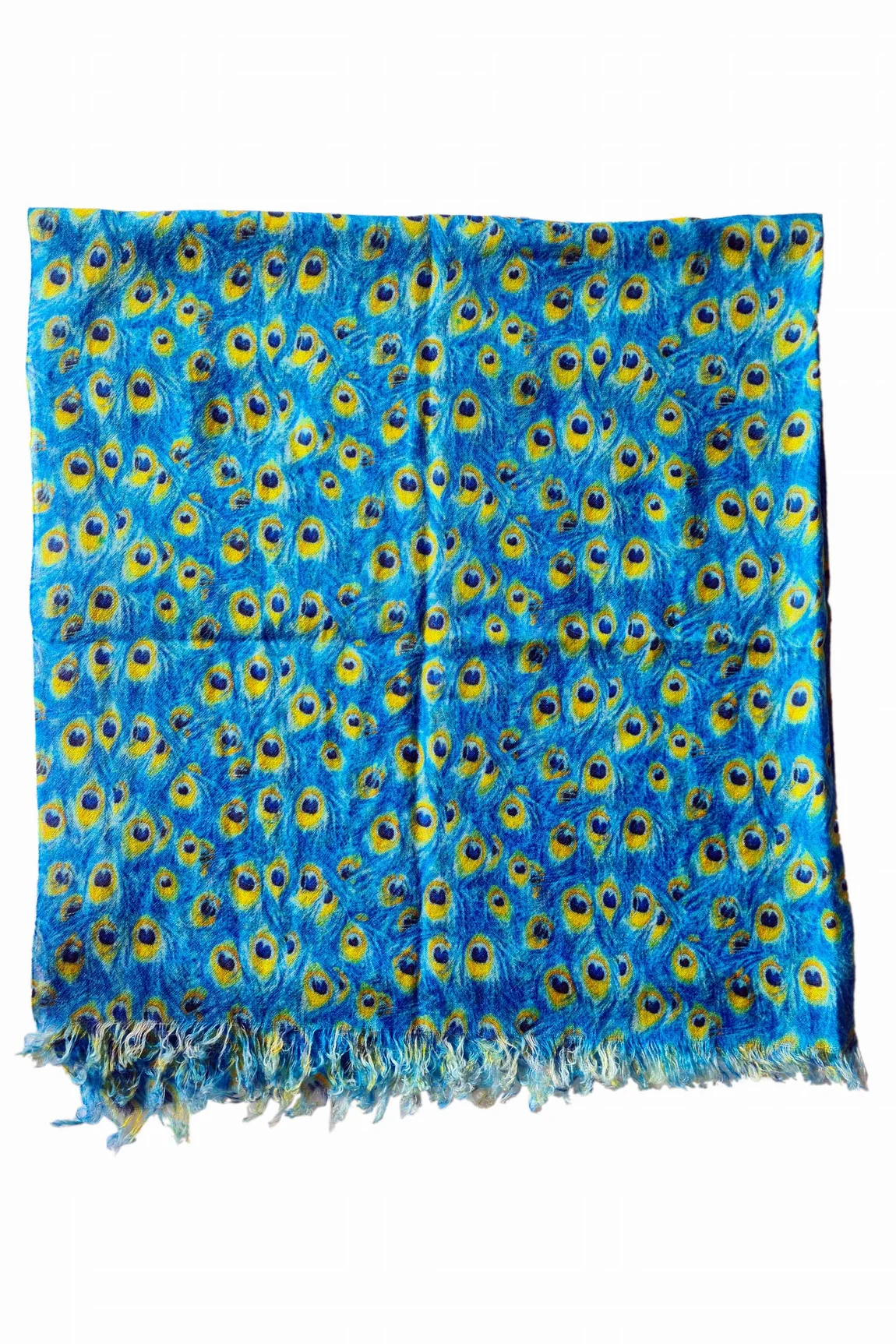 80% Cashmere 20% Silk Superfine Printed Stole. Turquoise Blue Peacock Feather Print. One Size (TU). 70 x 200 cm. Entirely manufactured in Italy In our own workshops.