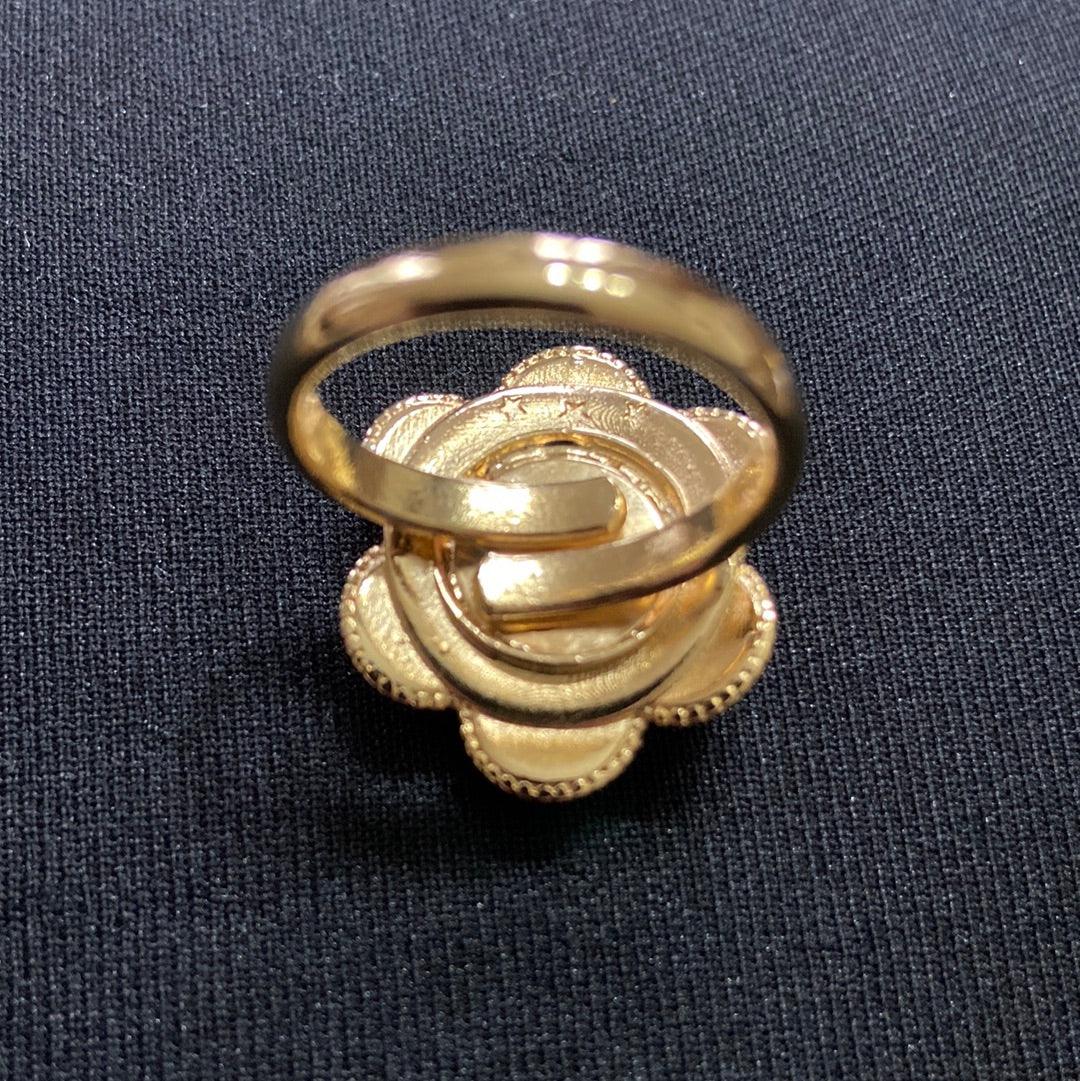 Bague ajustable plaquée or pierres jaune orange en forme de fleur Shabada