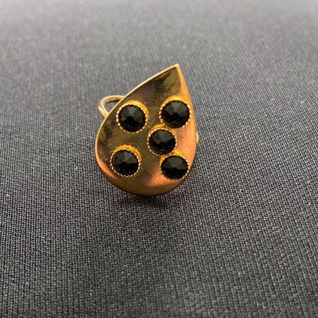 Bague ajustable plaquée or et ornée de 5 cristaux Swarovski® noirs, modèle Vic en forme de goutte d’eau de la marque Argelouse