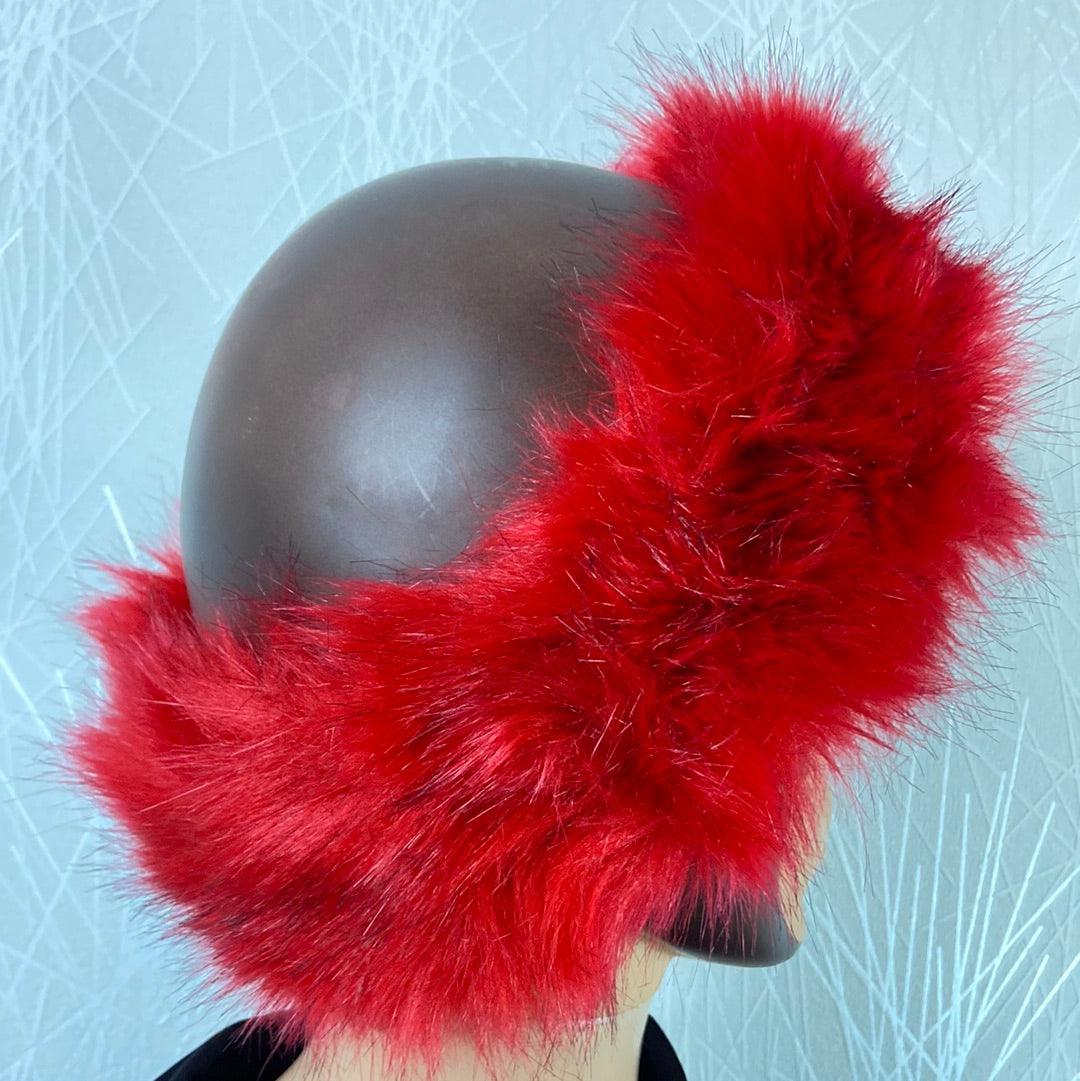 Bandeau tour de tête rouge pour femme en fourrure synthétique.