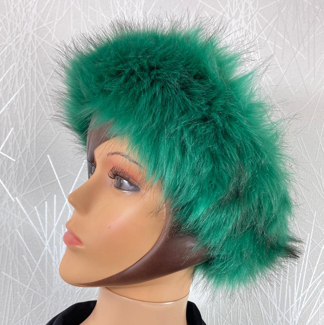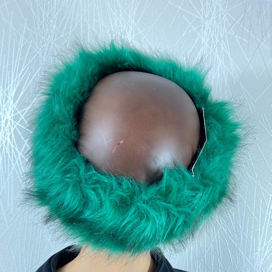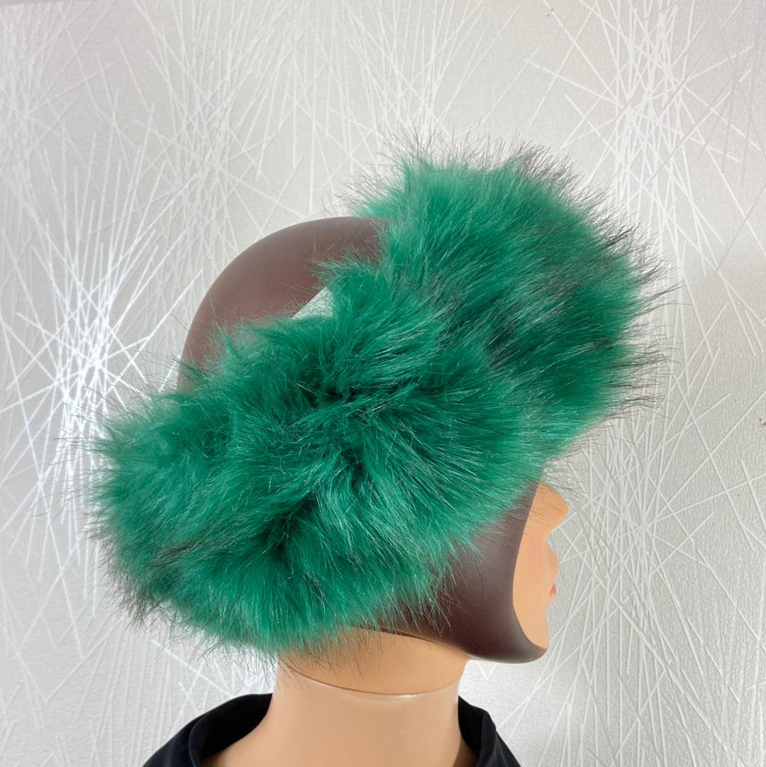 Bandeau tour de tête pour femme en fourrure synthétique verte.