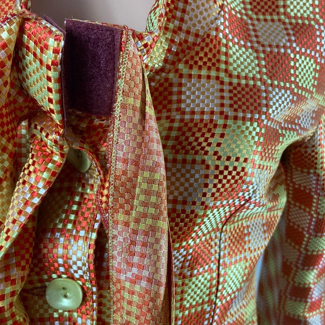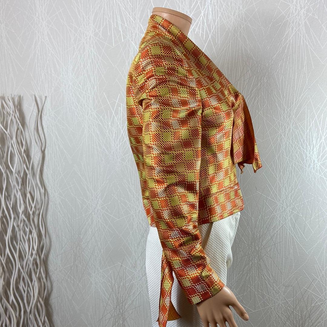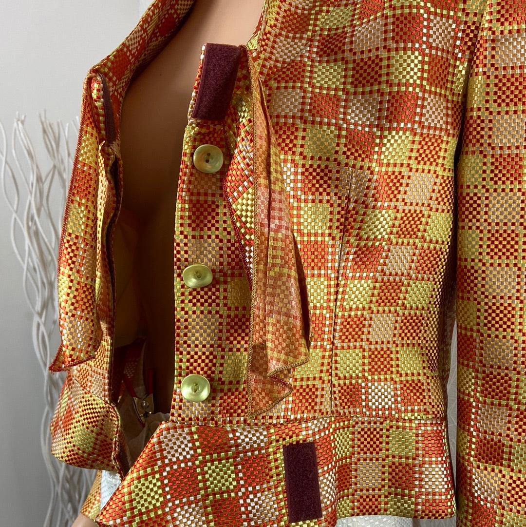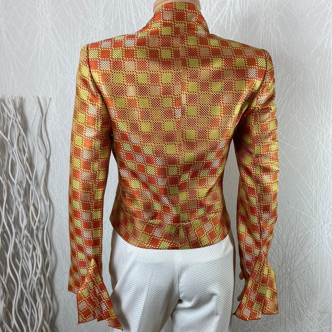 Blazer de créateur doublé en soie motifs carreaux tons orangés Tabala Paris