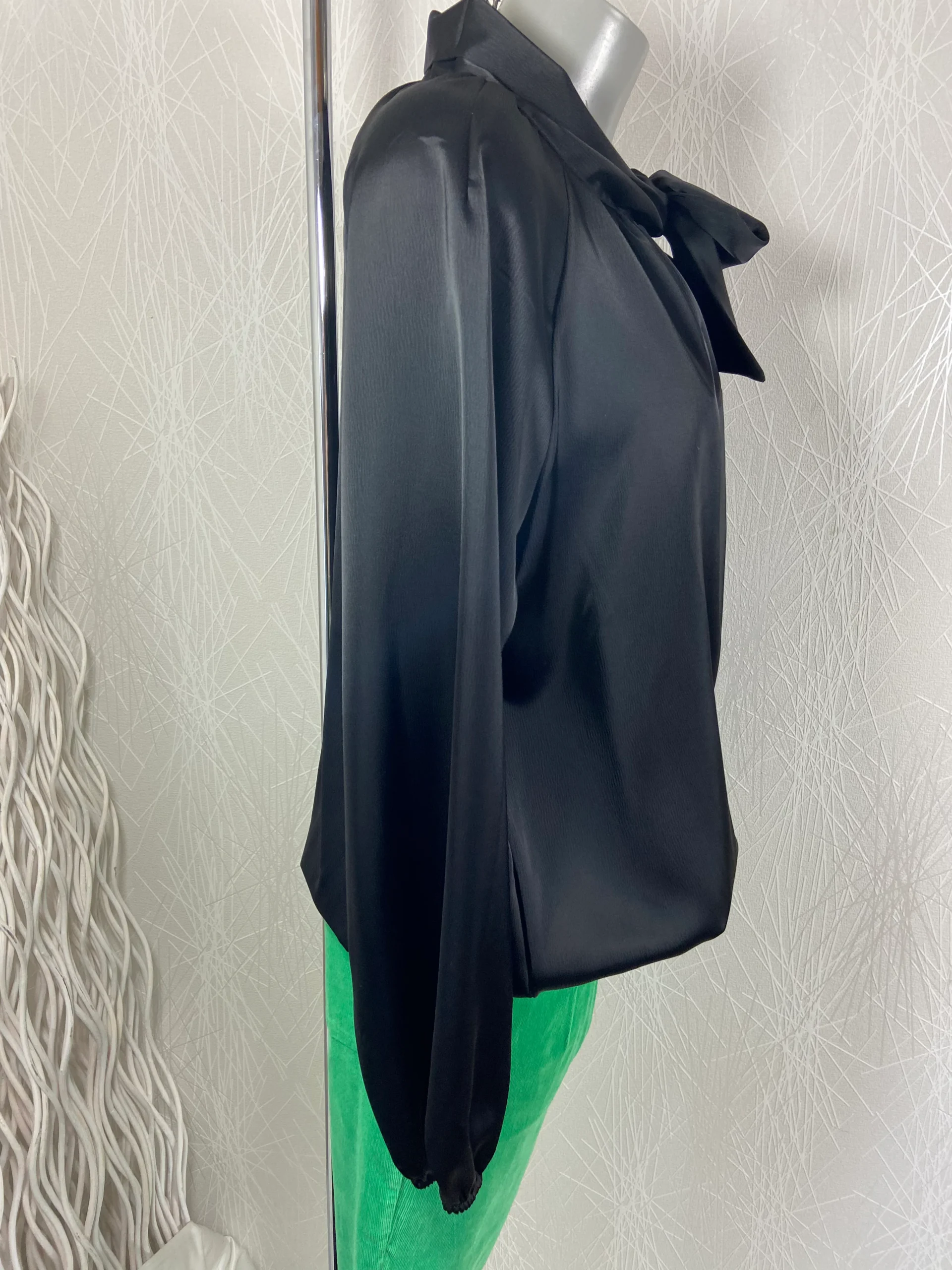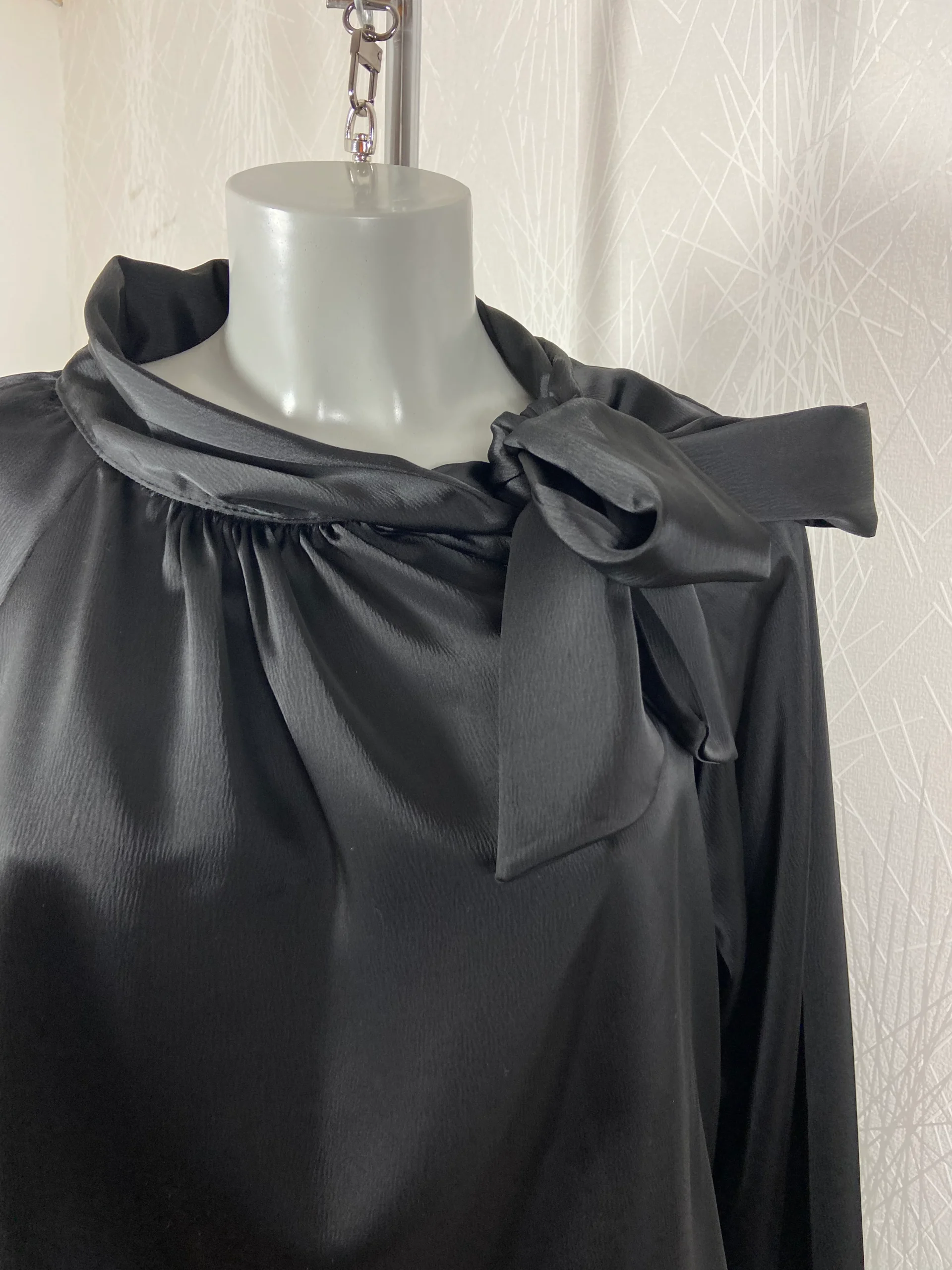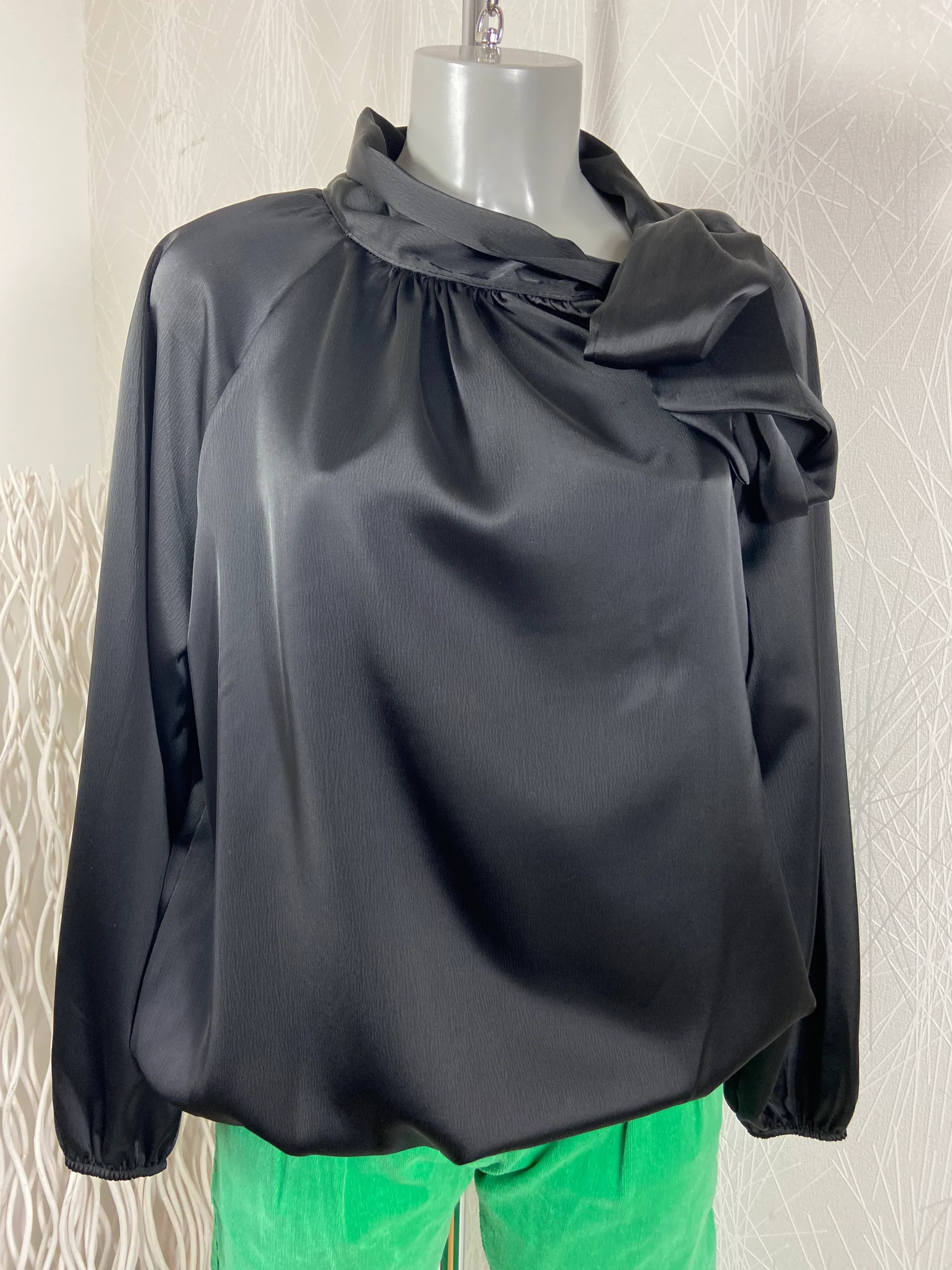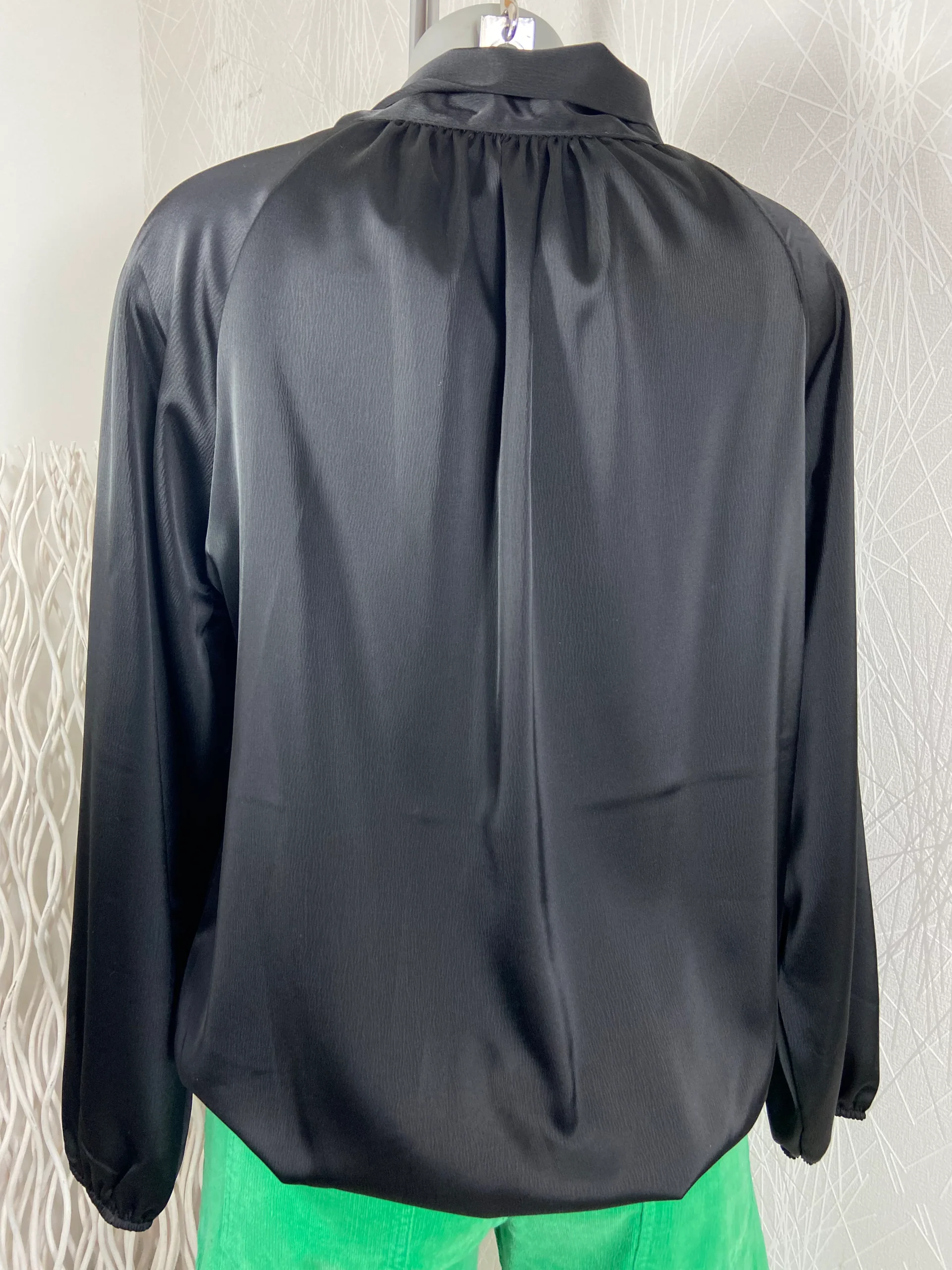 Blouse ample noire tissu satin avec flot Victoria