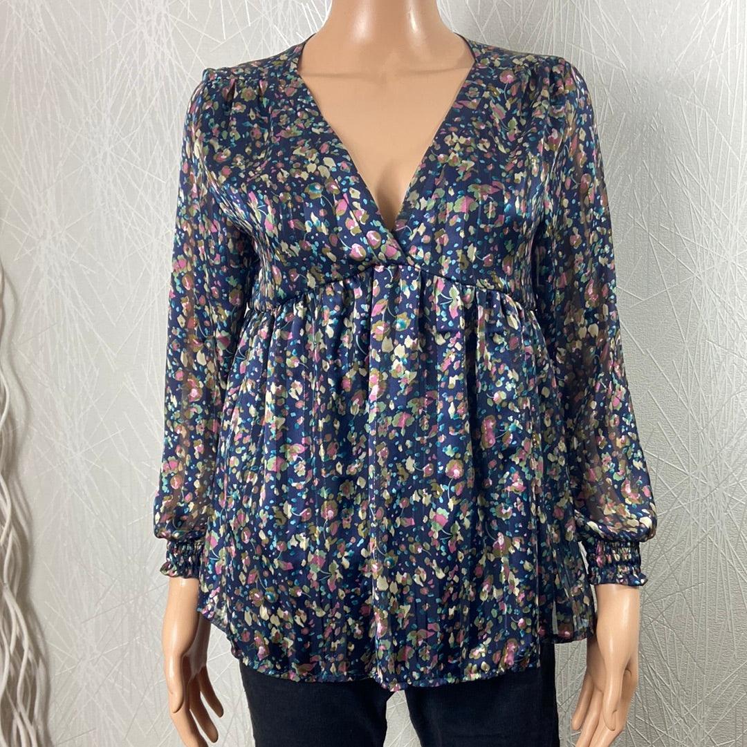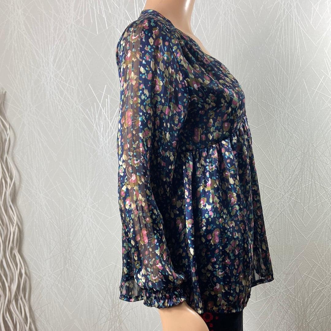 Blouse bleu marine motifs fleuris col V Les Petites Fleurs