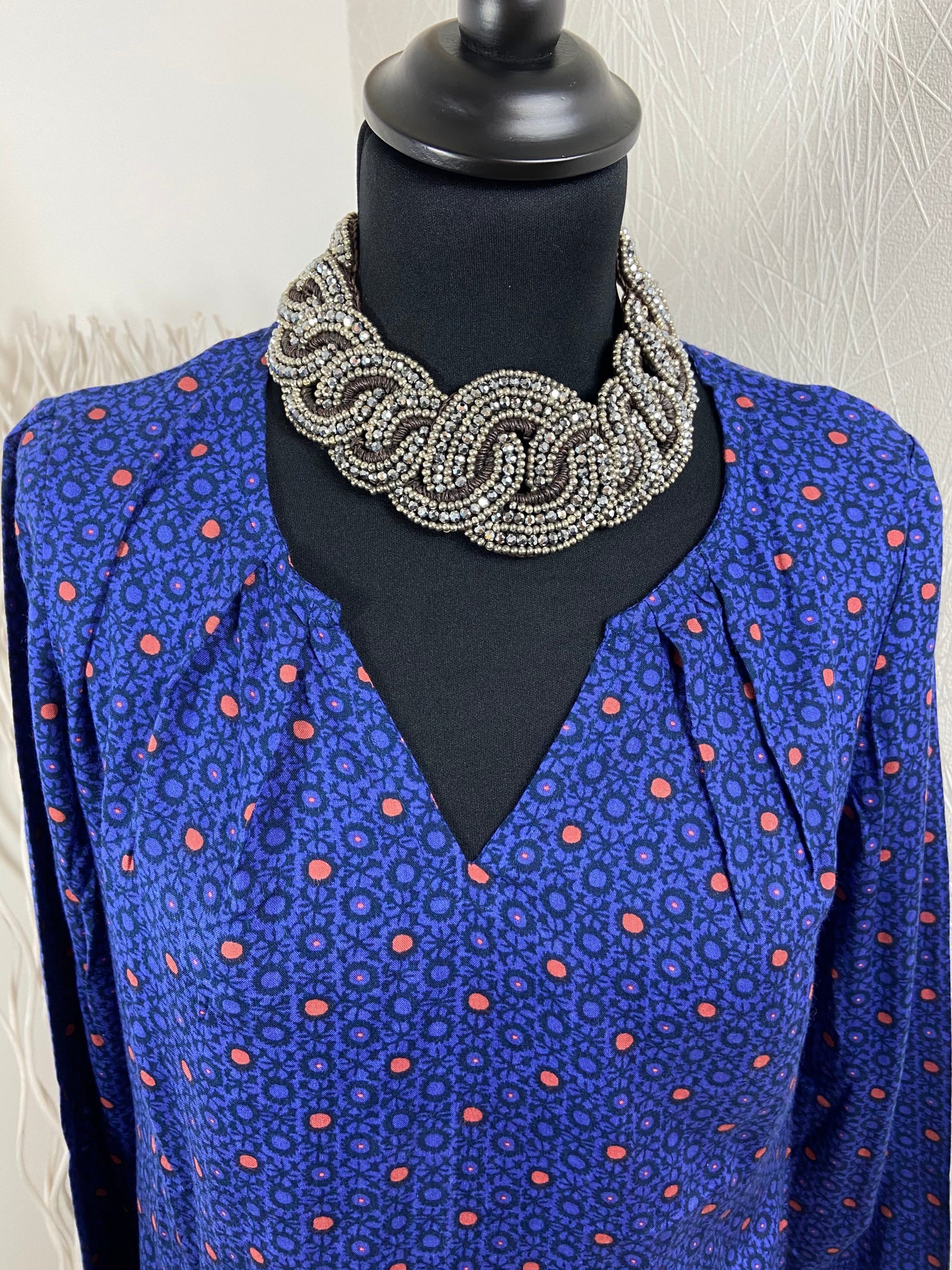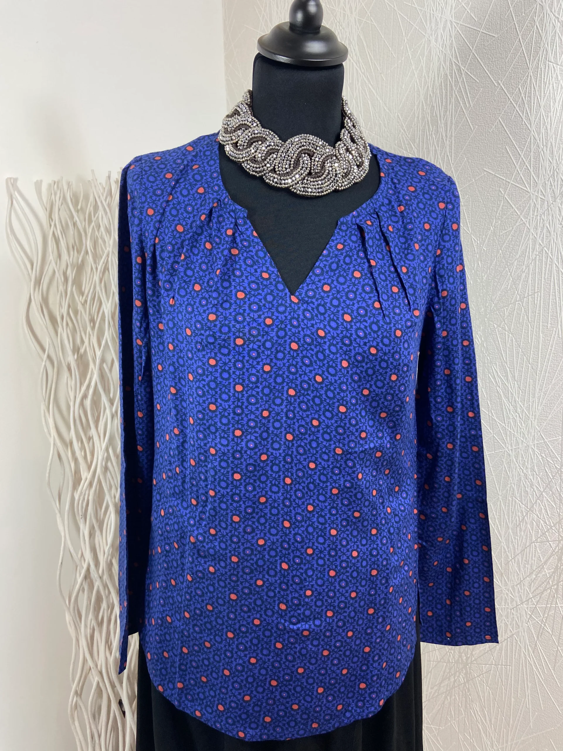 Blouse multicolore ras du cou manches longues coupe droite Gévana