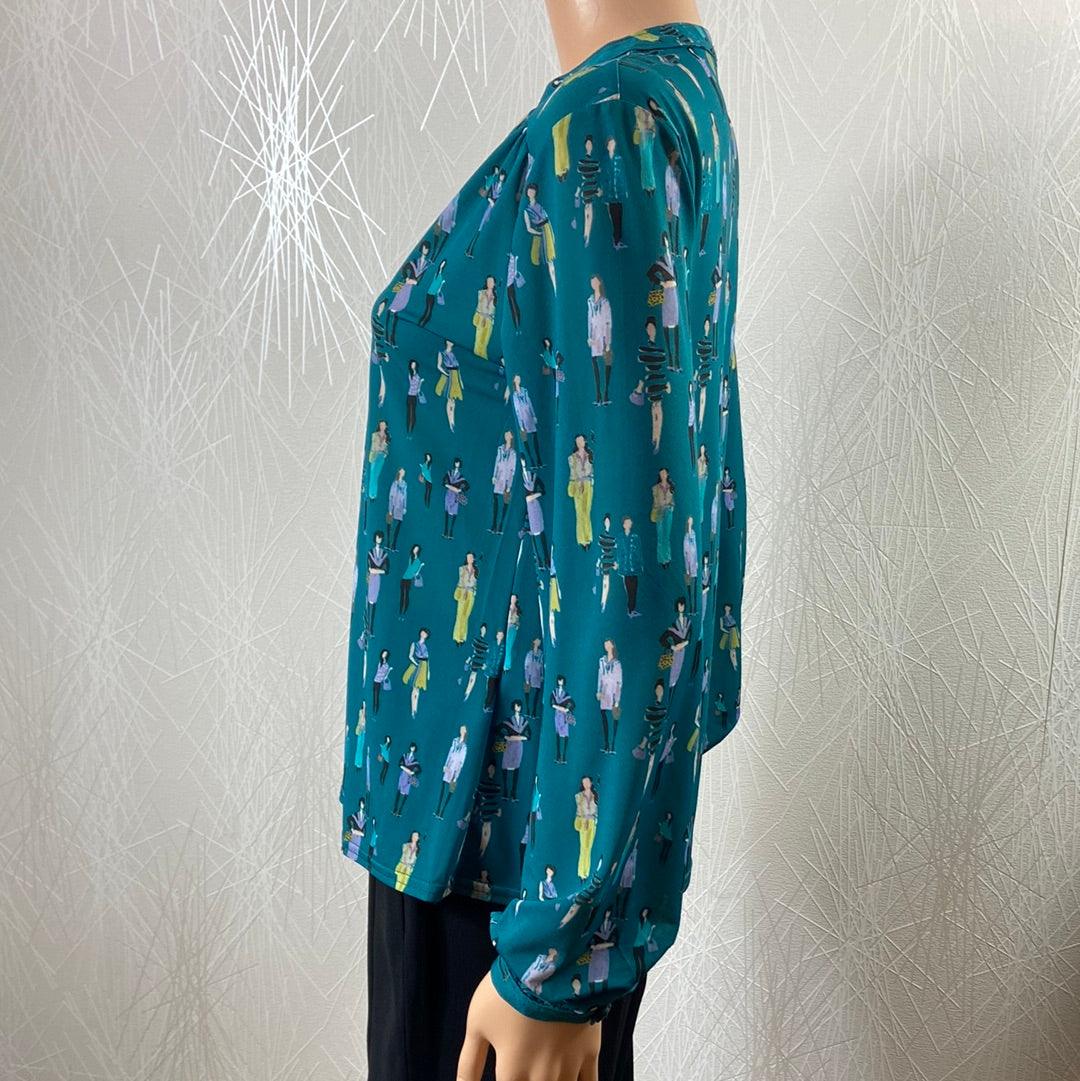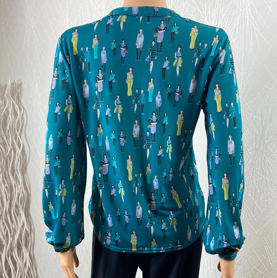 Blouse bleue avec motifs de femmes de la marque Le Singe de Julie.