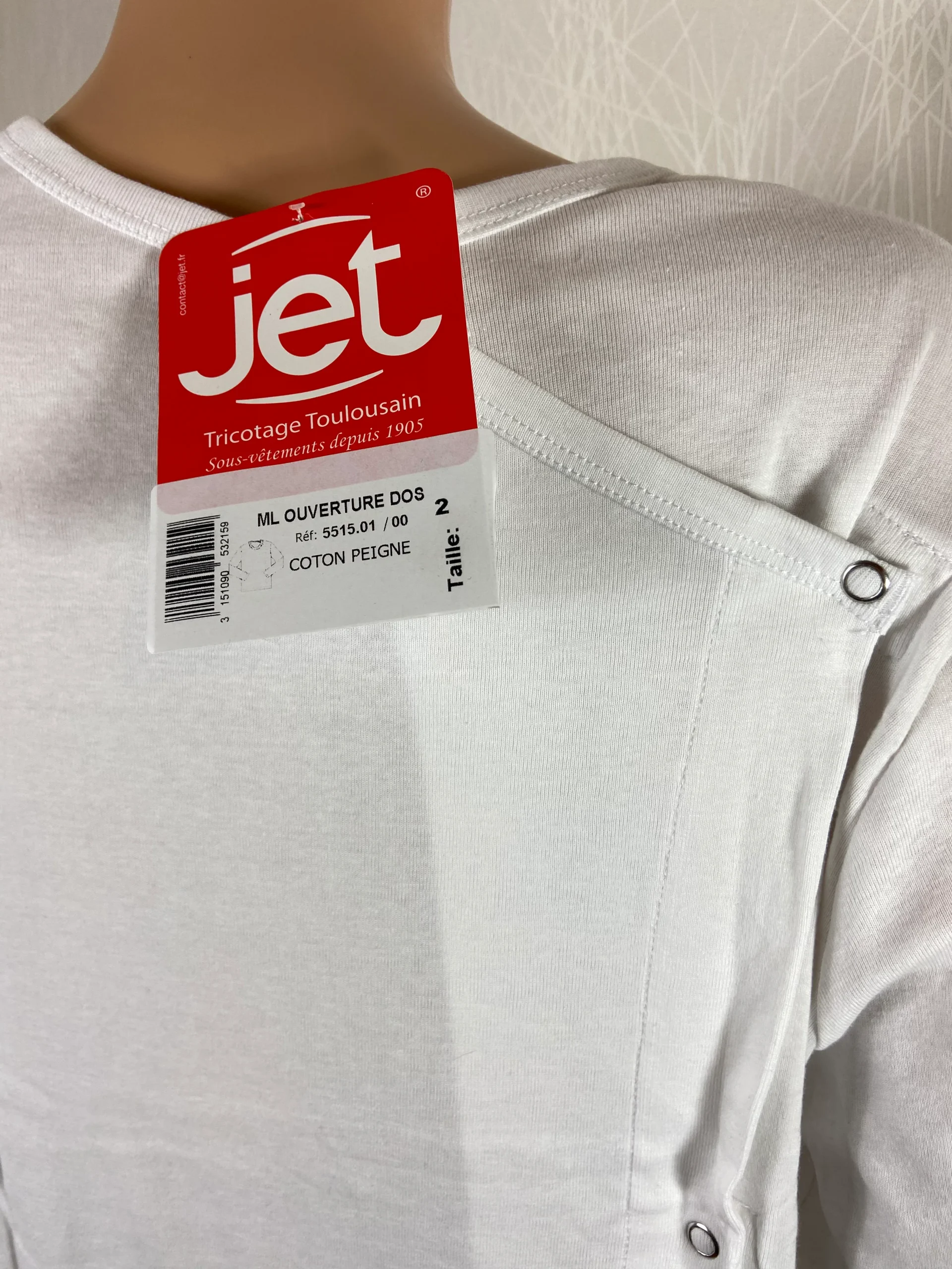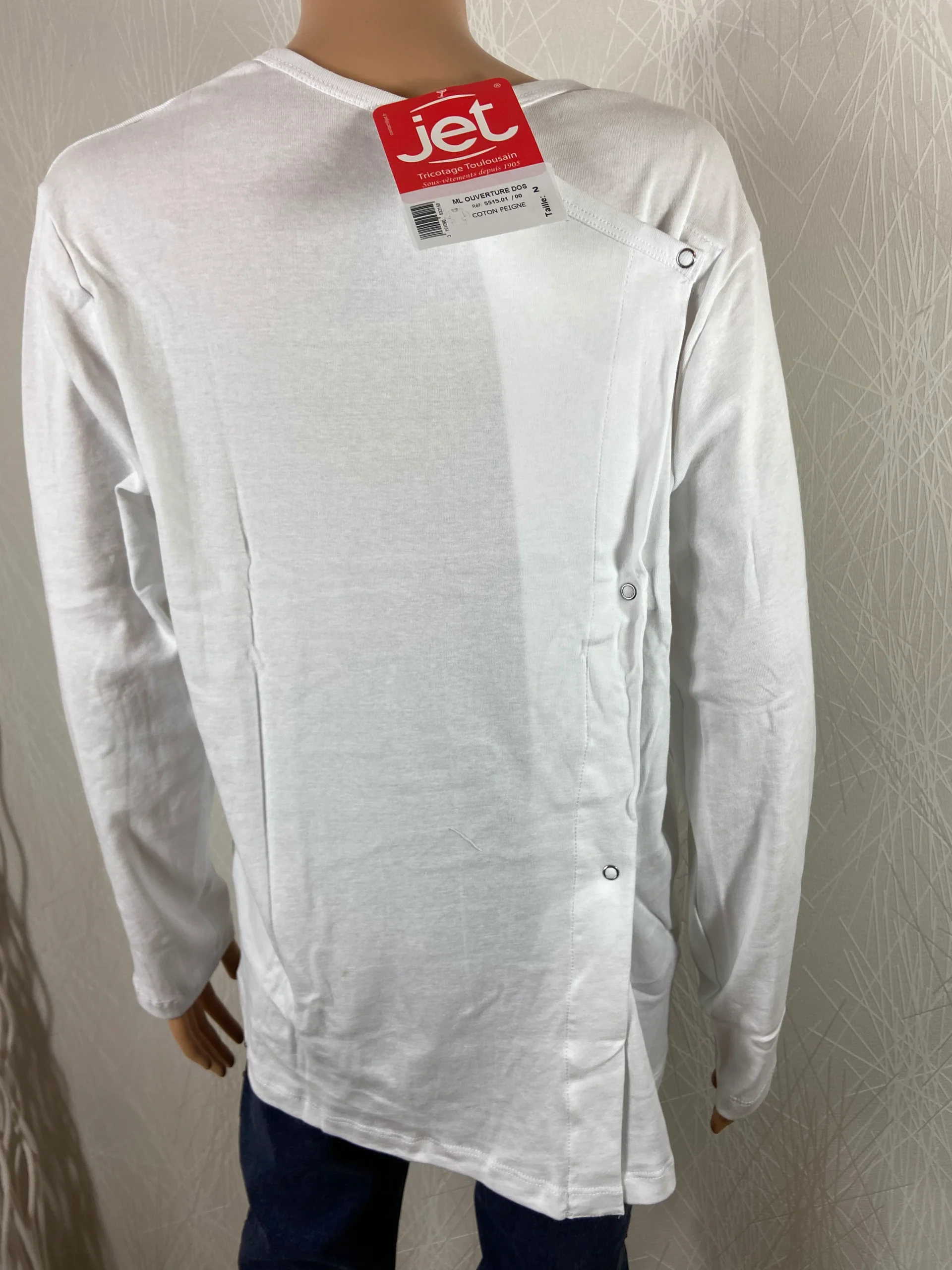 Blouse boutonnée dans le dos de la marque Jet Tricotage Toulousain. Manches longues, encolure arrondie, ouverture au dos et coupe droite. Fabriquée en France. Matière : 100% coton peigné Couleur : Blanc Marque : Jet Tricotage Toulousain Taille 2 / M / 38 – Réf : 38RM5607 Dimensions : Largeur épaule : de 39 à […]
