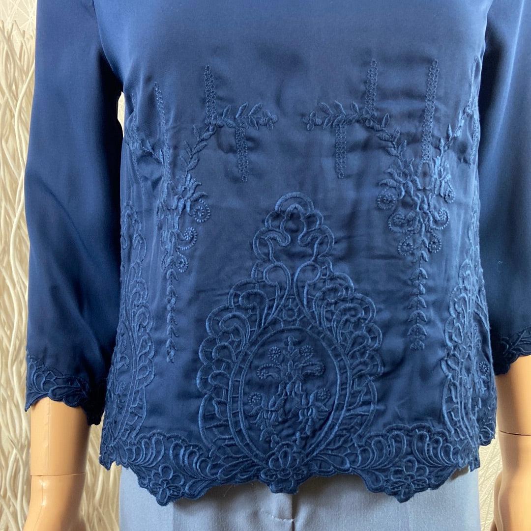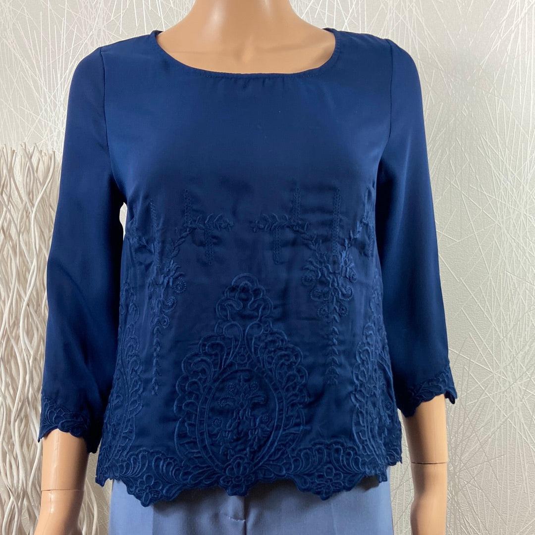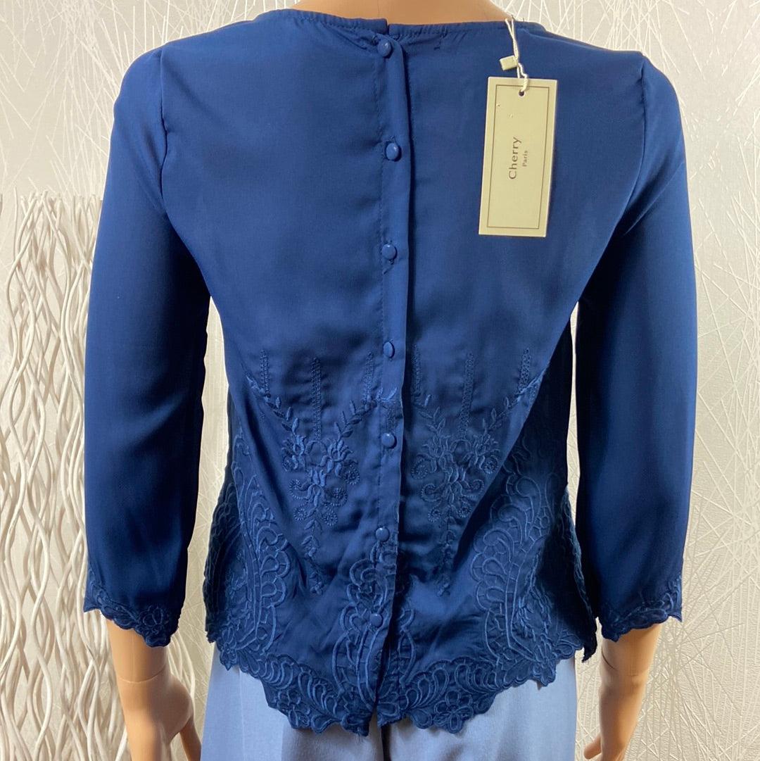Jolie blouse bleue brodée pour femme de la marque Cherry Paris.