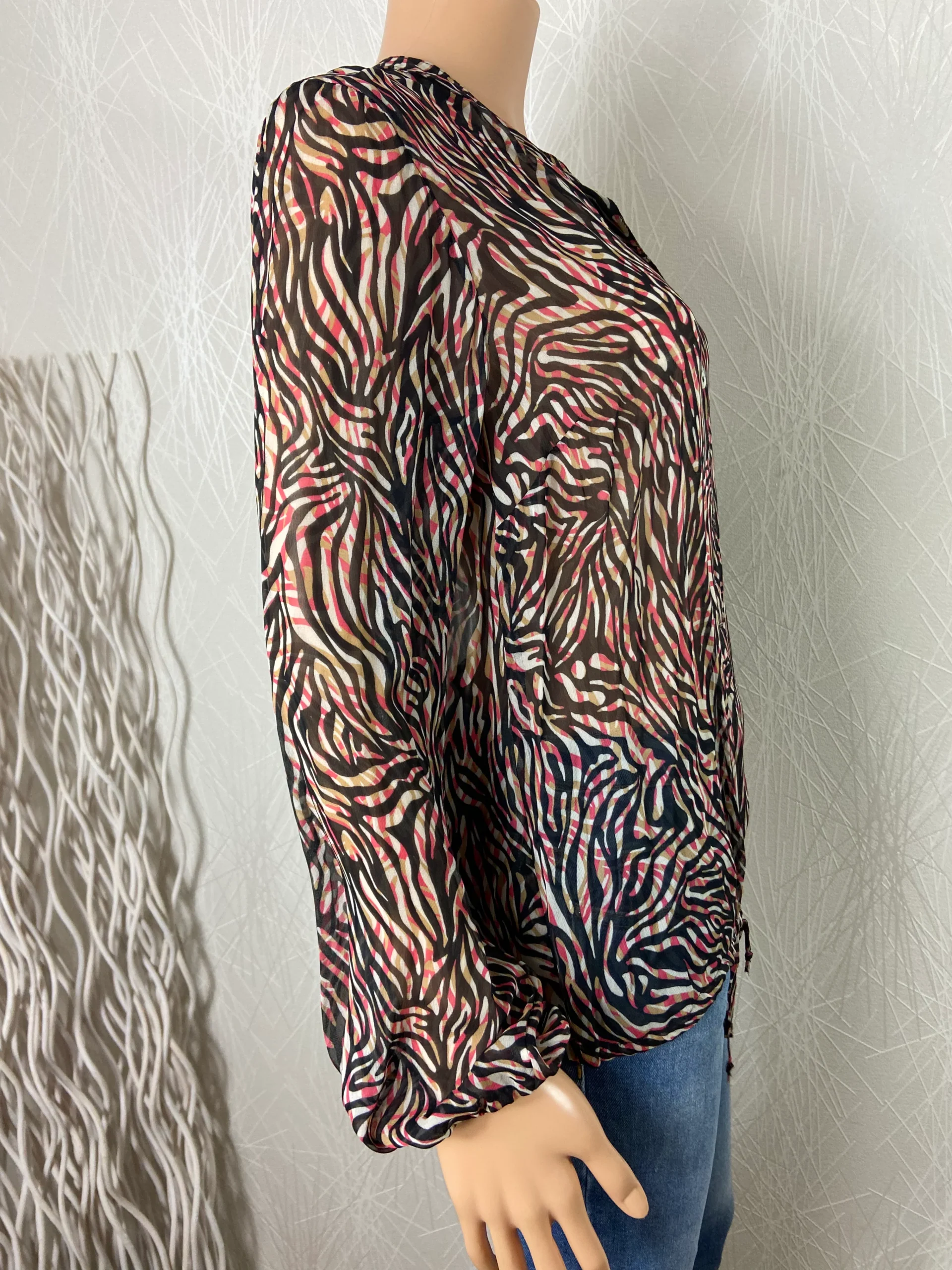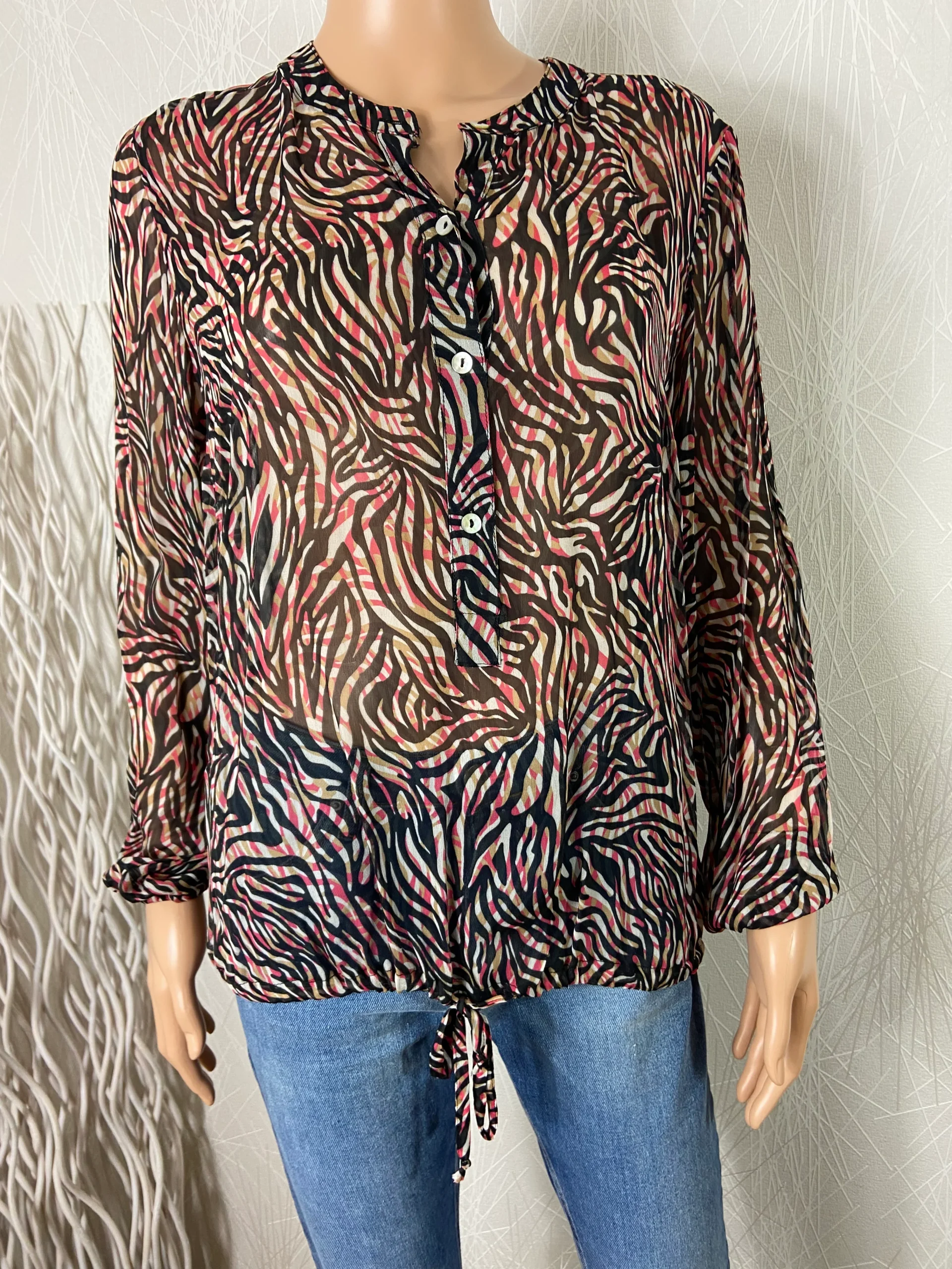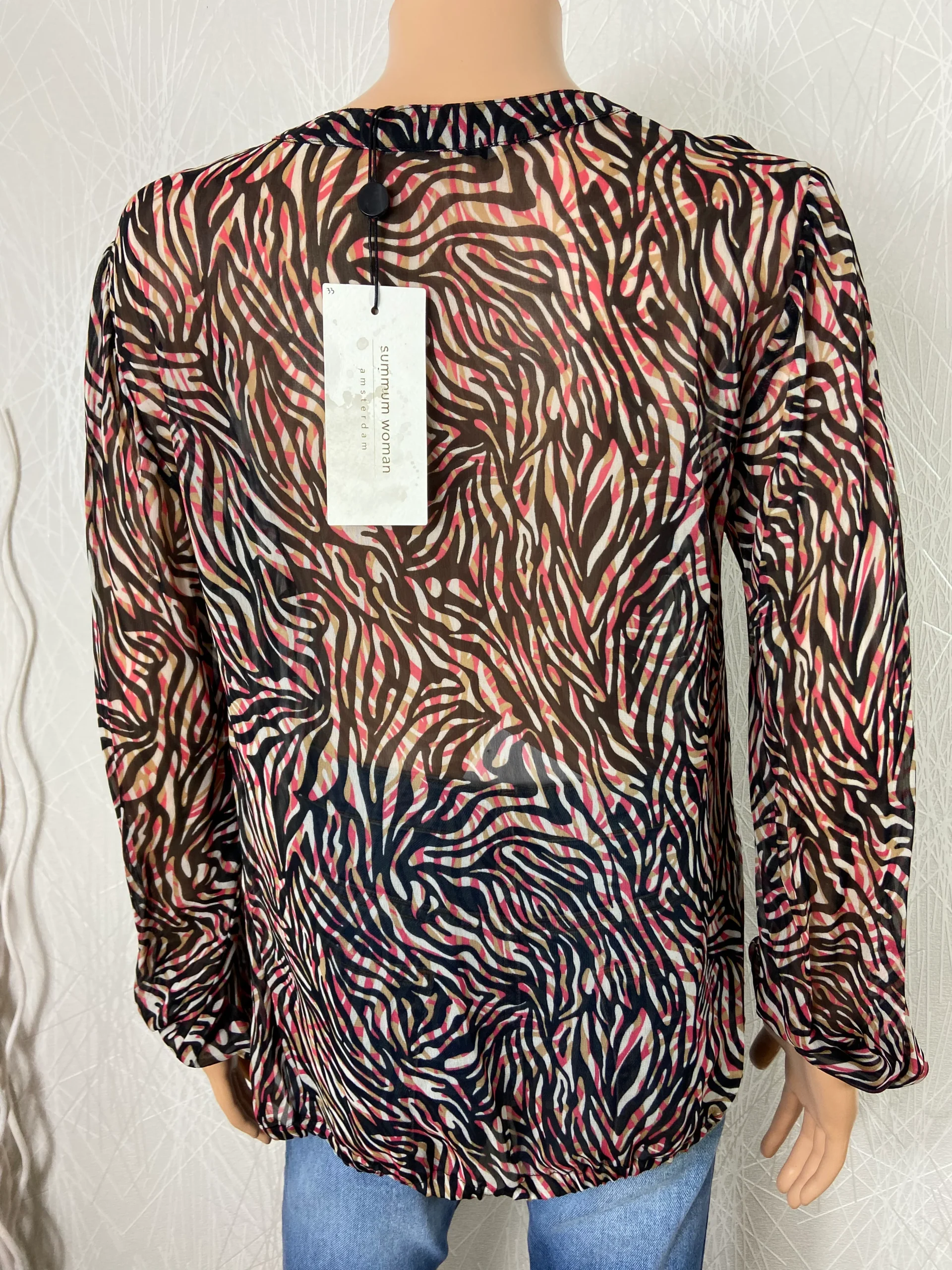 Blouse multicolore à imprimé zèbre pour femme de la marque SUMMUM WOMAN, joli imprimé zébré marron, rose, noir et blanc.