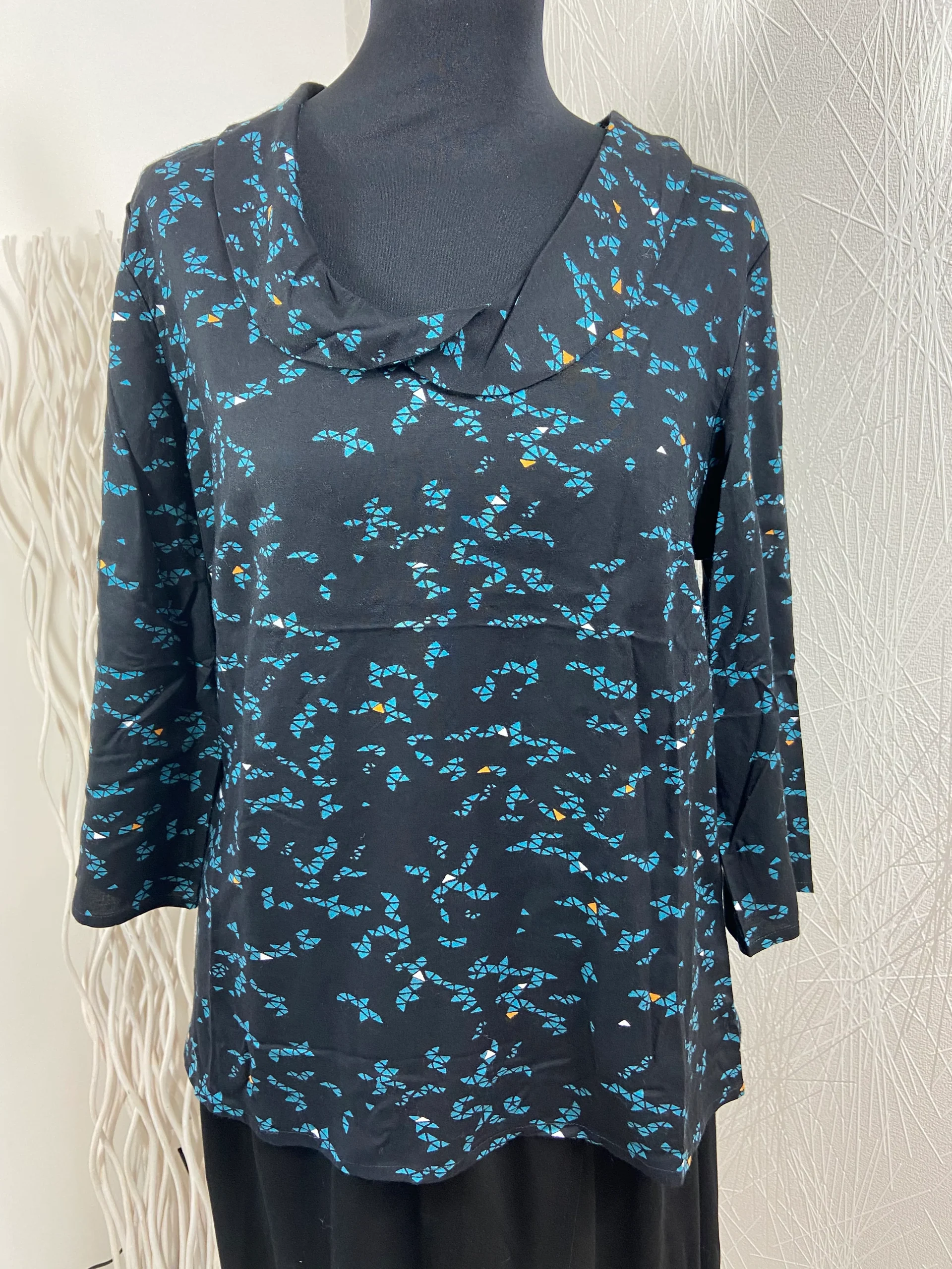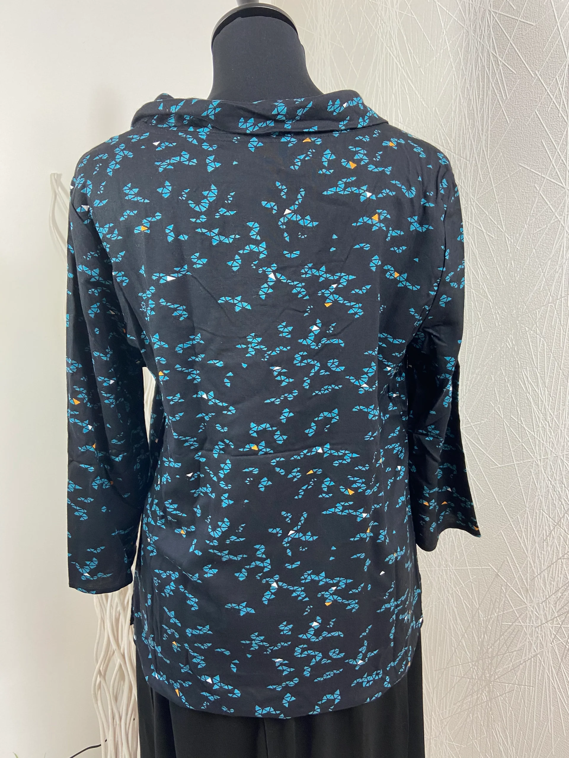 Blouse noire et bleue à motifs manches 3/4 La fiancée du Mekong