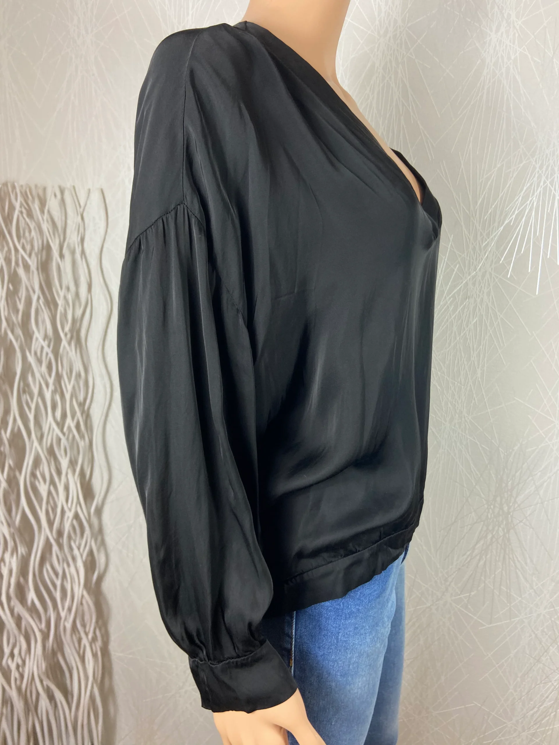 Ample satinée, avec une encolure en V et manches 3/4.
