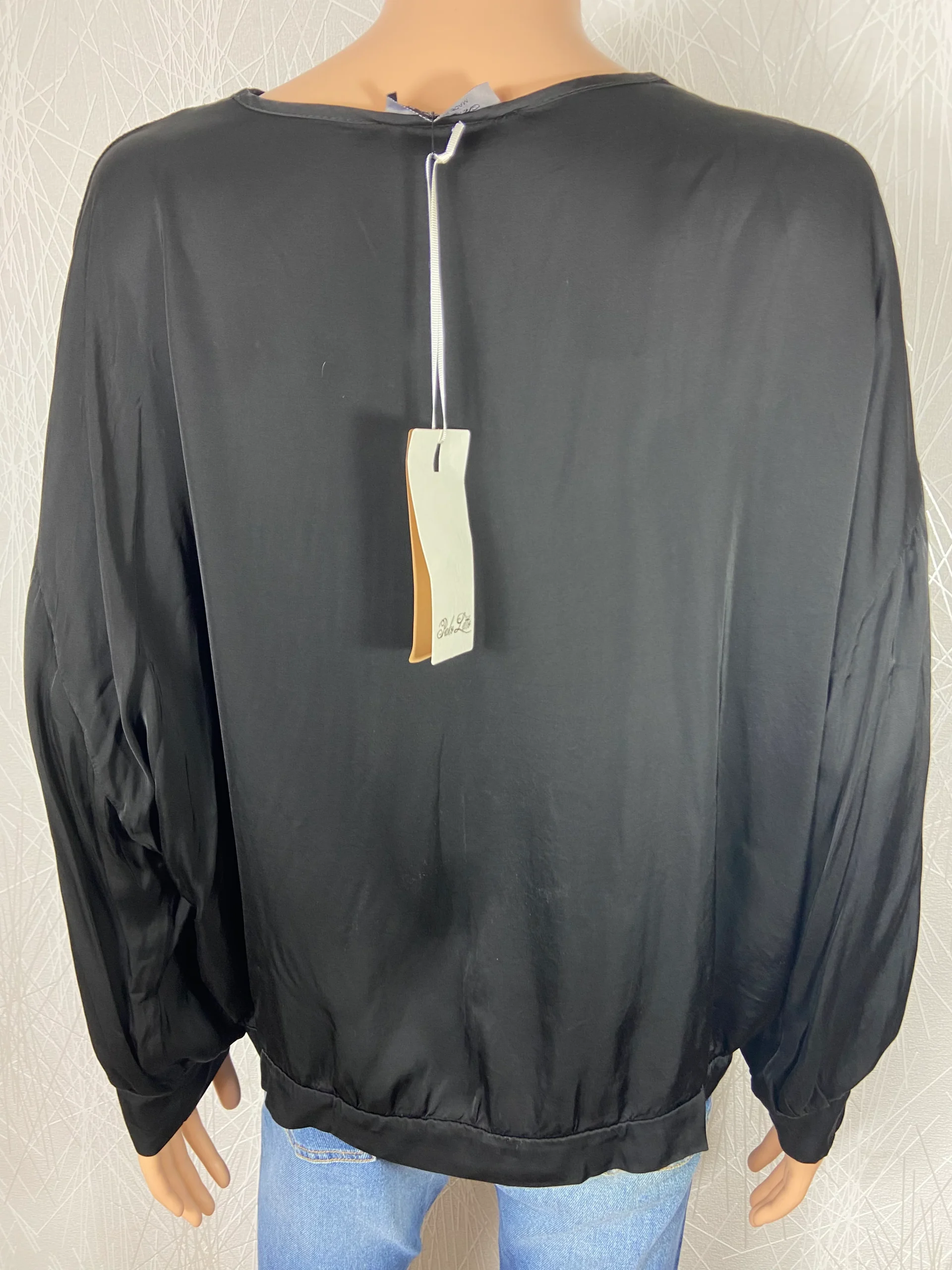 Blouse noire satinée ample manches 3/4 Pako Lito