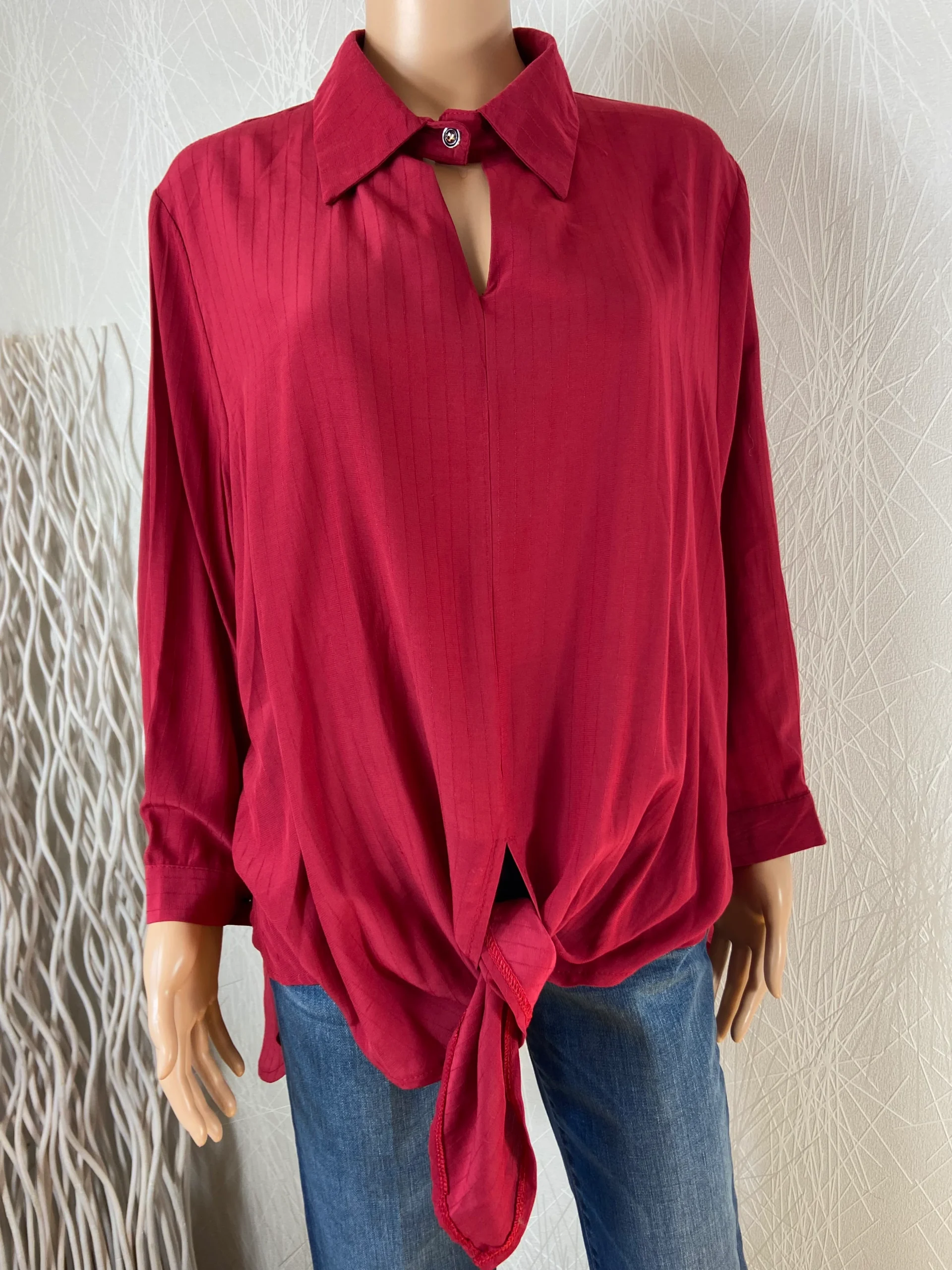 Blouse rouge bordeaux ample pour femme de la marque Neslay. Manches longues avec boutons aux poignets, col rond avec bouton, fente sur les côtés et noeud à l’avant. Matière : viscose Couleur : Bordeaux Marque : Neslay Taille 4XL / 48 – Réf : 48HT1499 Dimensions : Largeur épaule : 45 cm ; tour de […]