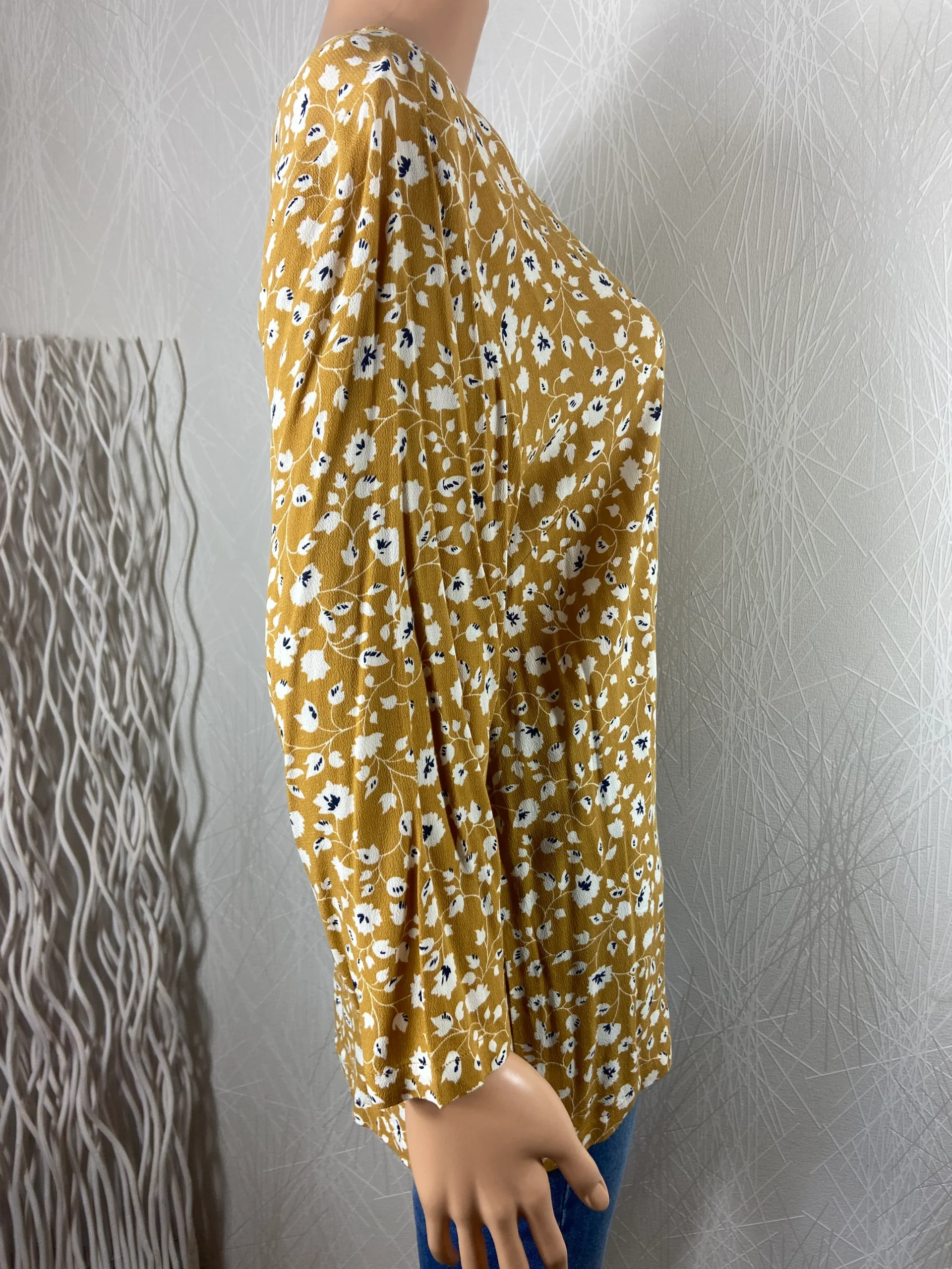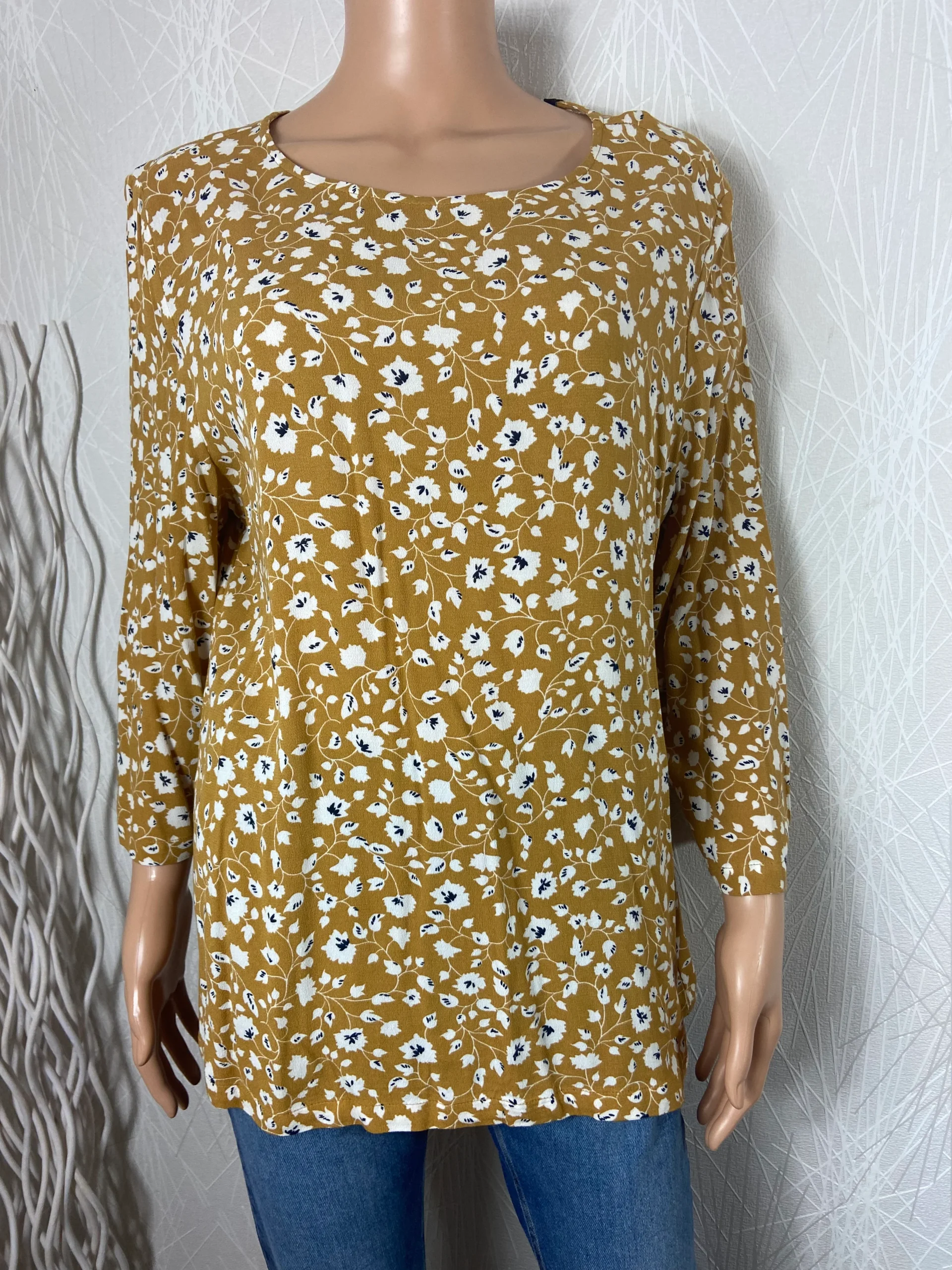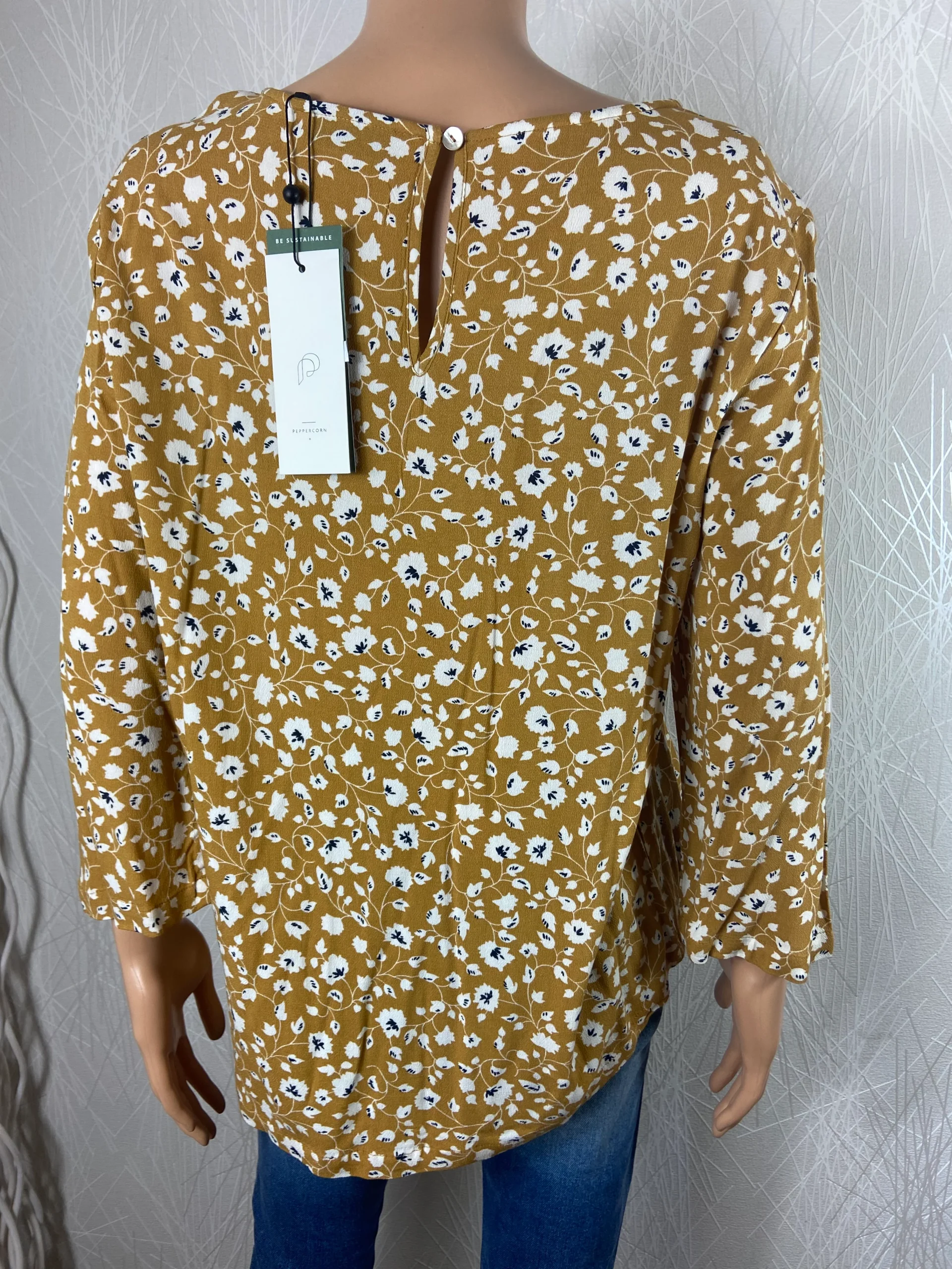 Jolie blouse pour femme à motifs floraux de la marque Peppercorn. Tissu crêpe, coupe classique droite, longueur normale, manches 3/4 et encolure ronde. Belle fabrication de qualité boutique par Peppercorn Couleur : Brun orangé Matière : 100% viscose Taille M / 38 – Réf : 38CB406 Dimensions : Largeur épaule : 40 cm ; tour […]