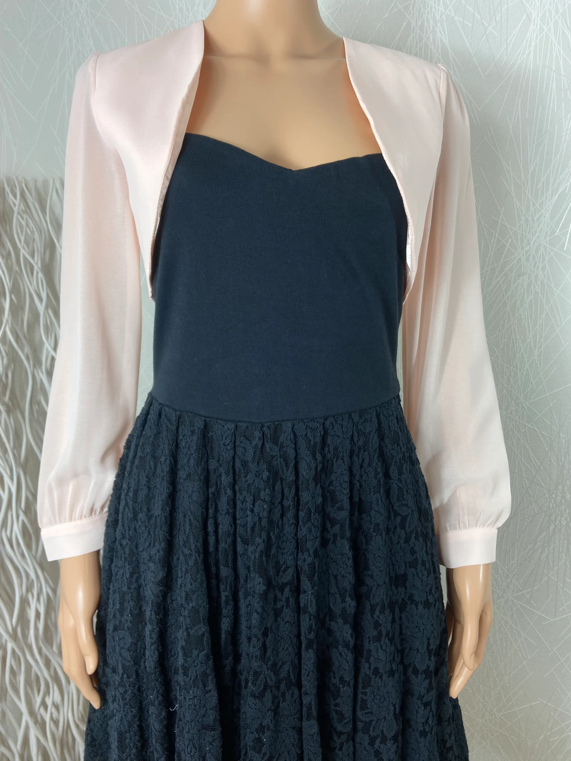 Boléro rose de la marque Pink Boom. Manches longues transparentes avec boutons aux poignets et tissu doublé au buste . Matière : 100% polyester Couleur : Rose Marque : Pink Boom Taille : S / 36 – Réf : 36SB5917 Dimensions : Largeur épaule : 36 cm ; tour de poitrine : 86 cm ; […]