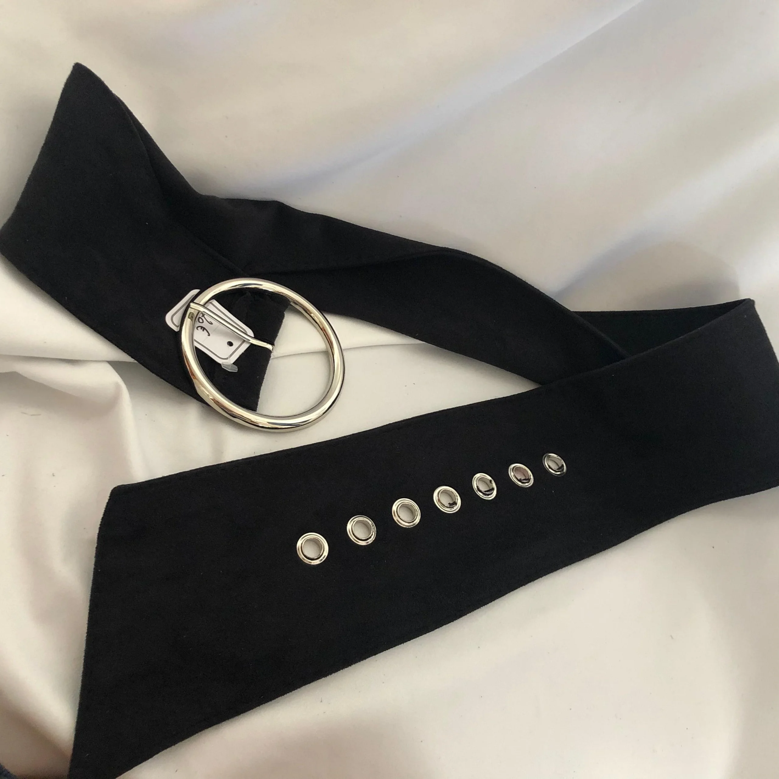 Ceinture fantaisie pour femme en tissus velours avec boucle argentée Couleur : noir longueur de 76 cm à 91 cm Largeur 9 cm Taille Unique Valeur en boutique : 24 € Réf : TUBC841