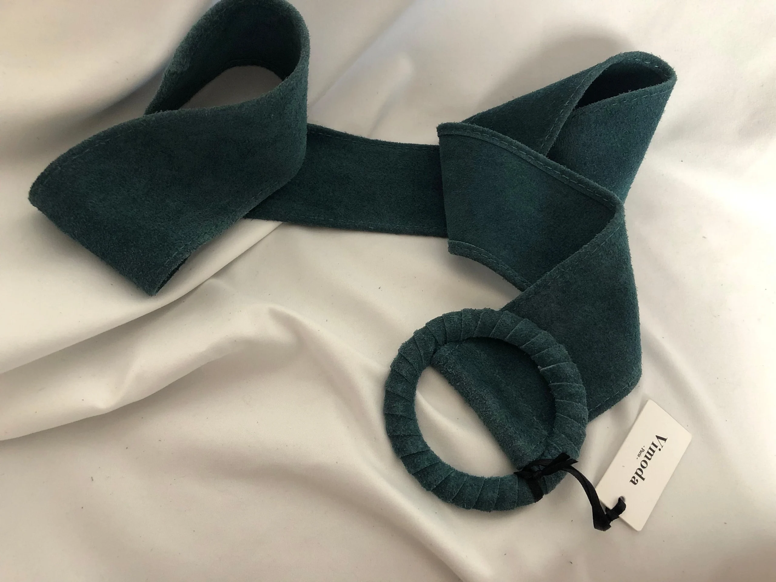 Ceinture fantaisie pour femme, façon daim, de couleur verte. Couleur : vert Taille Unique Largeur 6 cm Valeur en boutique : 24 € Réf : TUBC840