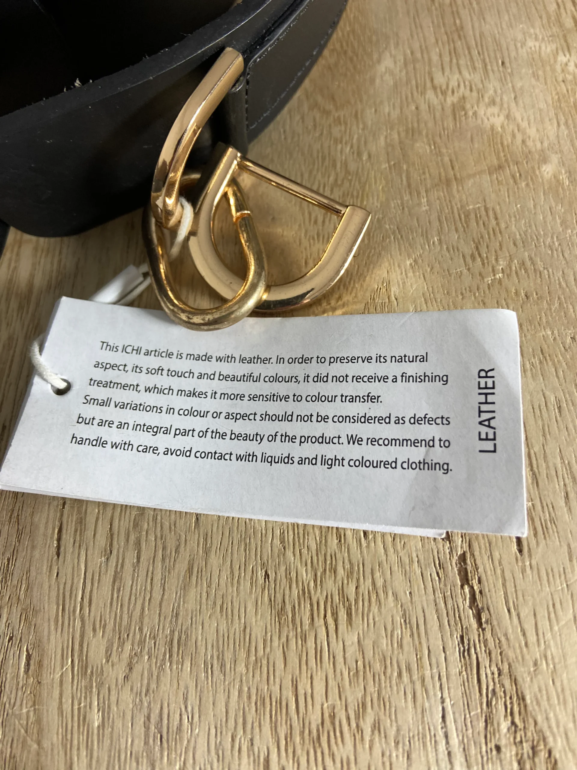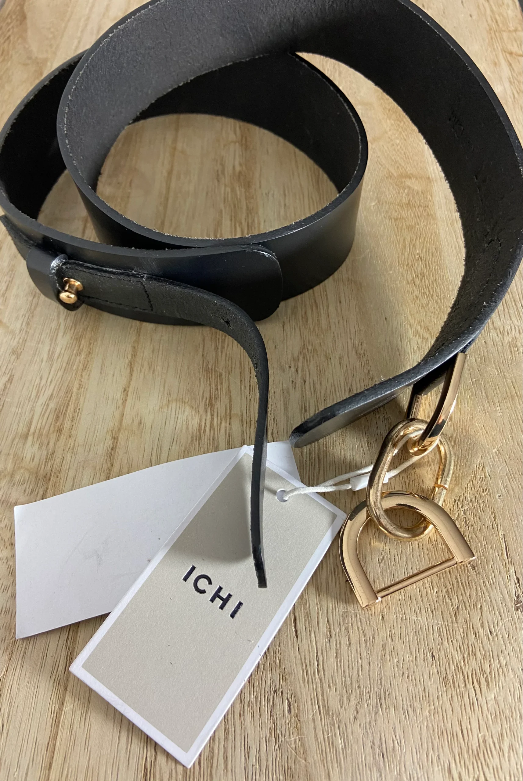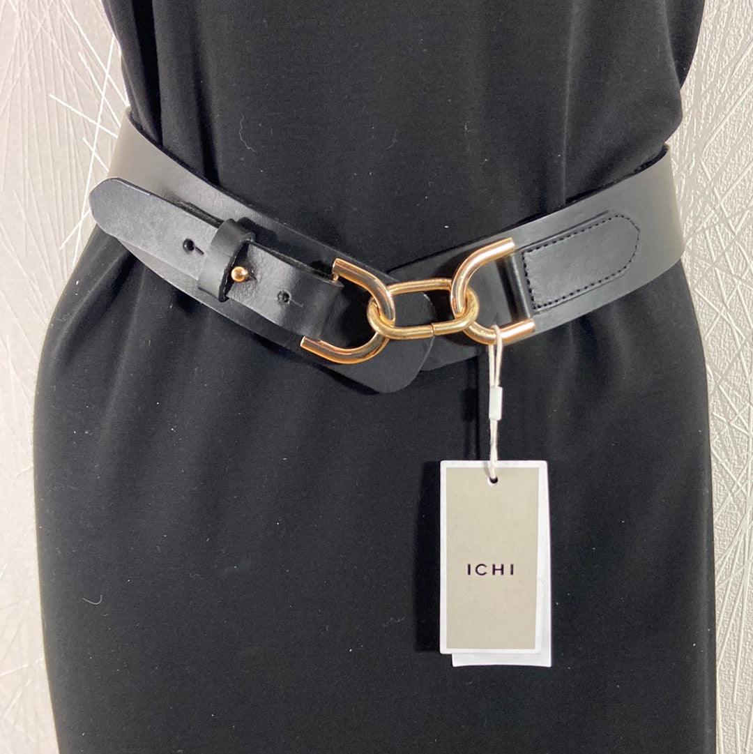 Belle ceinture en cuir noir pour femme avec maillon de chaine doré, modèle Iarocsi Hip Lea Be de la marque Ichi.