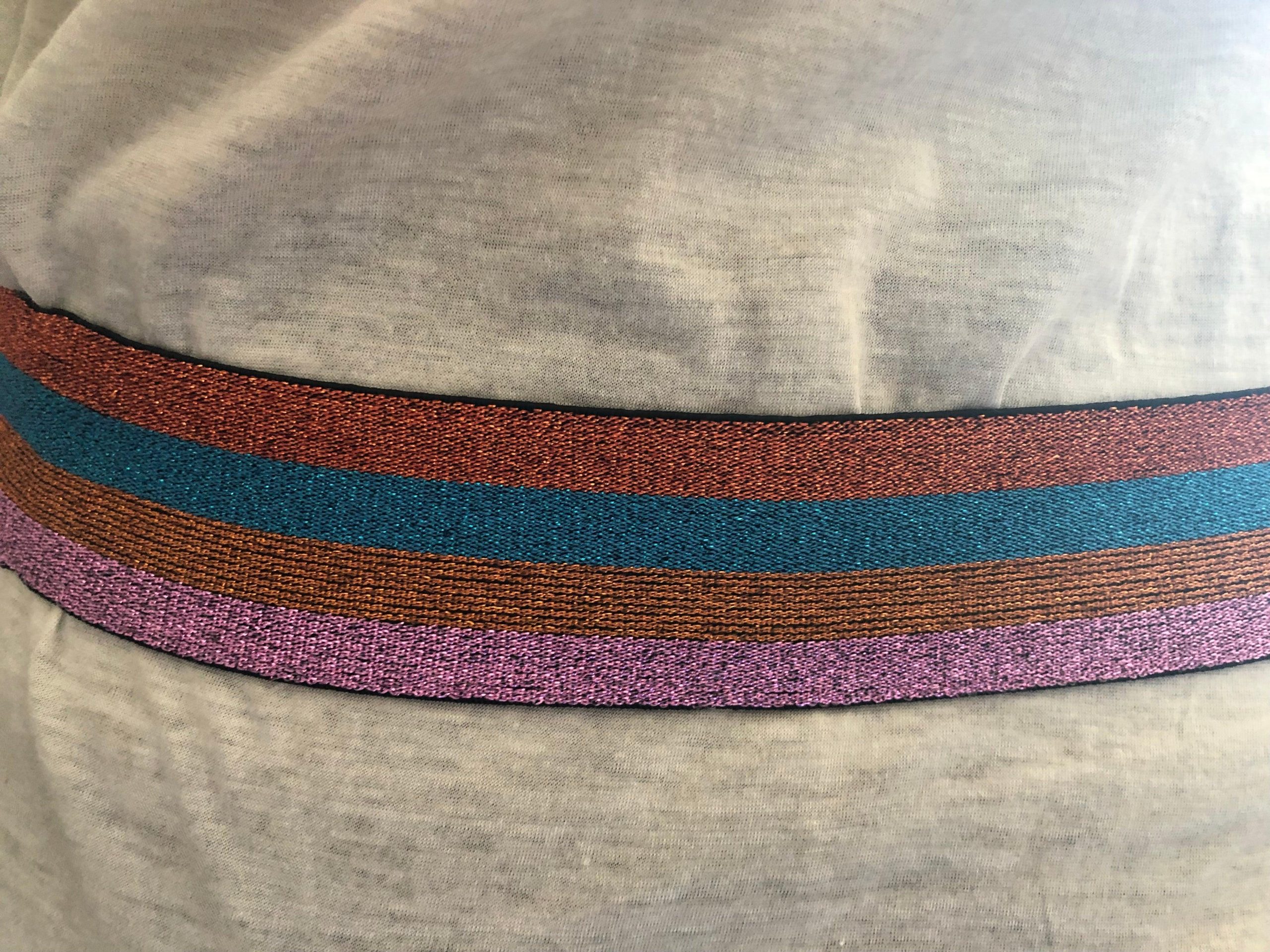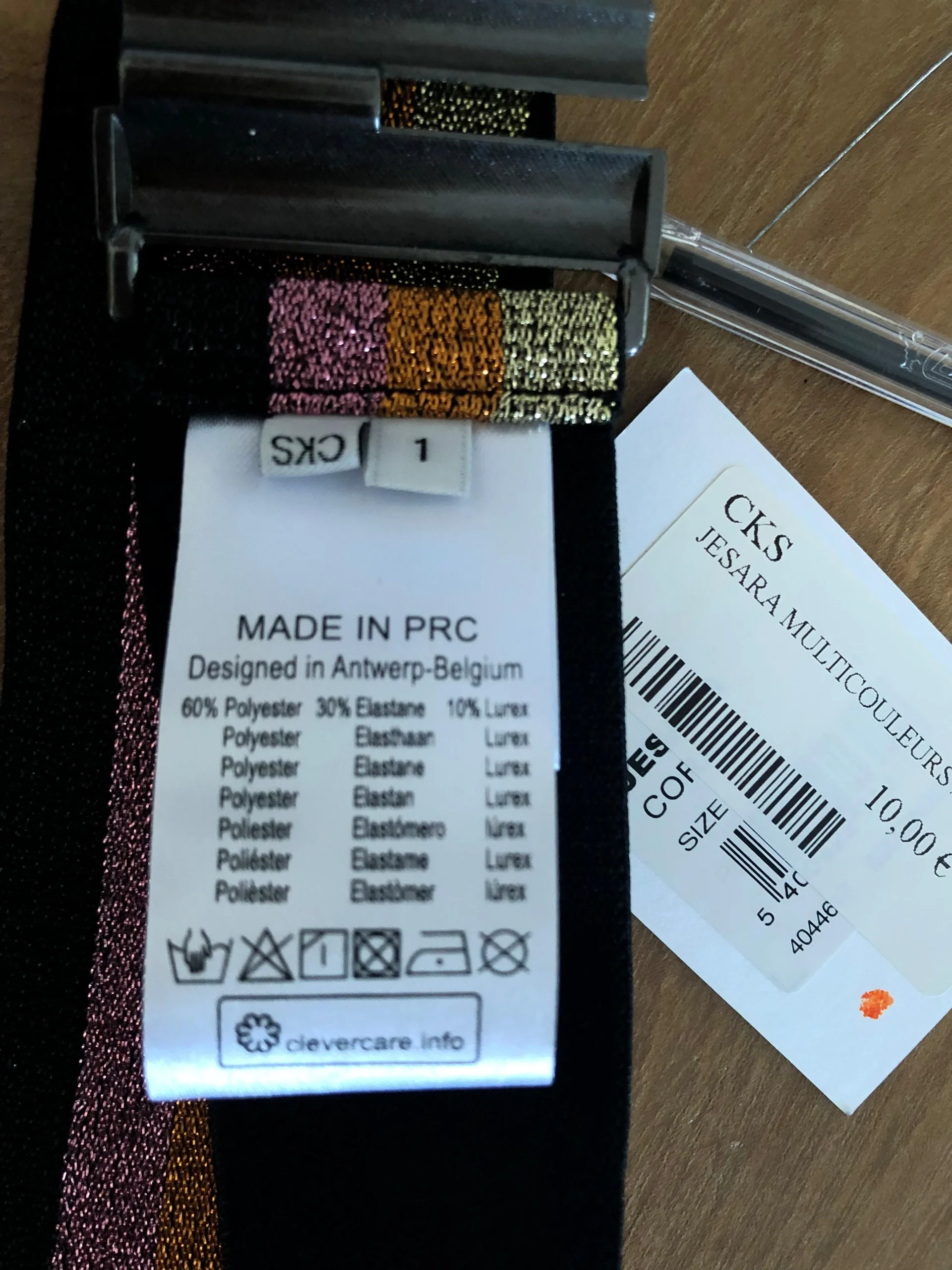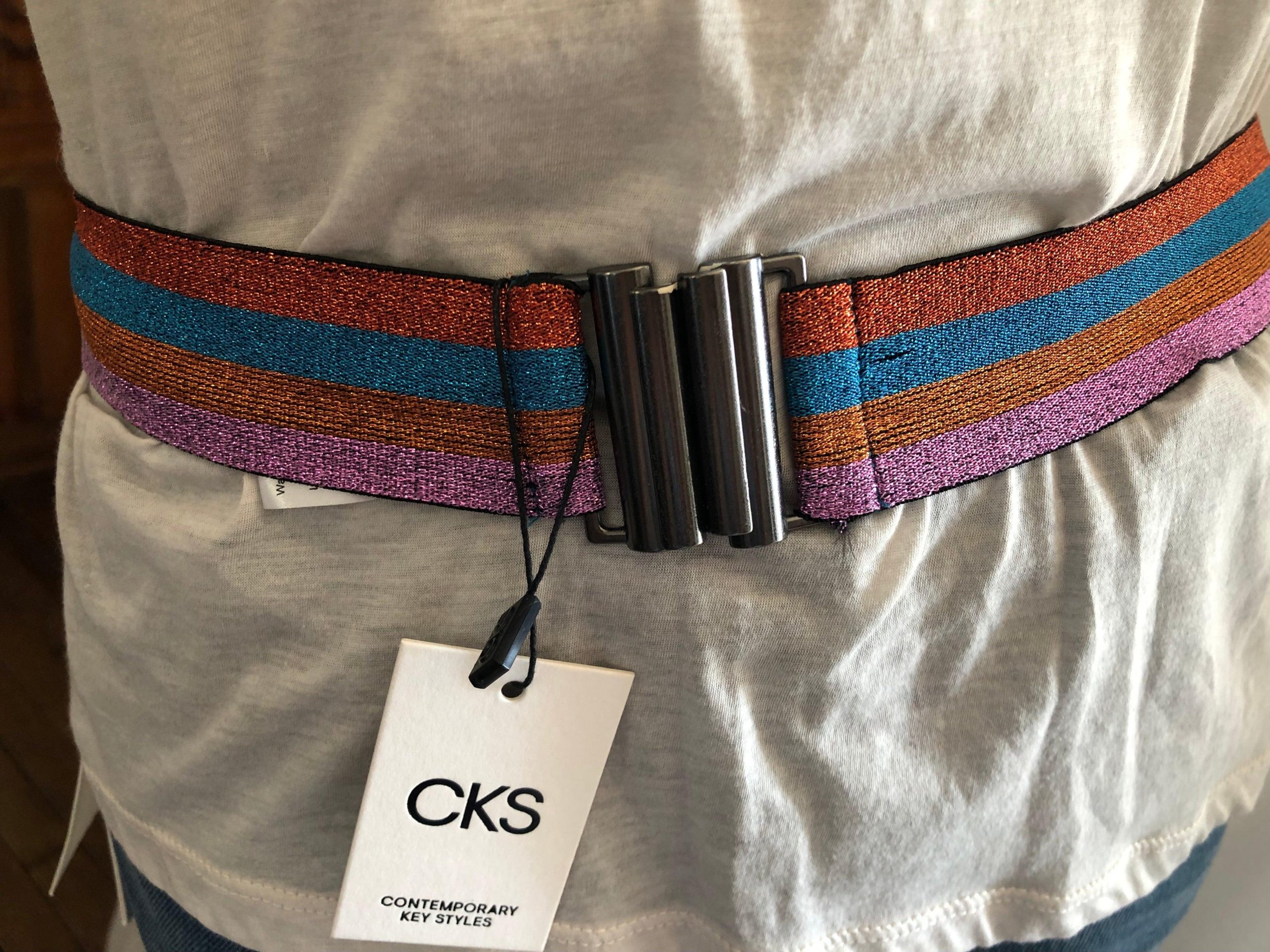 Ceinture élastique fantaisie multicolore pour femme Marque CKS 60% polyester 30 % élasthanne 10 % Lurex Taille extensible Valeur en boutique : 10 € Taille Unique – Réf : TUBC831
