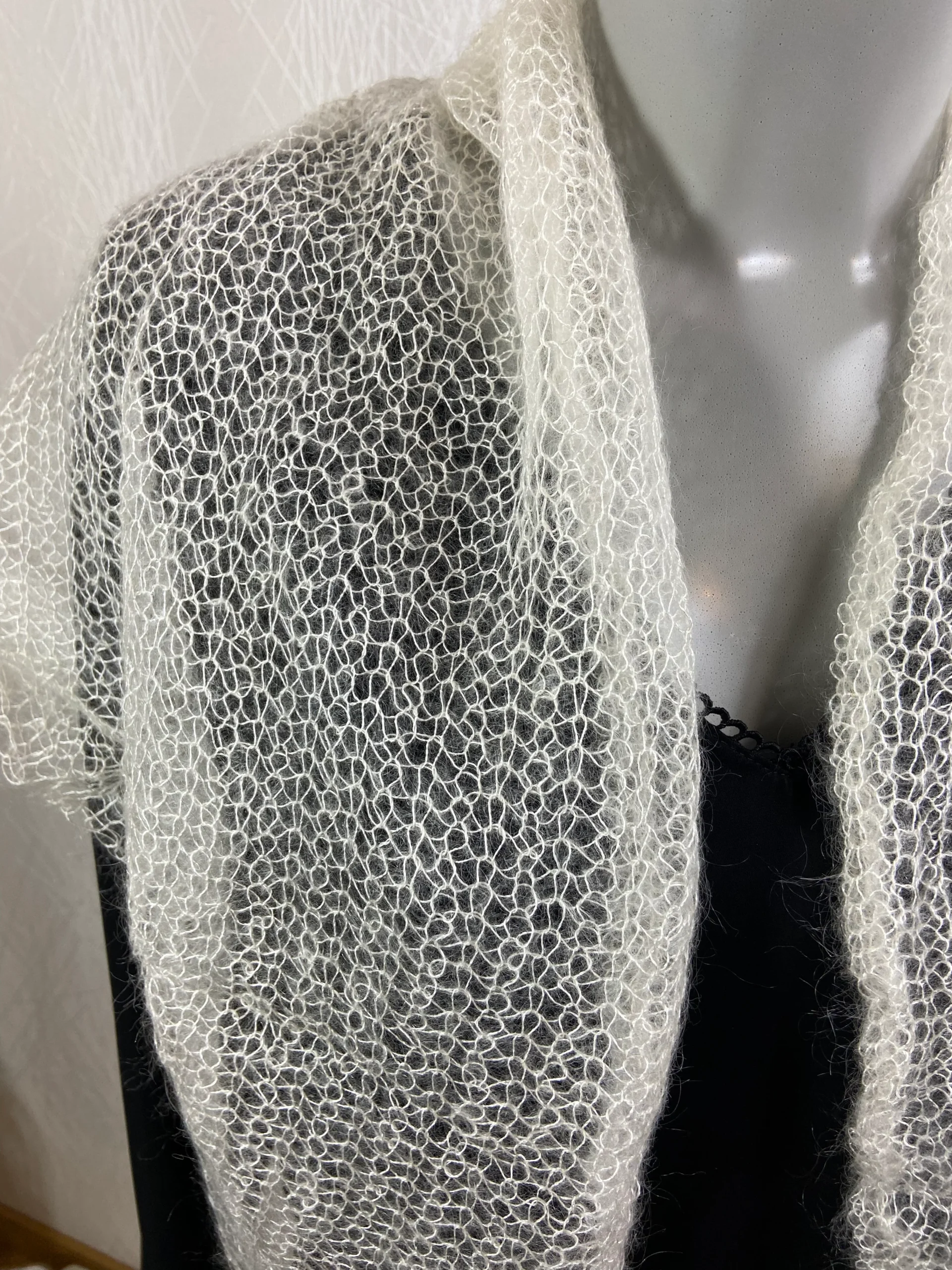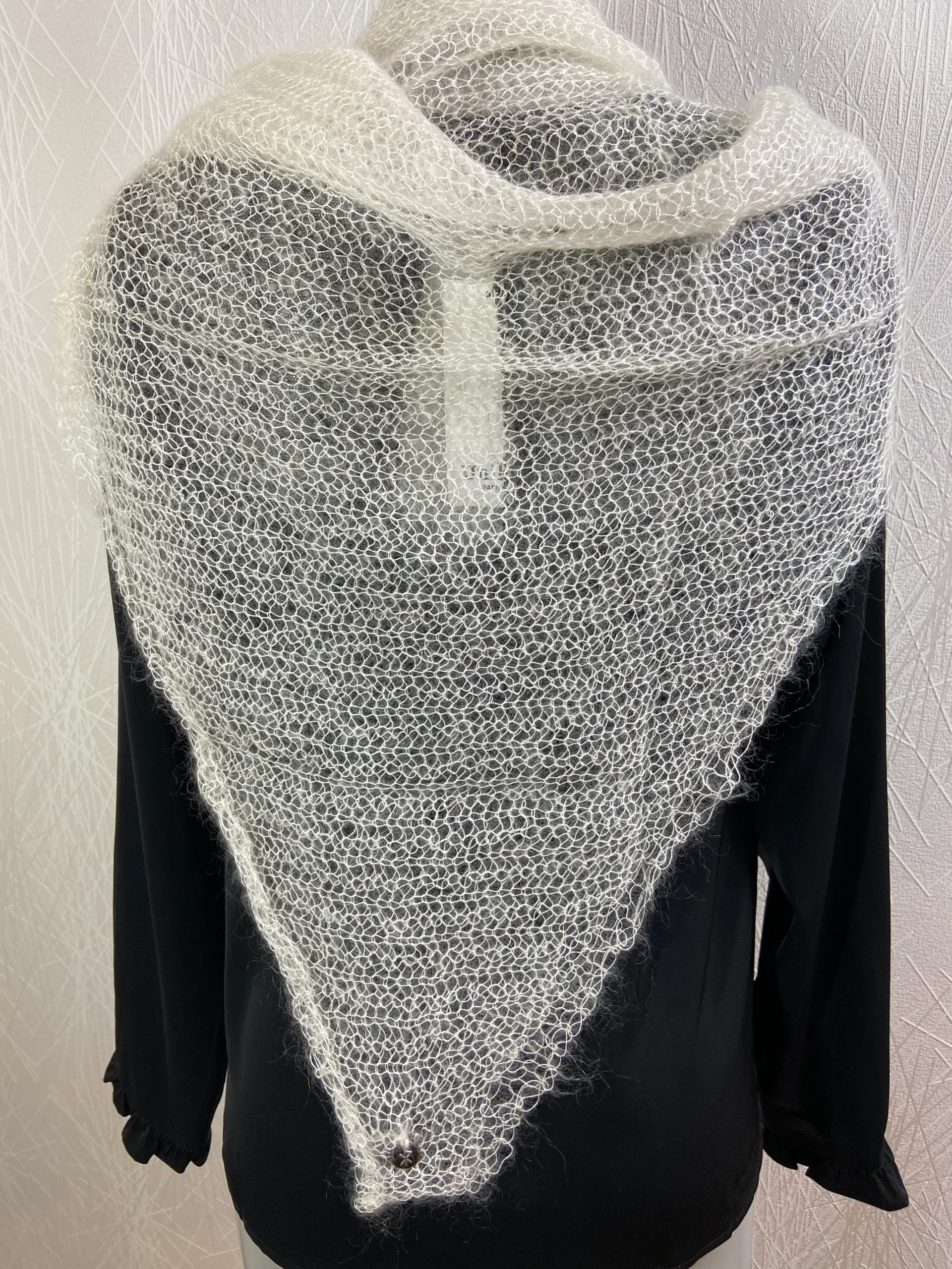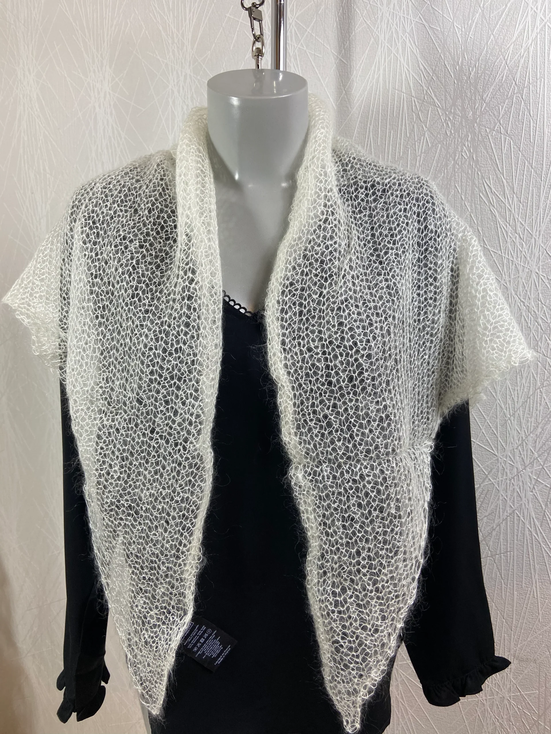 Ce magnifique châle est tricoté à la main.