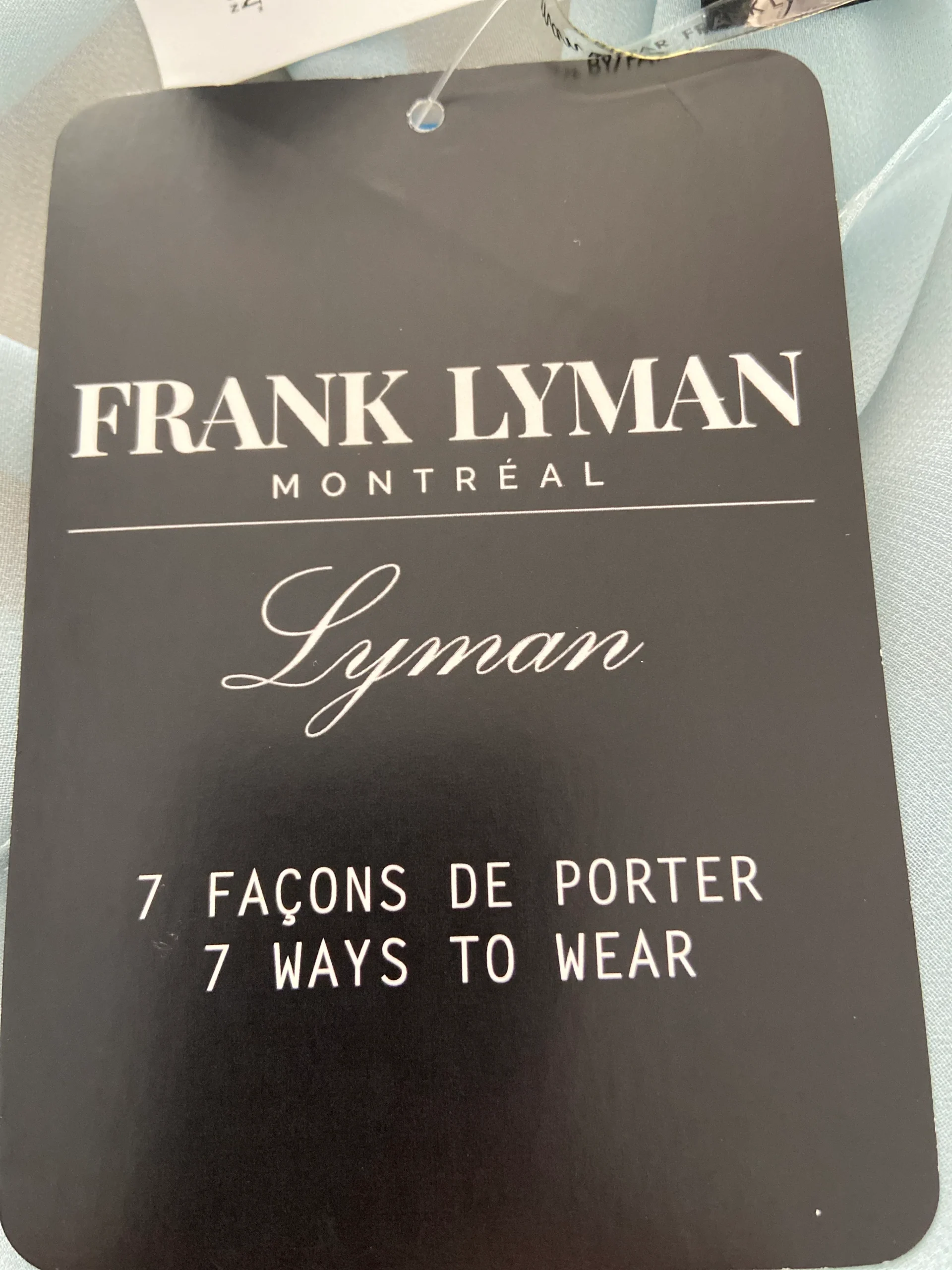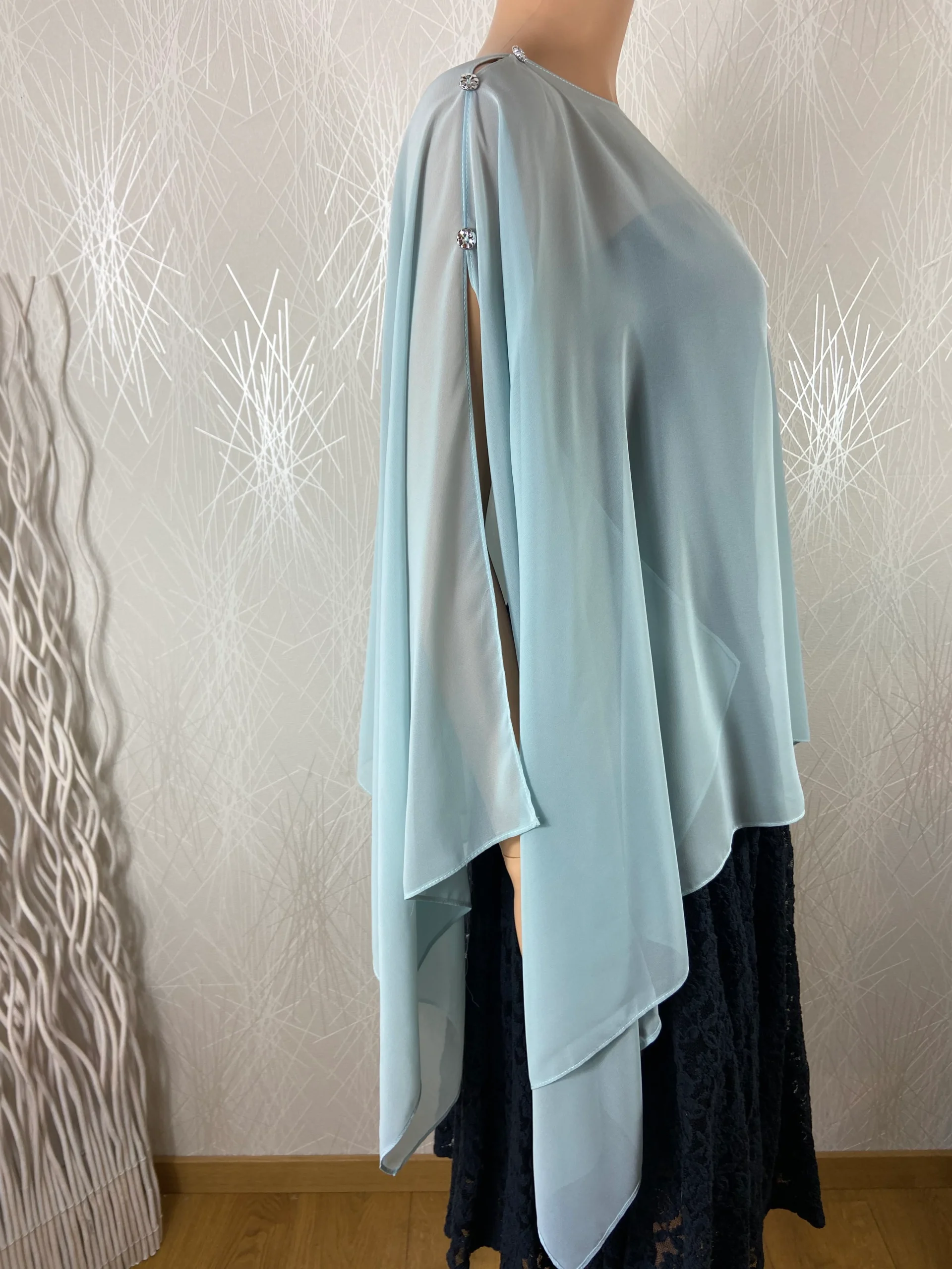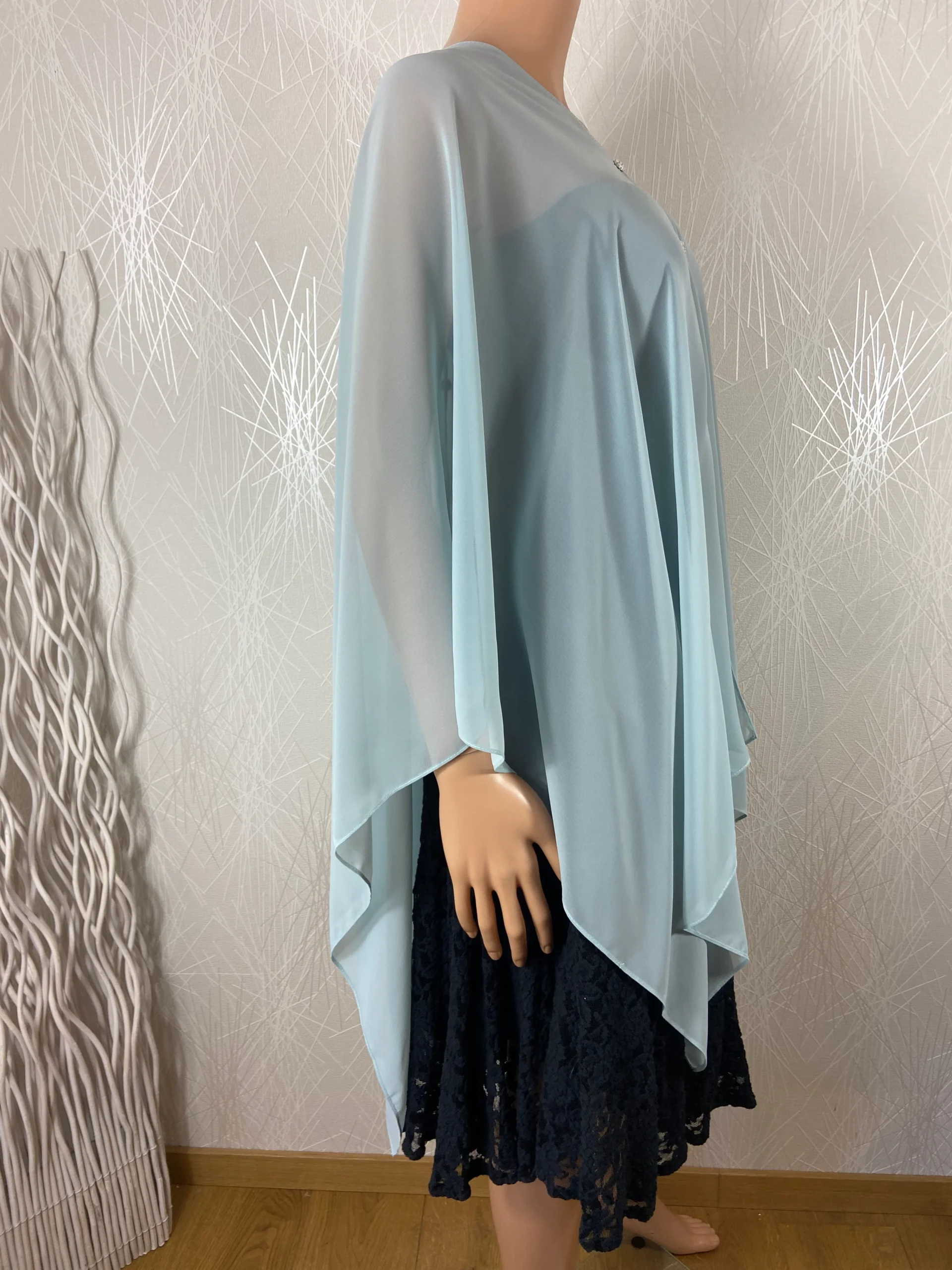 Cape ou châle bleu ciel pour femme, avec 7 façons de le porter, de la marque Lyman.