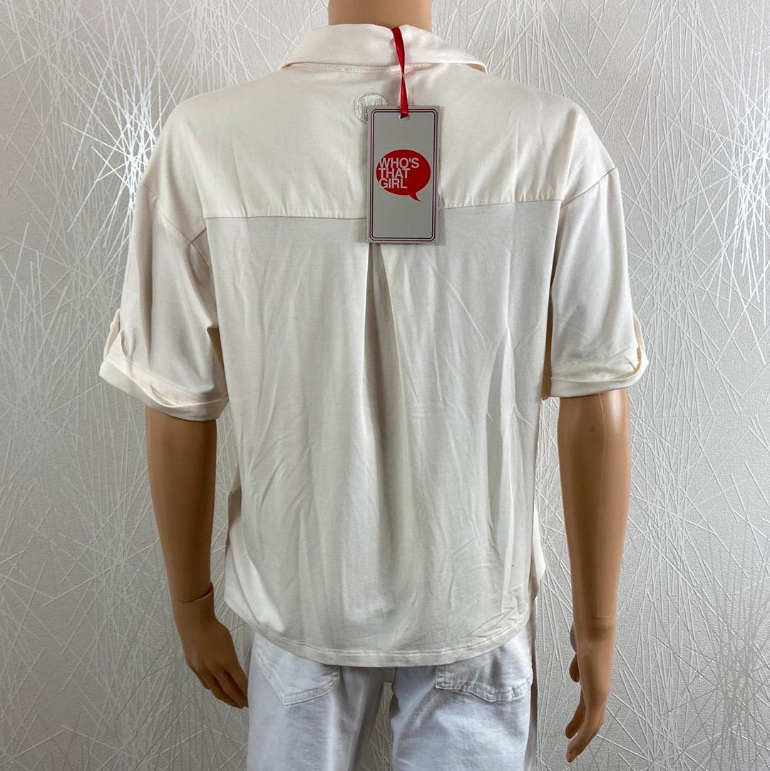 Chemise femme manches courte blanc cassé effet satin Who’S That Girl