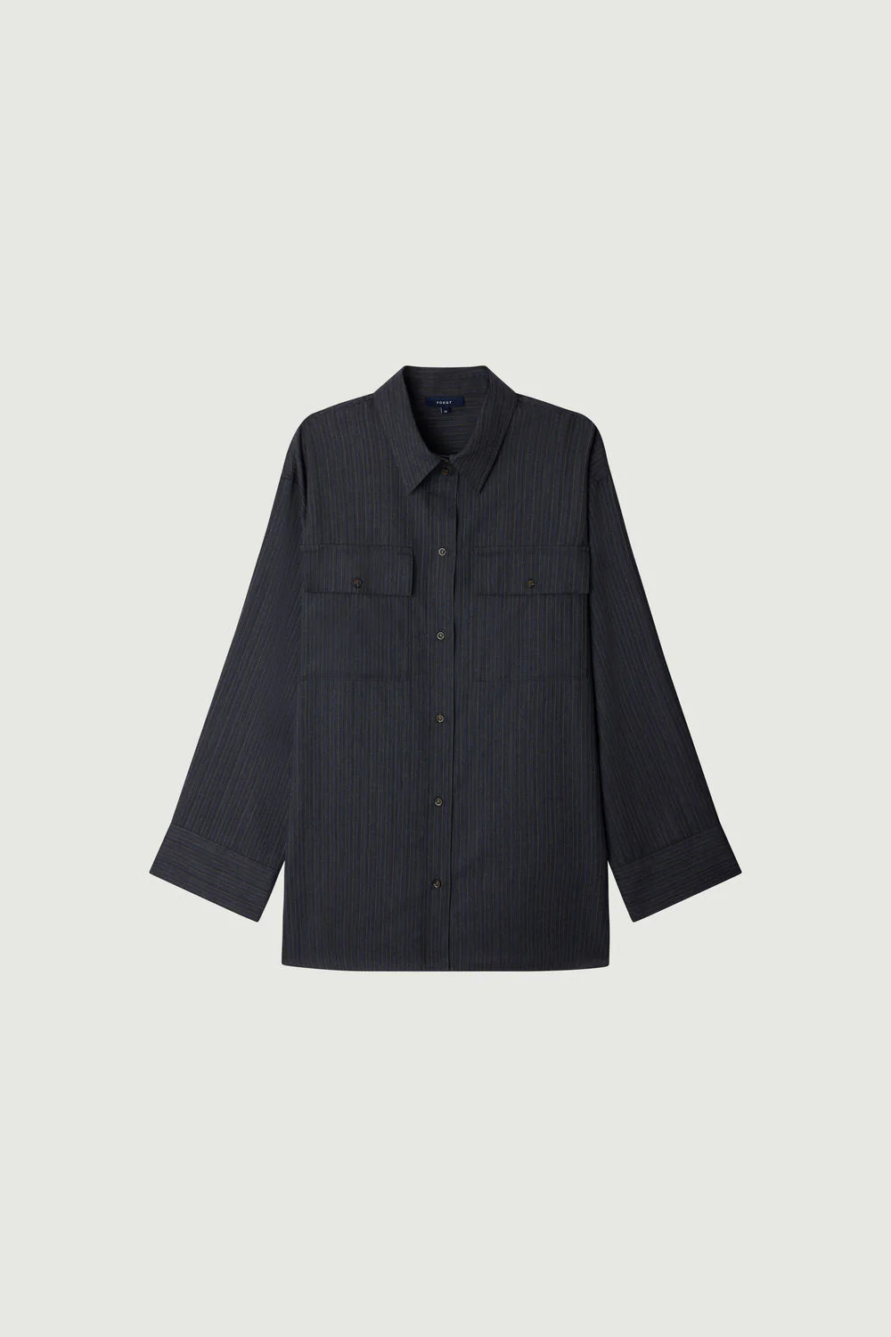 FILIPA est une chemise en toile de laine vierge et coton bio, à rayures tennis. Sa coupe droite et son col chemise s’accompagnent de deux poches plaquées et d’une ouverture boutonnée. Parfaite pour la mi-saison, elle allie élégance et style sportswear chic.