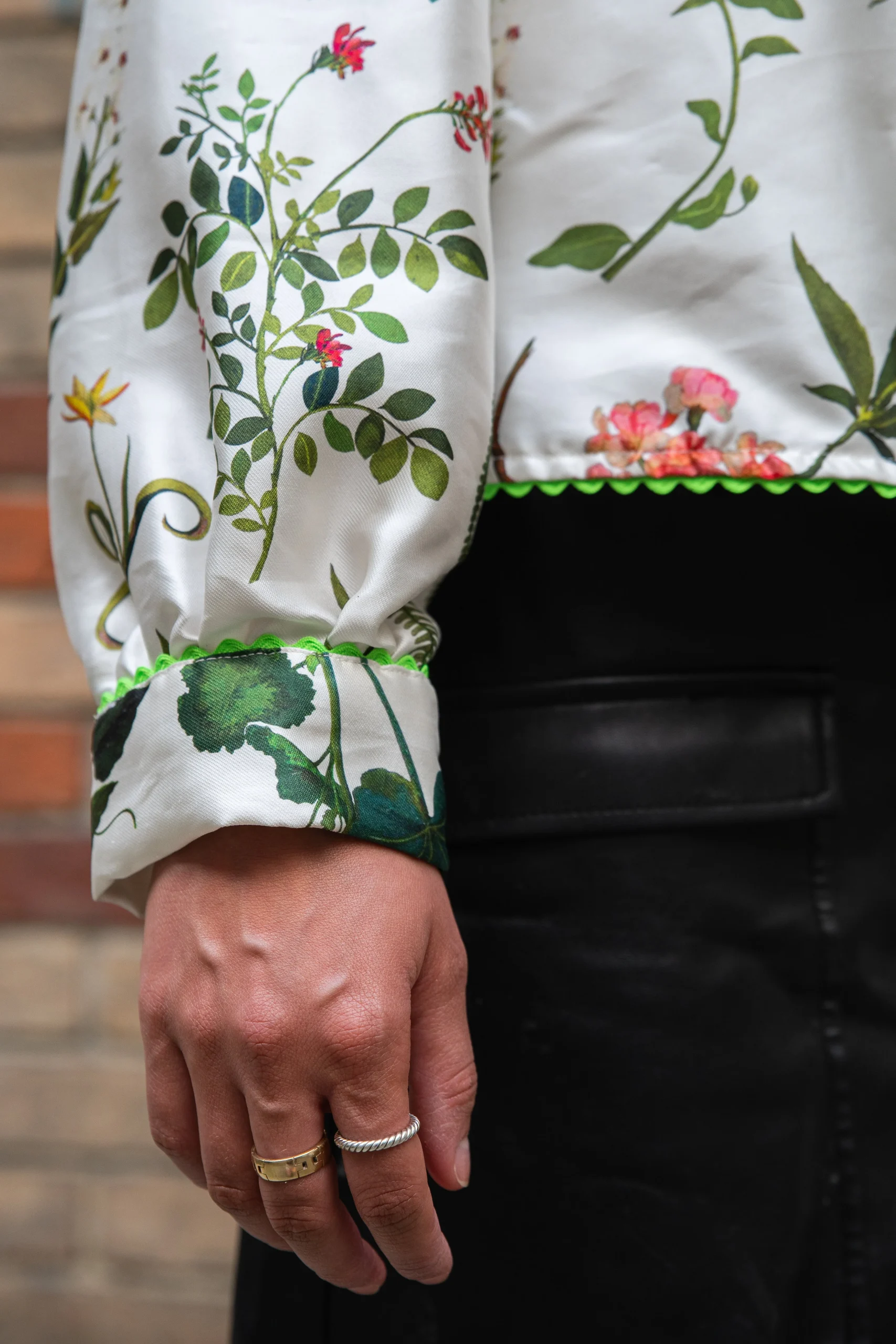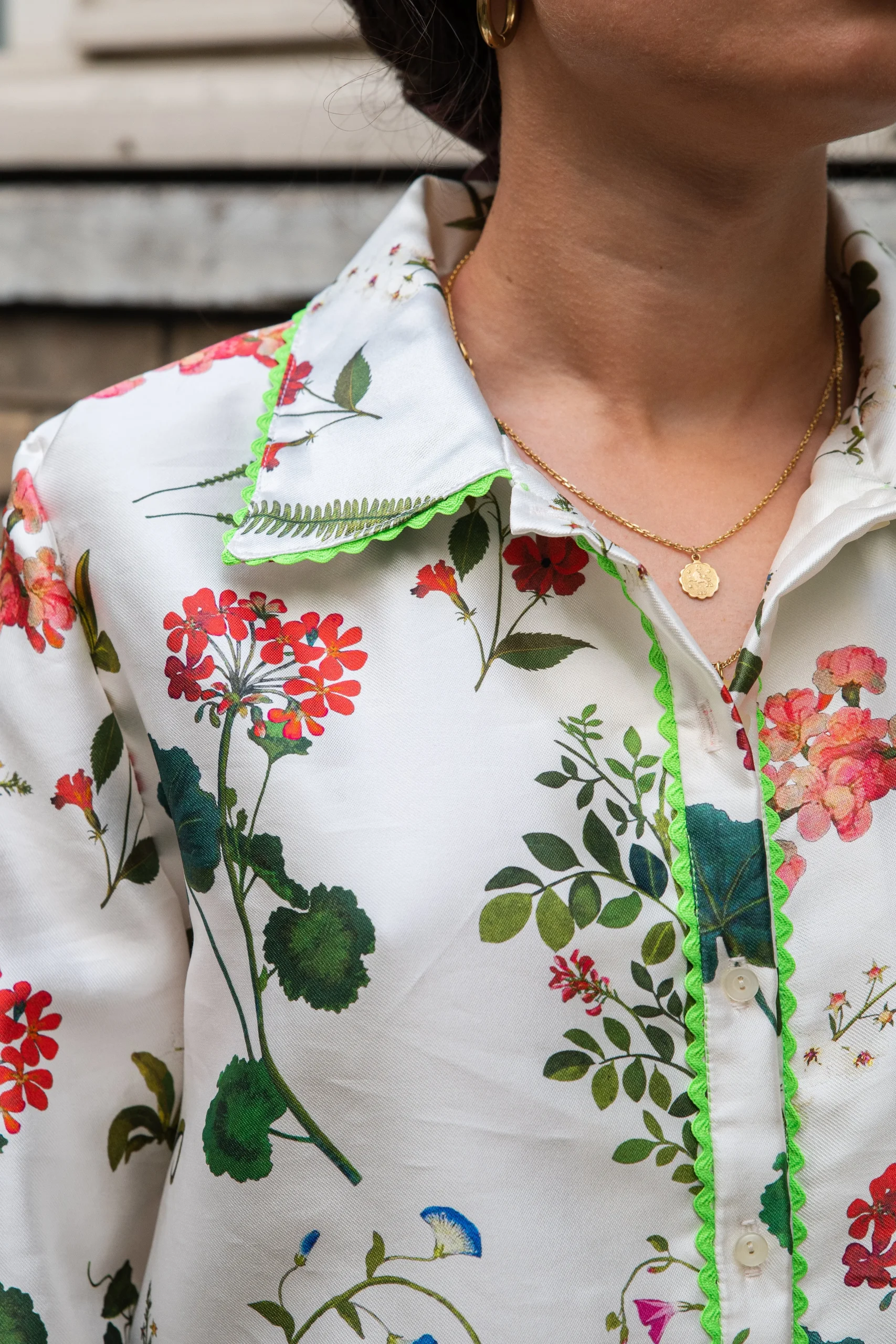 Chemise en coton et soie. Coupe droite, croquet vert fluo (personnalisable). Fabrication artisanale sur-mesure. Confectionnée à la main en France.