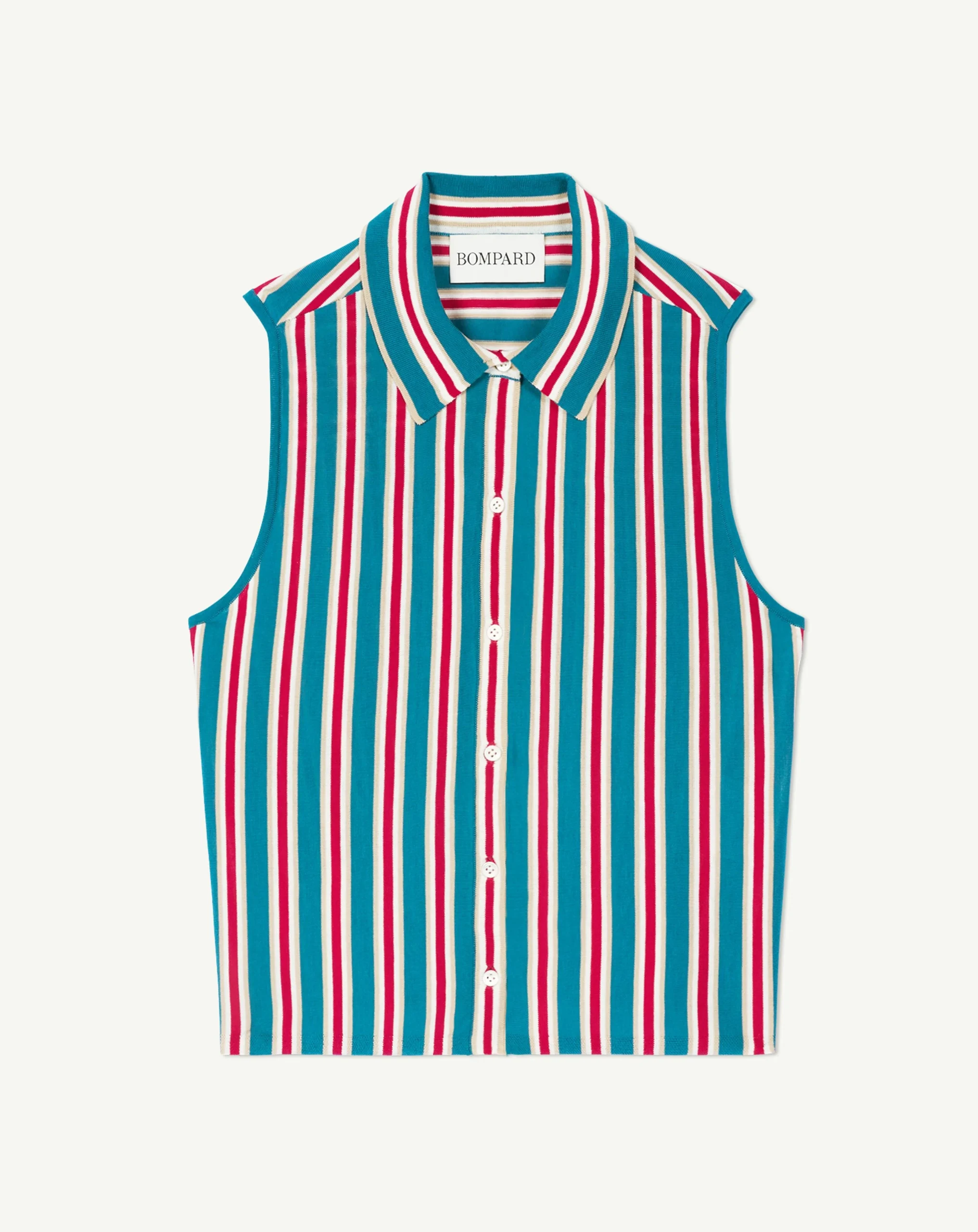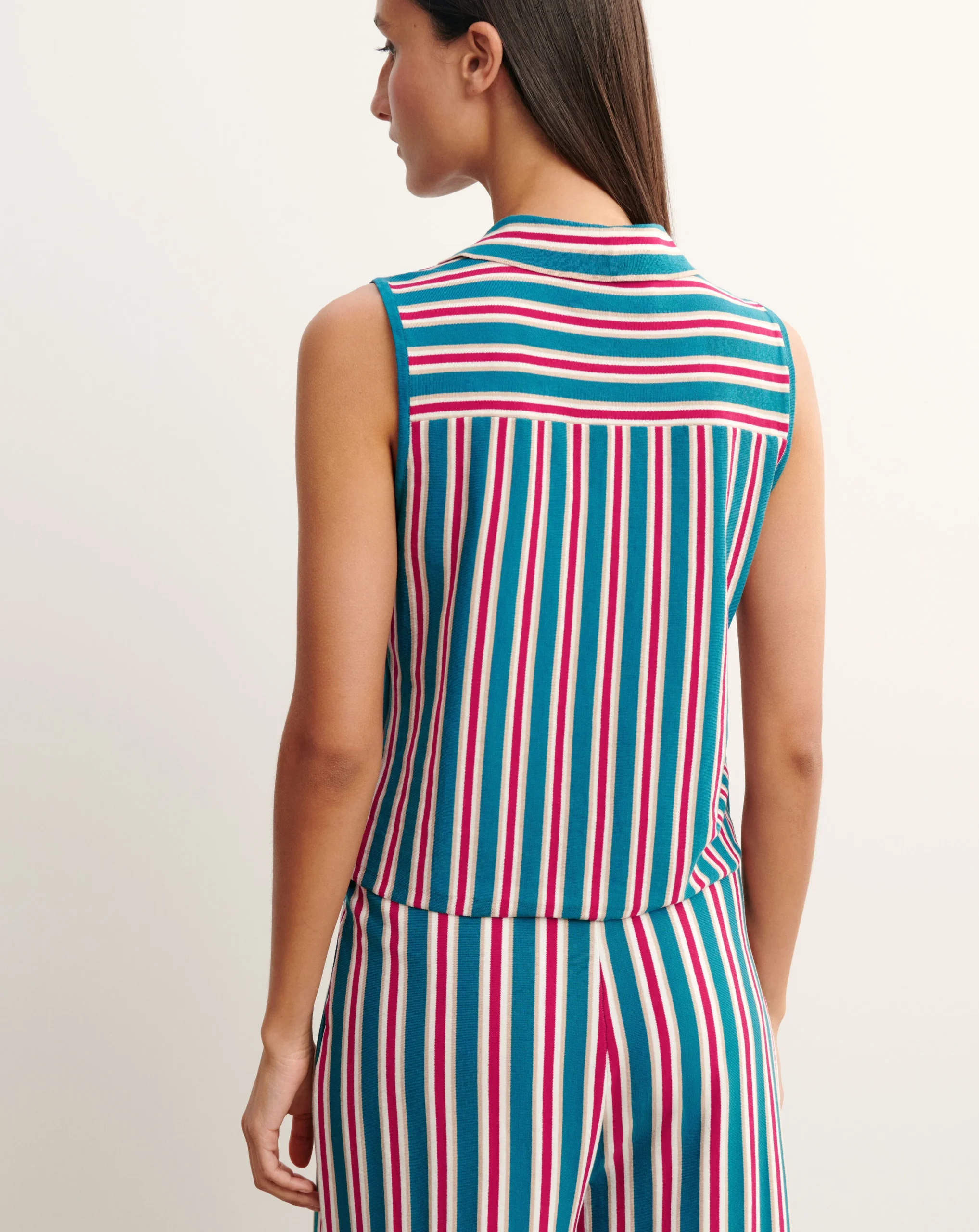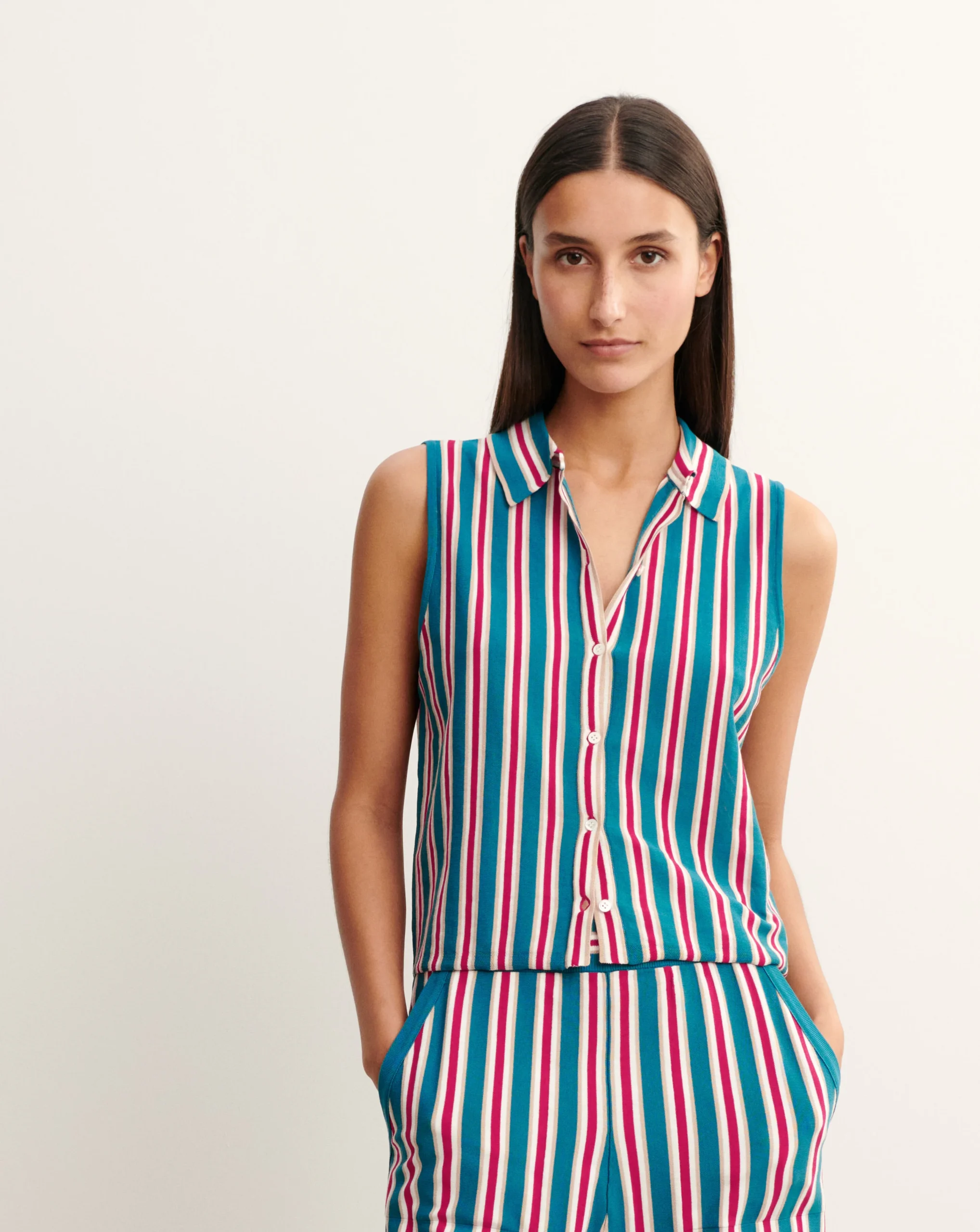 Chemise sans manches rayée. Coupe droite intemporelle avec patte de boutonnage centrale.