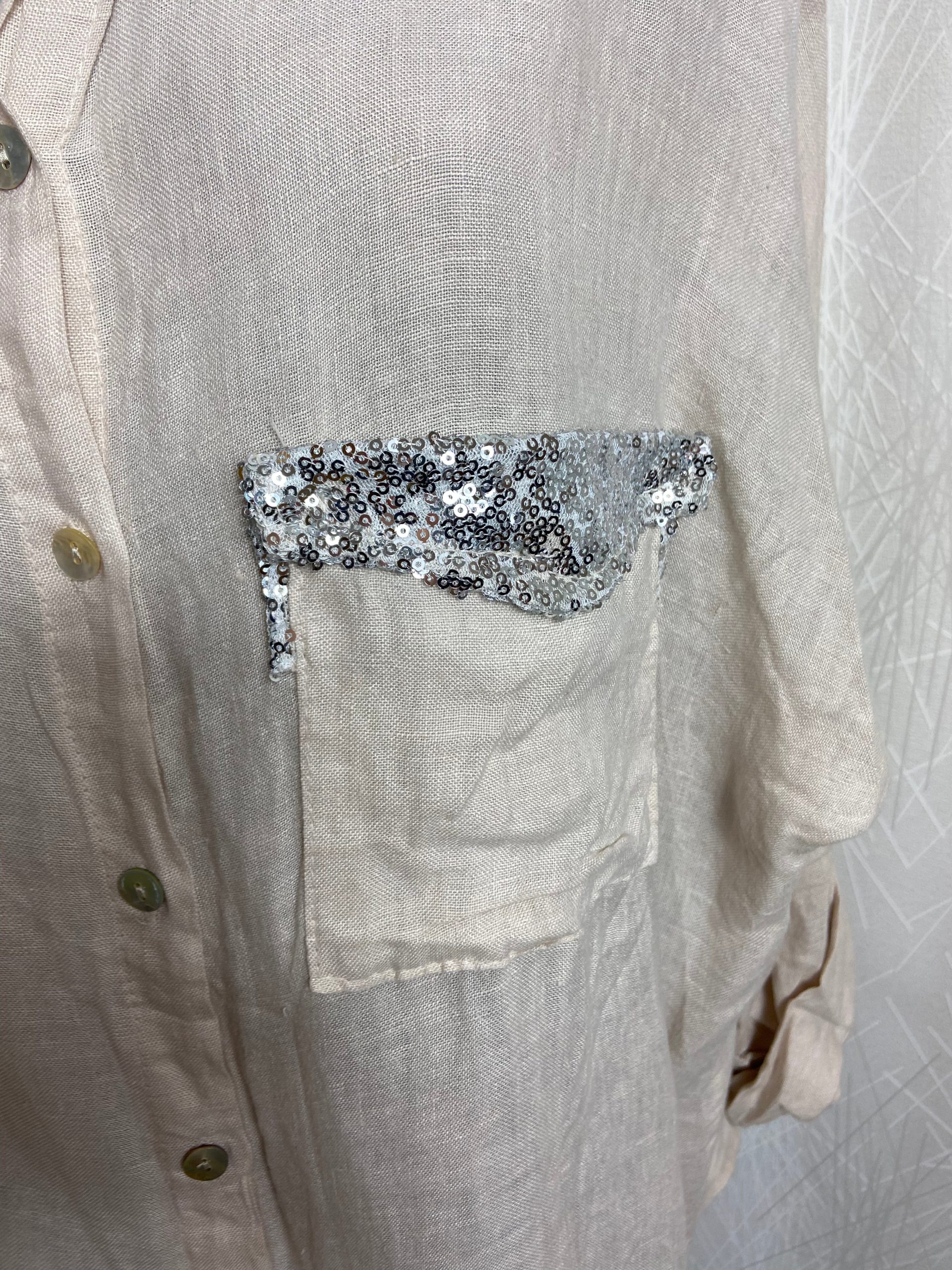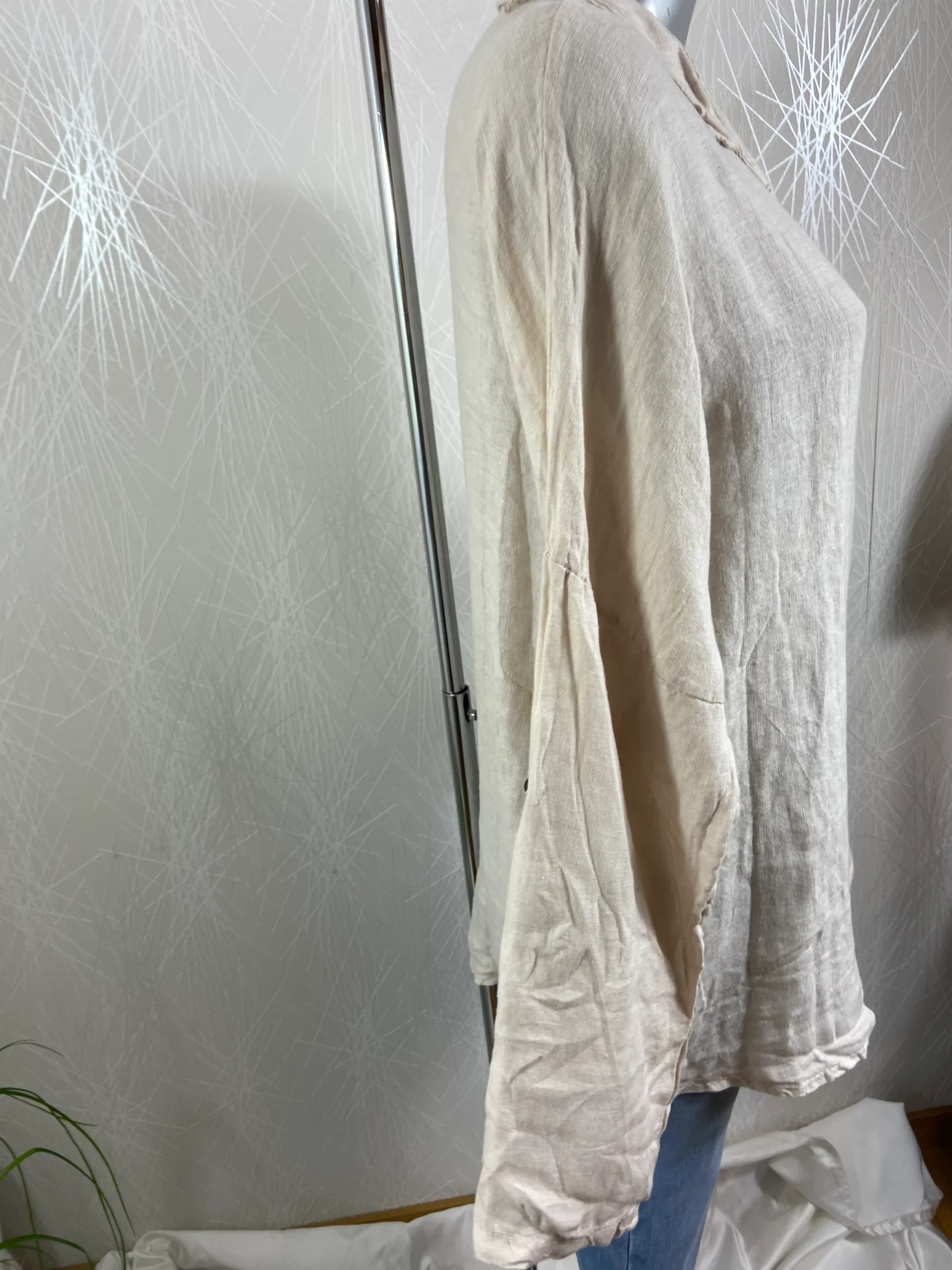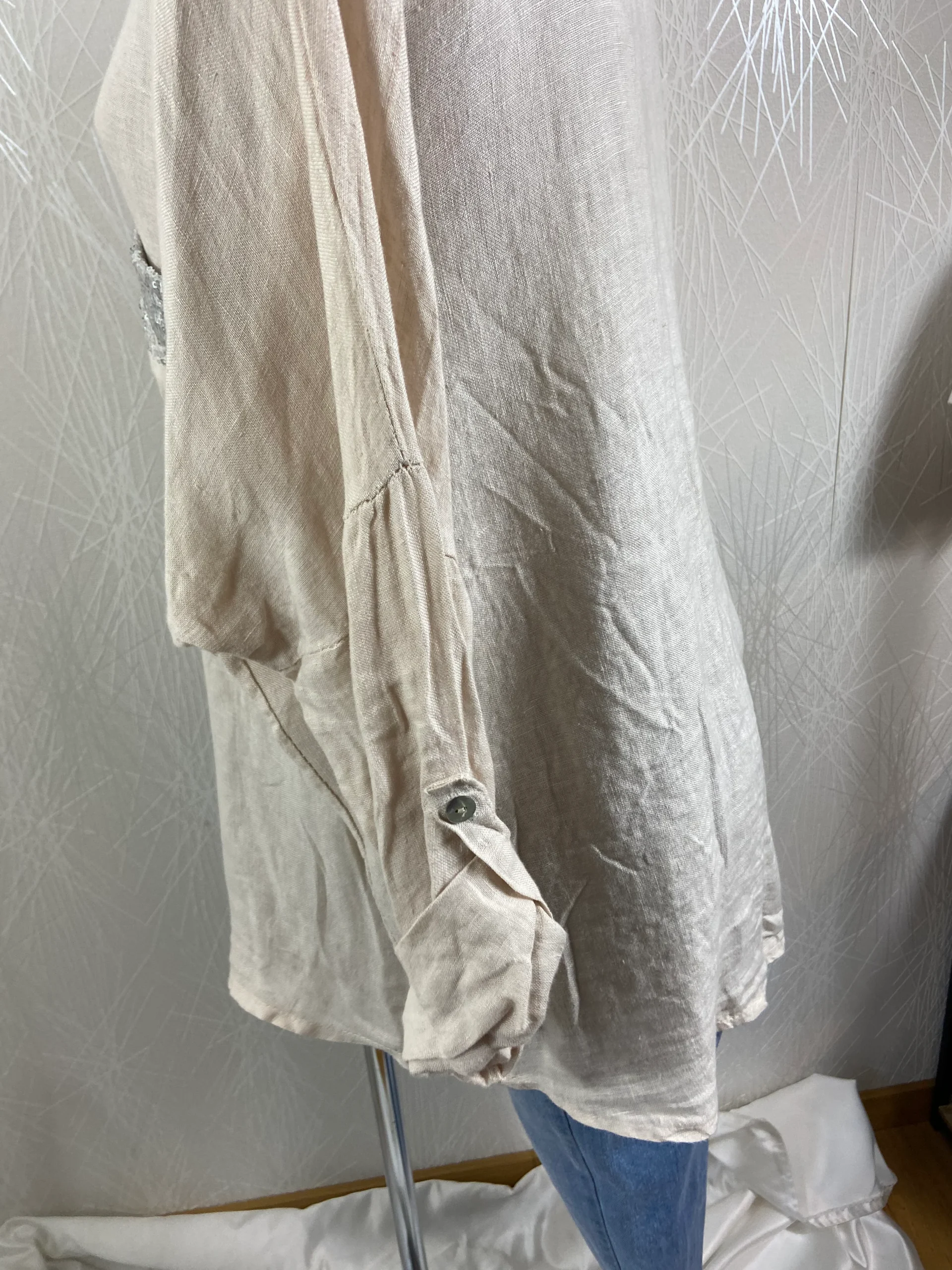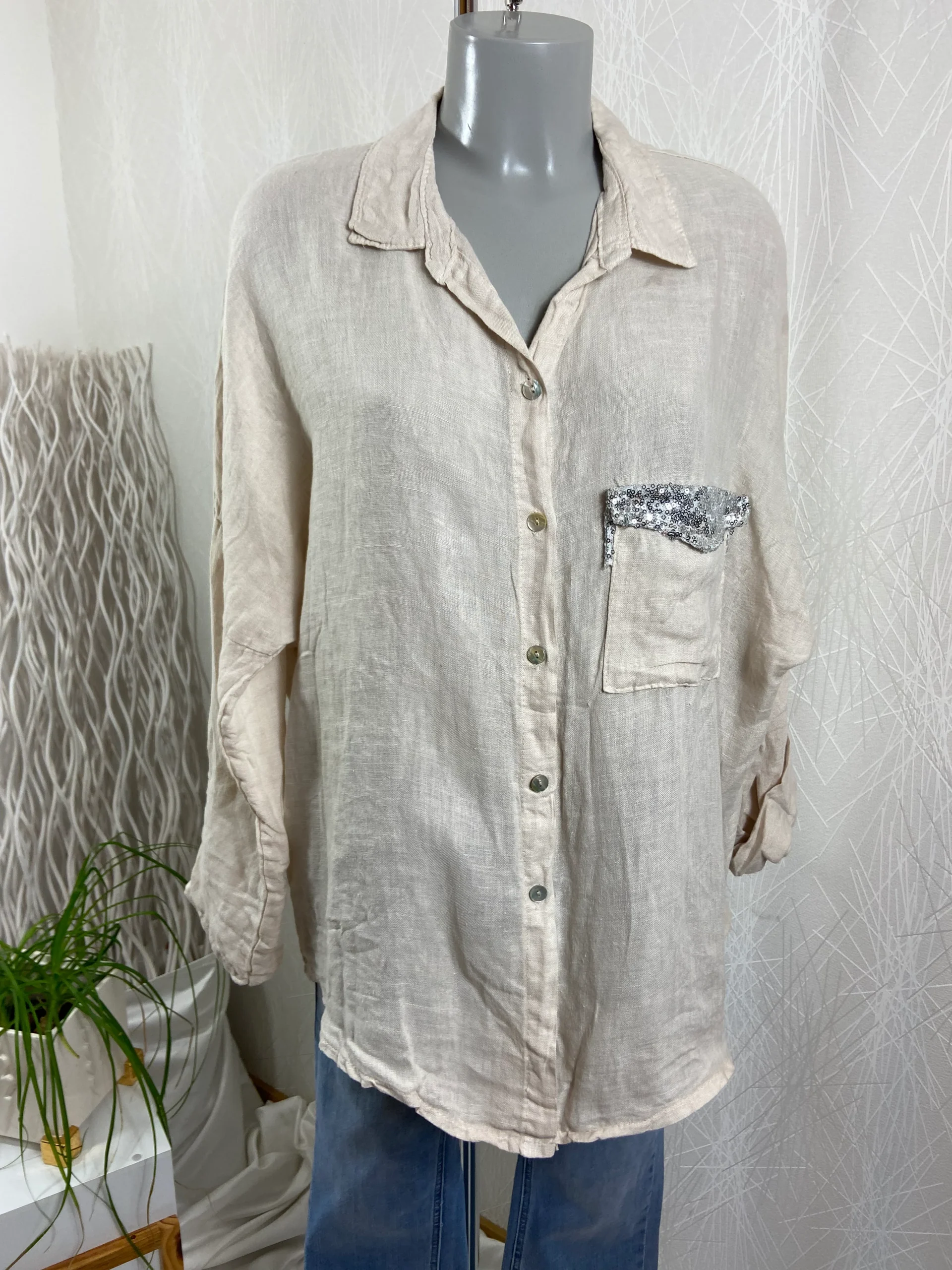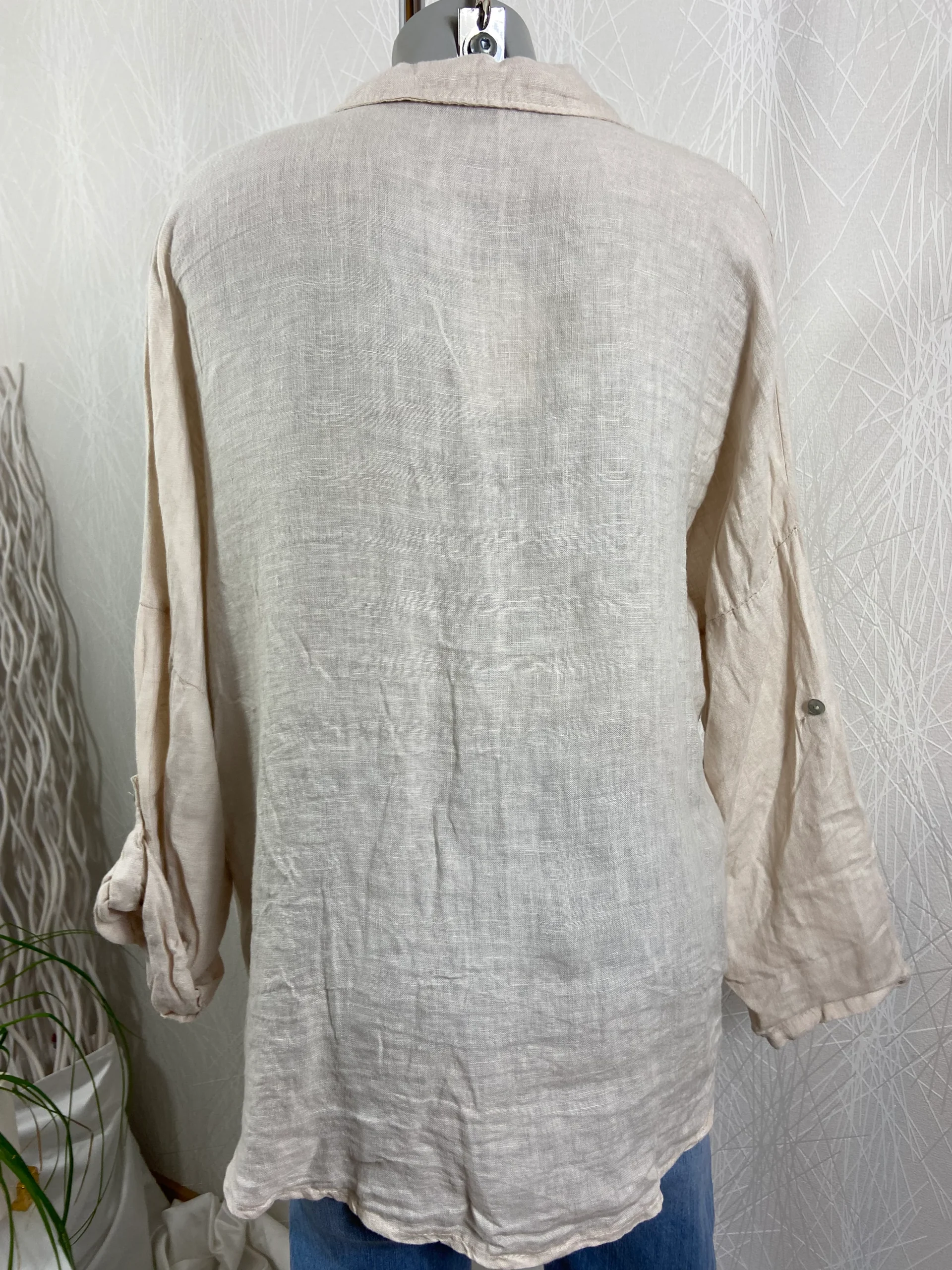 Chemisier asymétrique manches longues retroussables 100% lin Angelina – Taille Unique