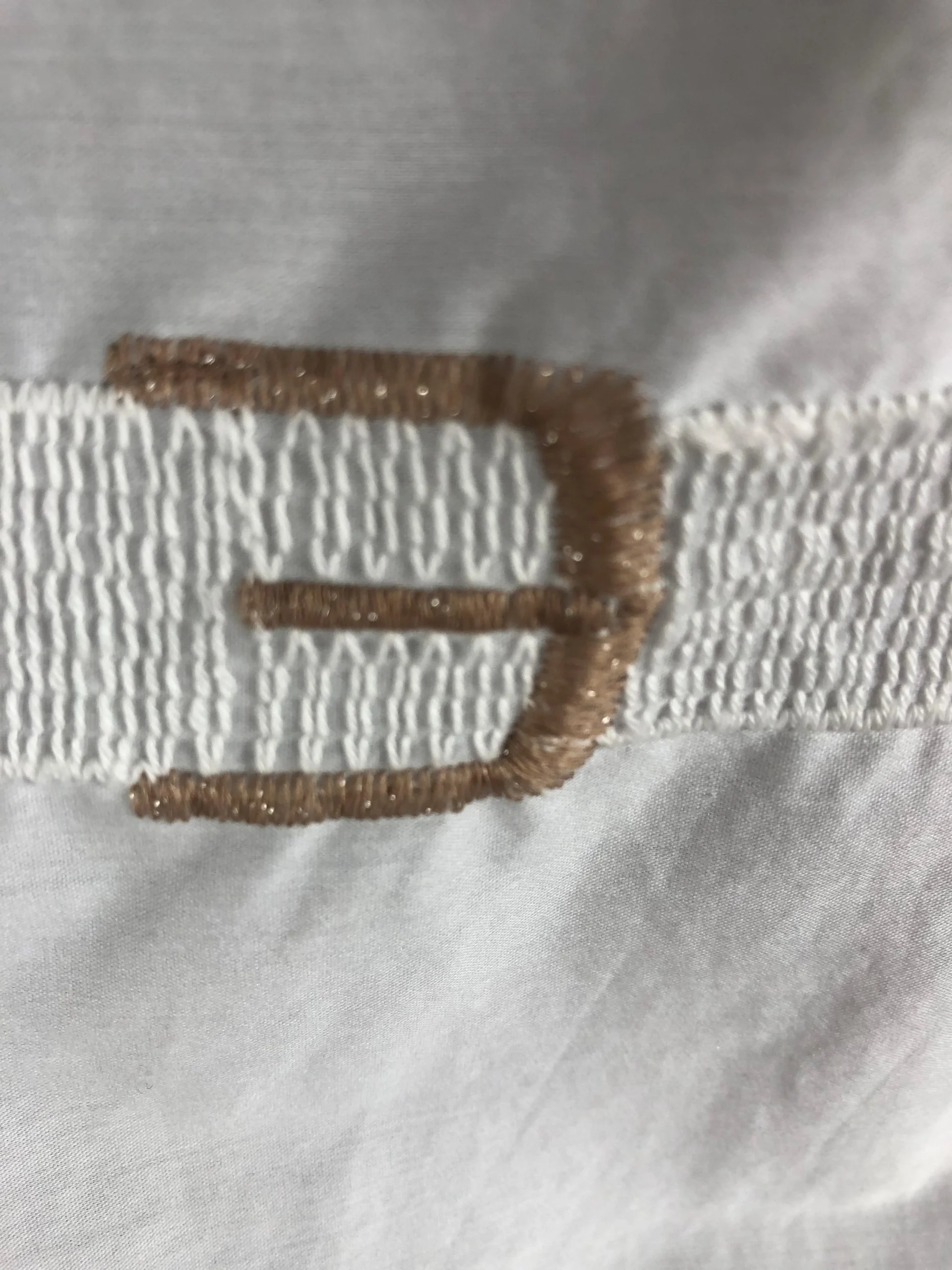Manches courtes, finition fantaisie, liseré de style à cordon de couleur contrastée et motifs dorés.