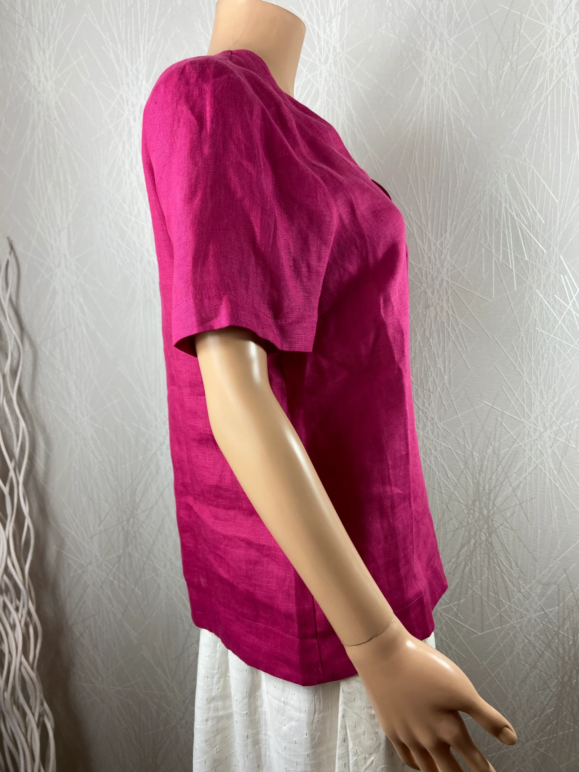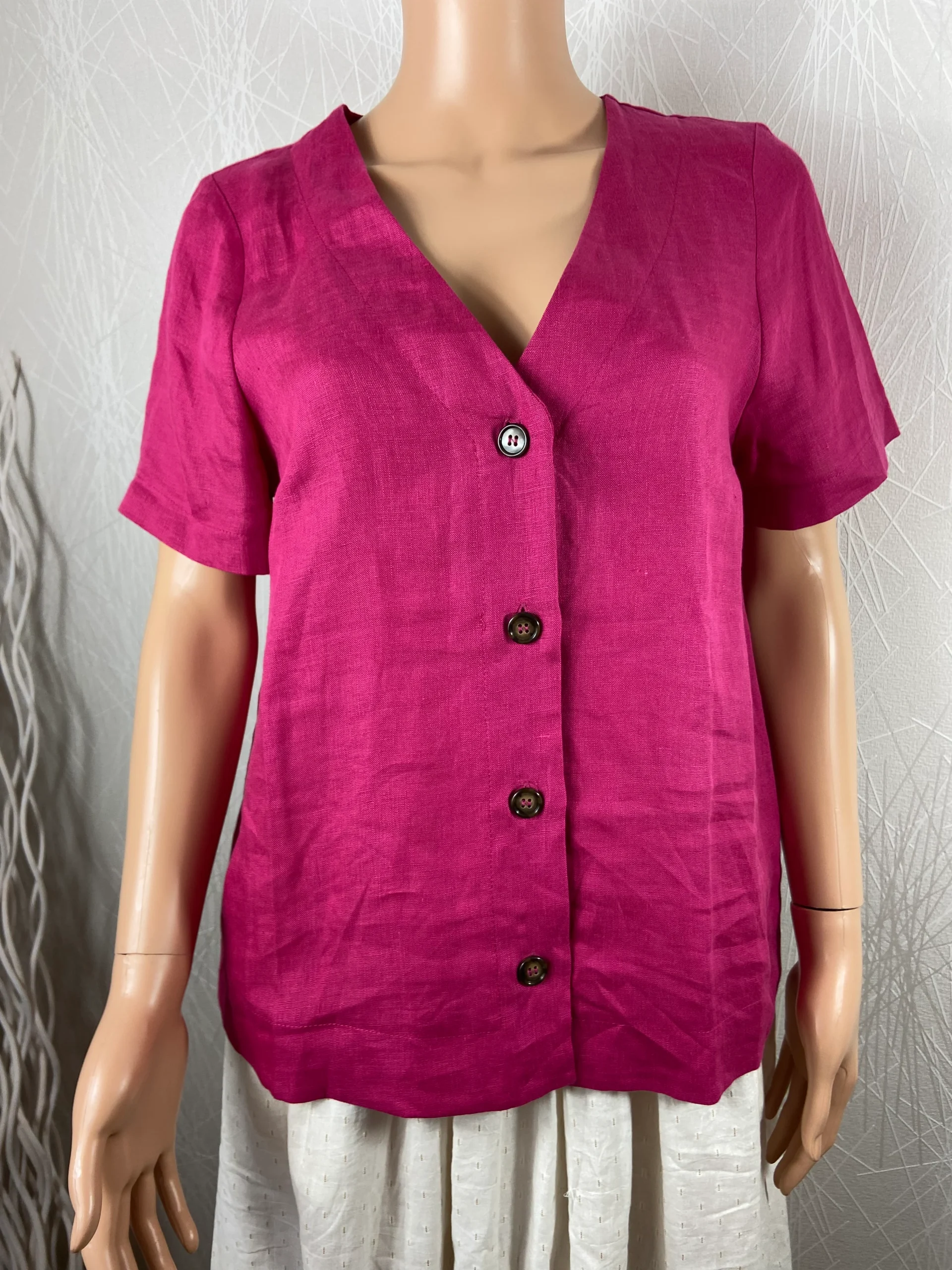 Chemisier en lin manches courtes rose fuchsia La Fée Maraboutée