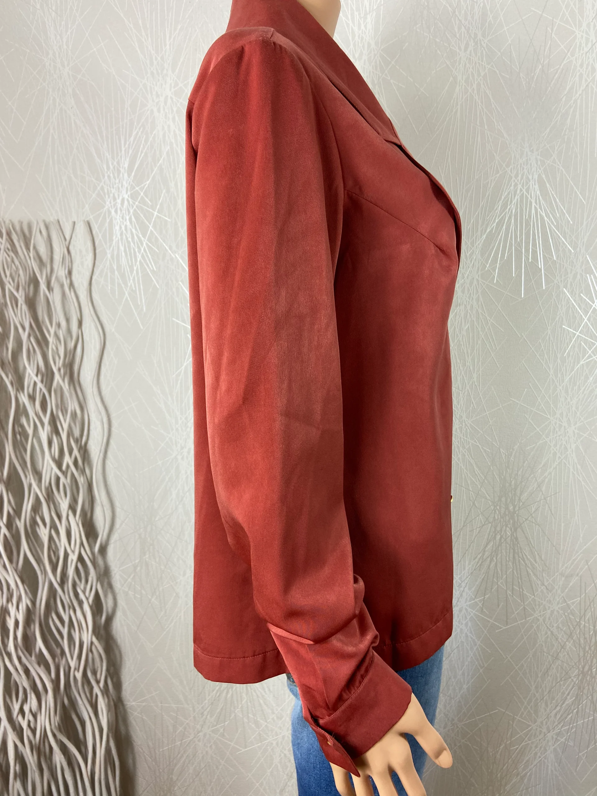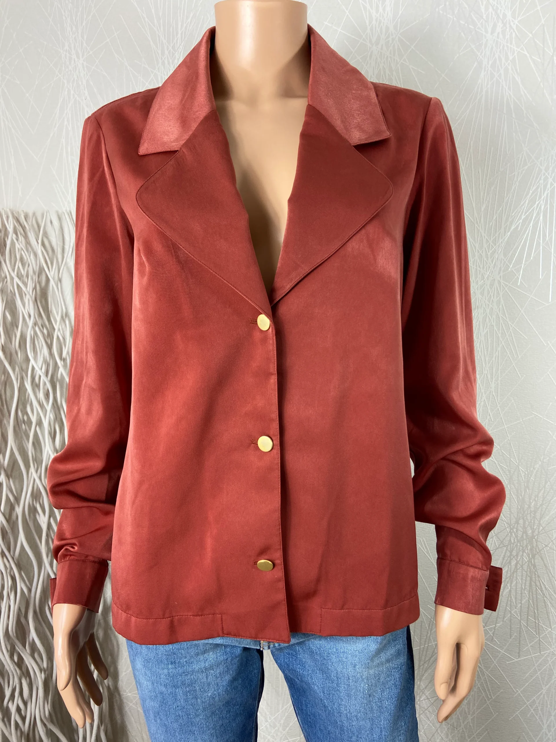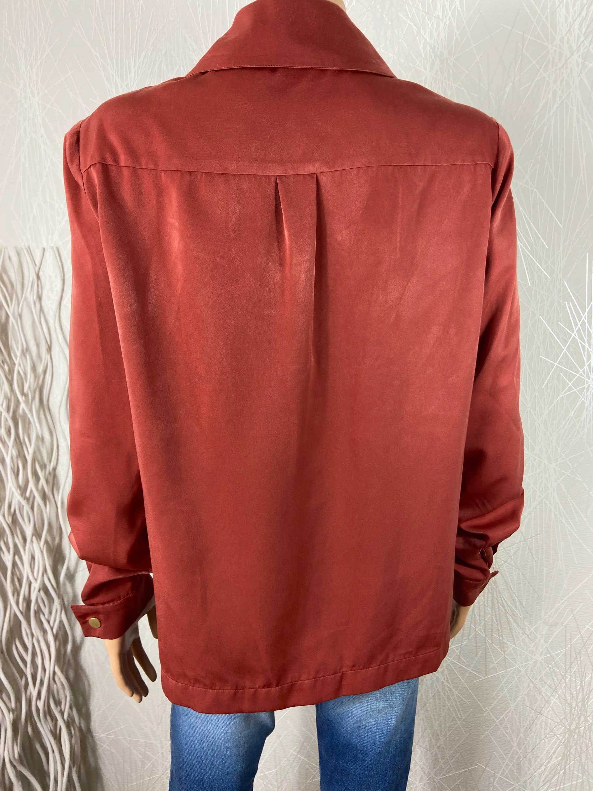 Chemisier manches longues de la marque Jane Wood. Encolure en V, satiné, entièrement boutonné et boutons aux poignets. Matière : 100% polyester. Couleur : Brun rouille. Marque : Jane Wood Taille : M / 38 -,Réf : 38MC1786 Dimensions : Largeur épaule : 41 cm ;tour de poitrine : 108 cm ; longueur : 68 […]