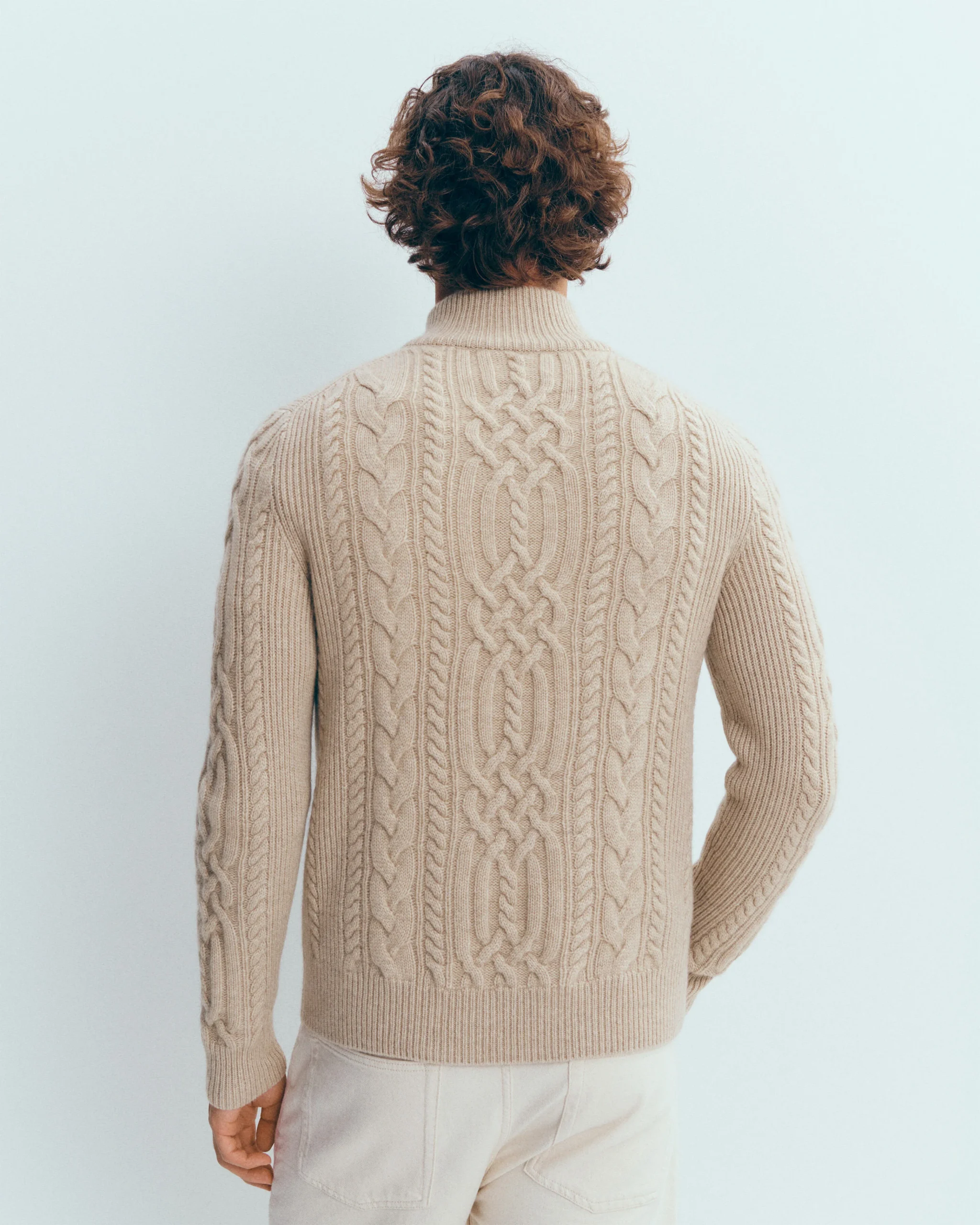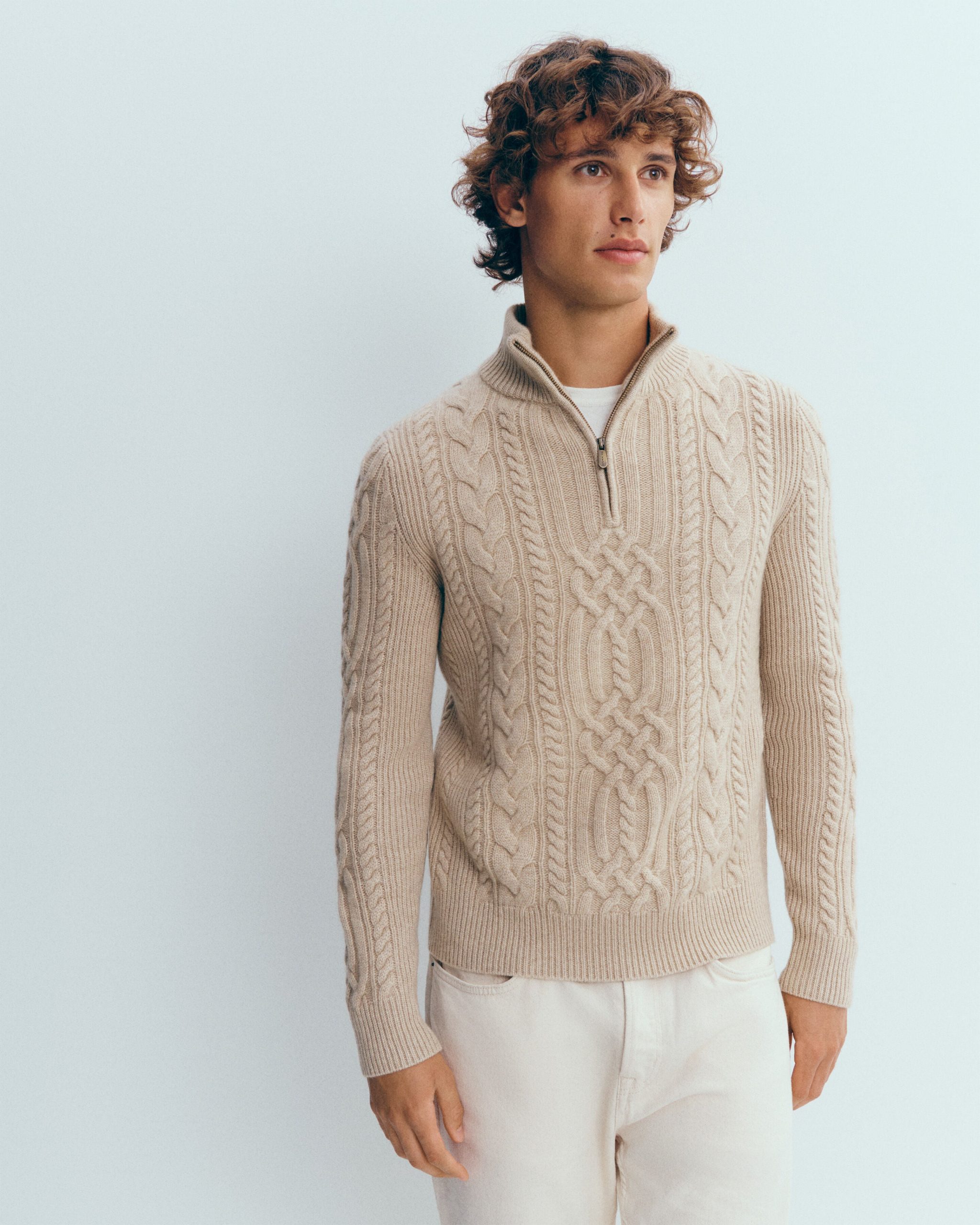 Pull camionneur zippé à col montant, tricoté en cachemire torsadé. Un modèle d’exception réalisé à partir d’une fibre pure, non traitée, non teinte. Issu de la collection « Absolu Bompard », lancée en 2022 pour célébrer chaque année un hommage artisanal et luxueux au cachemire dans sa forme la plus authentique.