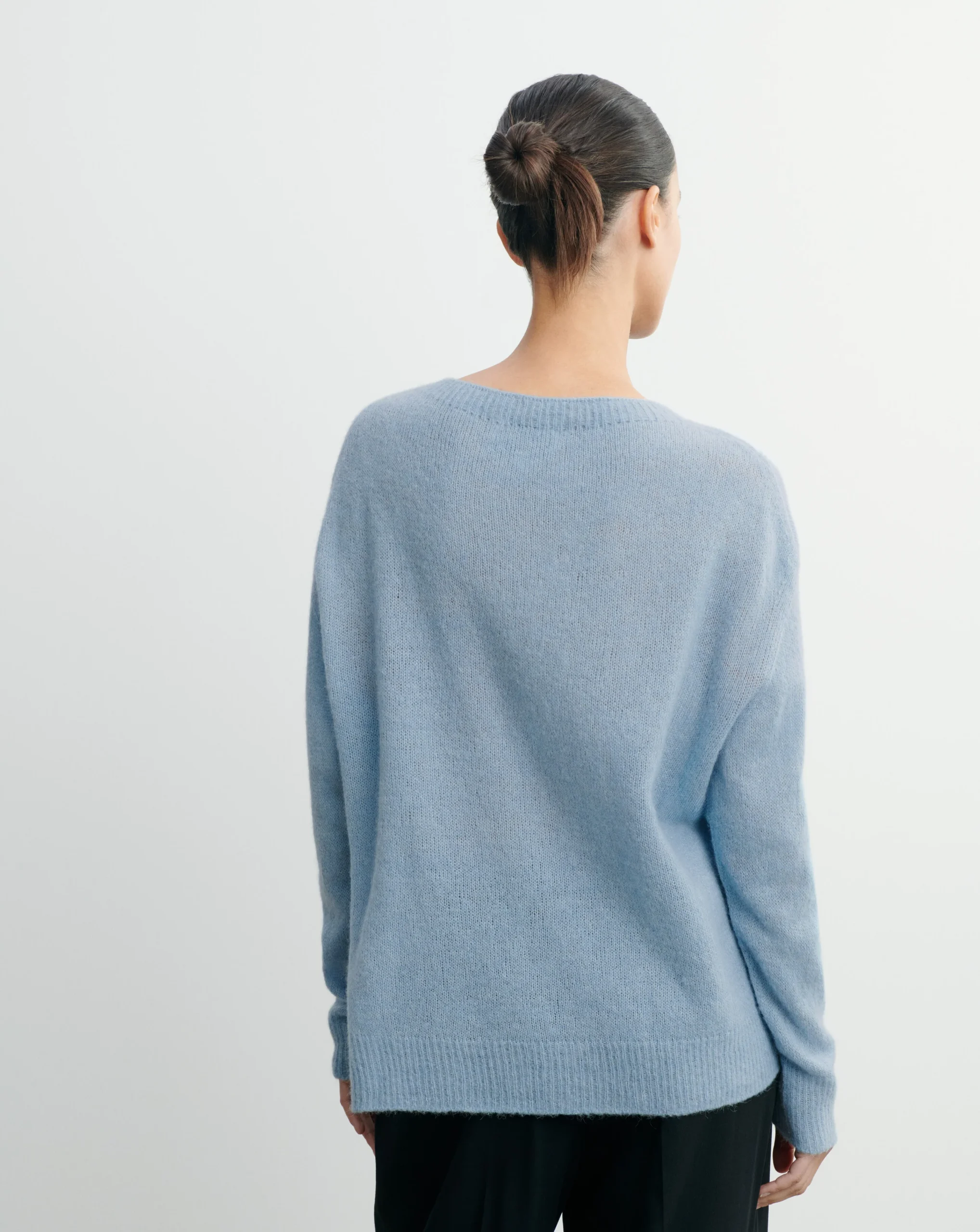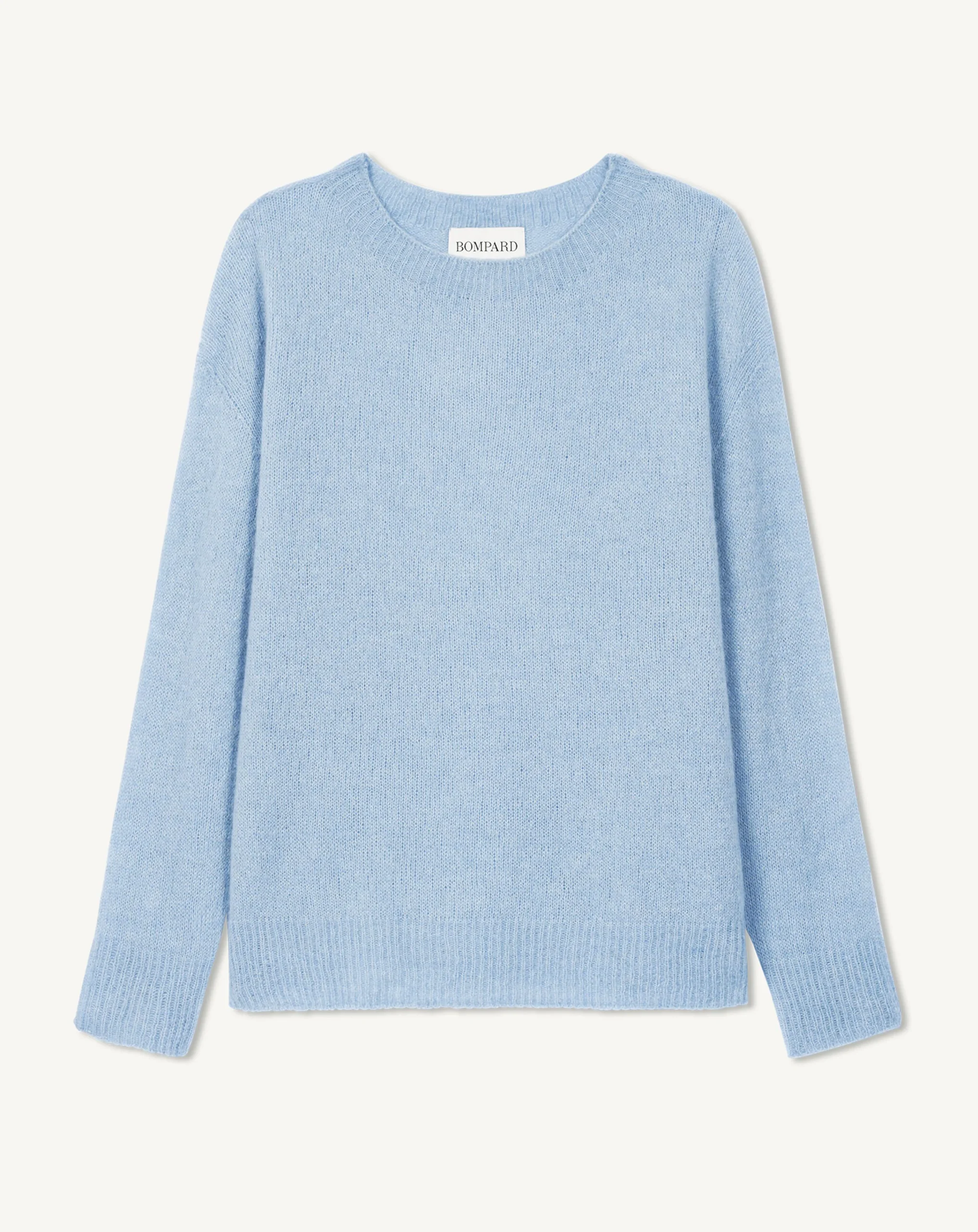 Pull col rond en maille douce sans coutures, réalisé en alpaga, cachemire et soie. Modèle à col rond dégagé, coupe droite et manches longues.