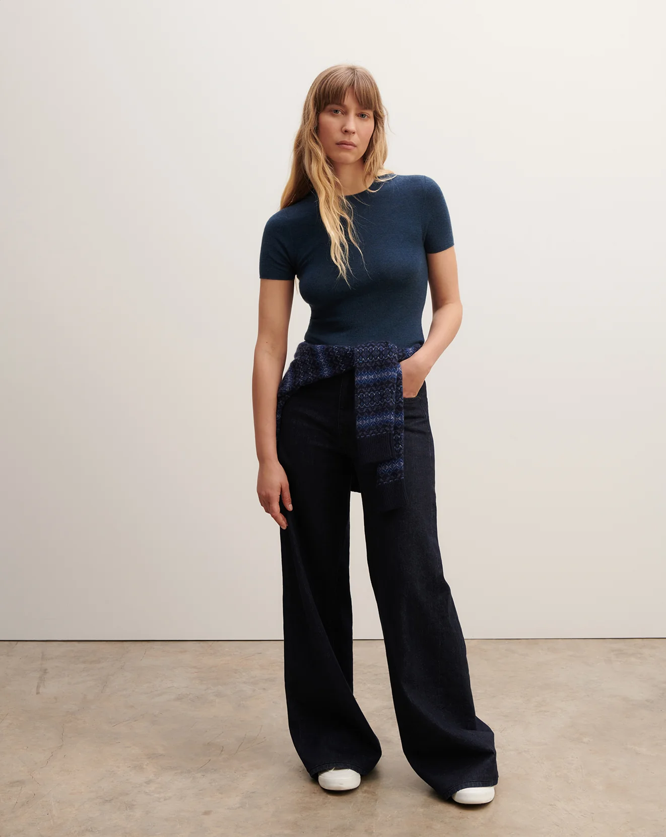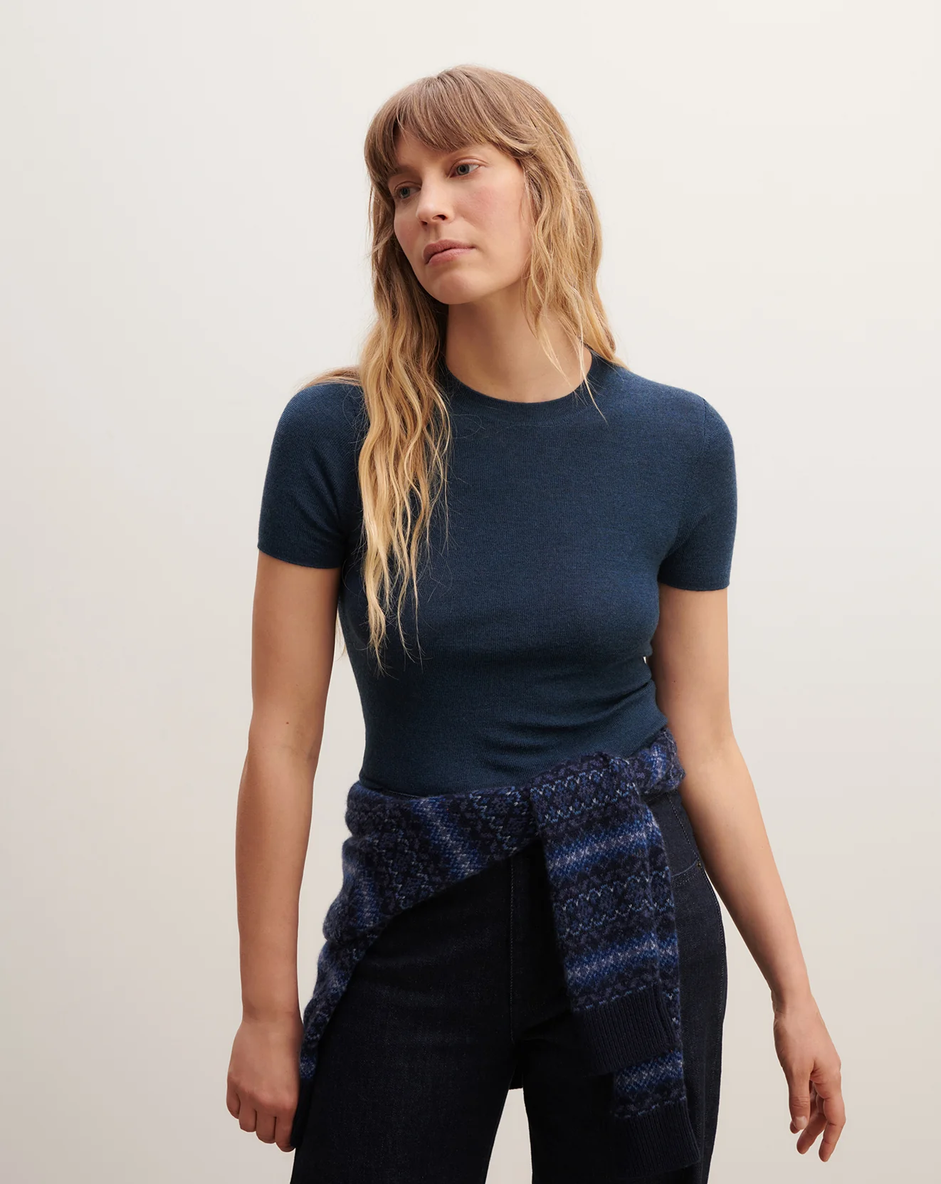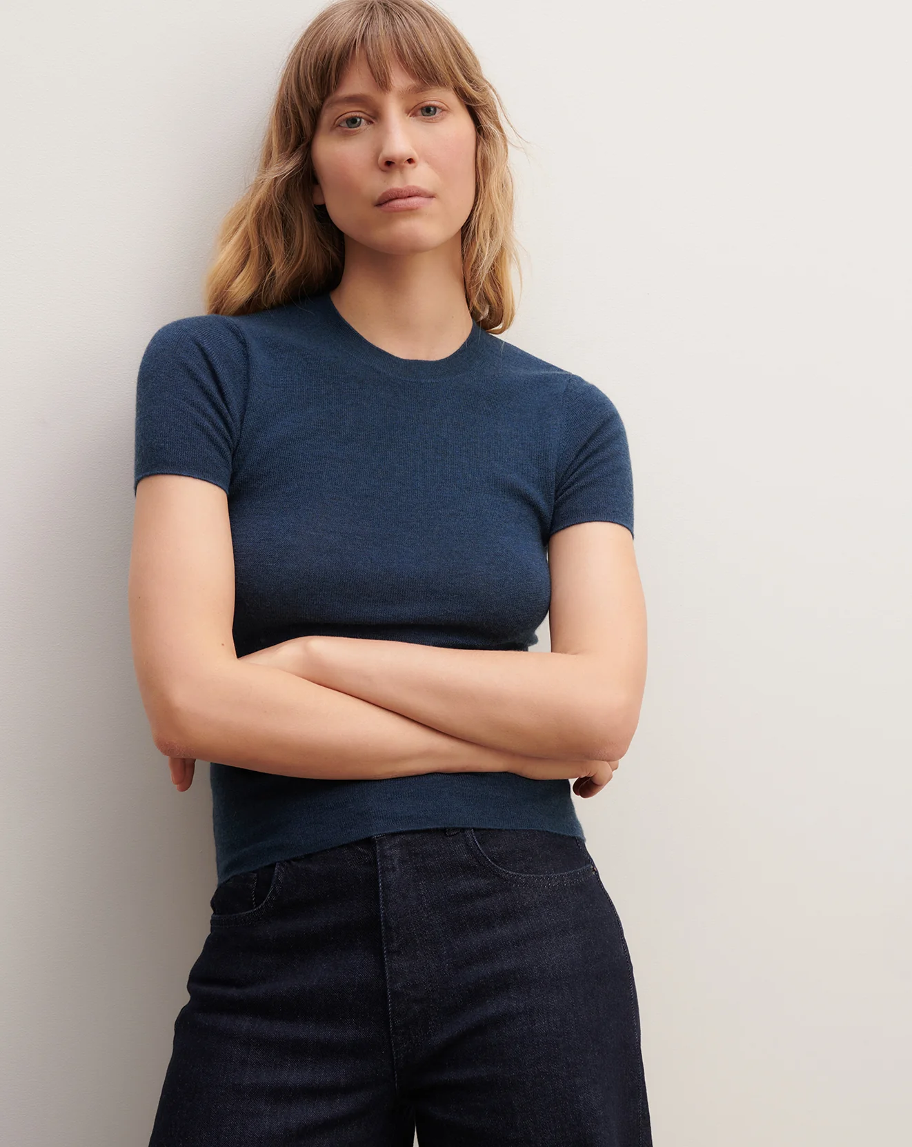 Pull ultrafin à manches courtes et coupe près du corps. Matière douce et confortable.