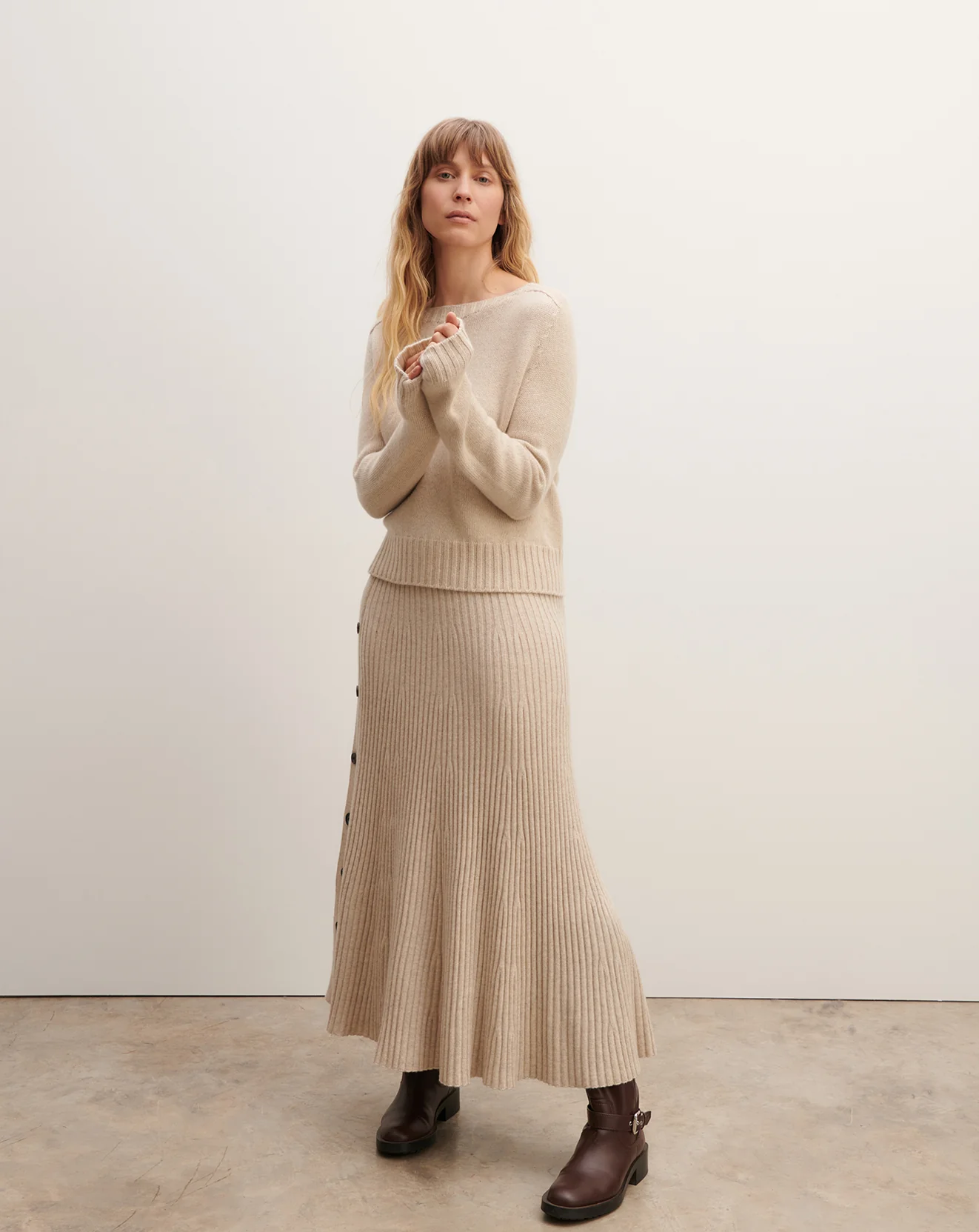 Pull col rond en cachemire tricoté sans coutures.