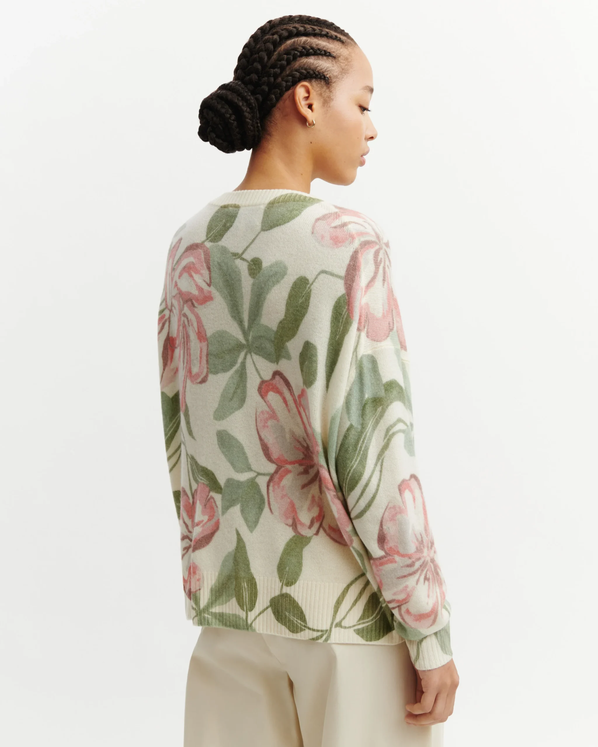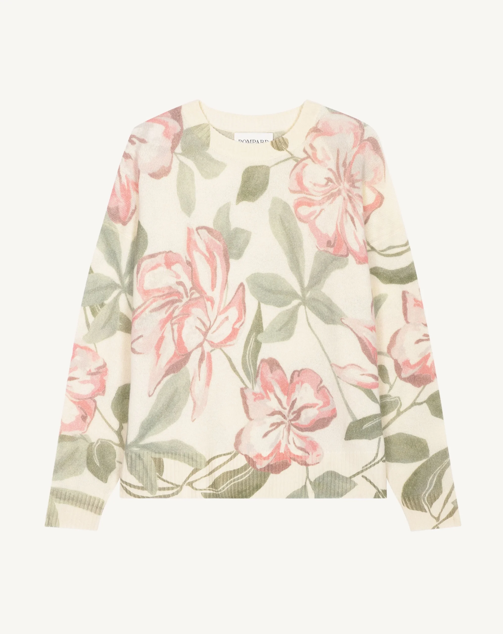 L’imprimé Anémone, exclusivité de la maison Bompard, sublime ce col rond oversized à l’allure contemporaine. Une pièce signature mêlant raffinement graphique et confort enveloppant.