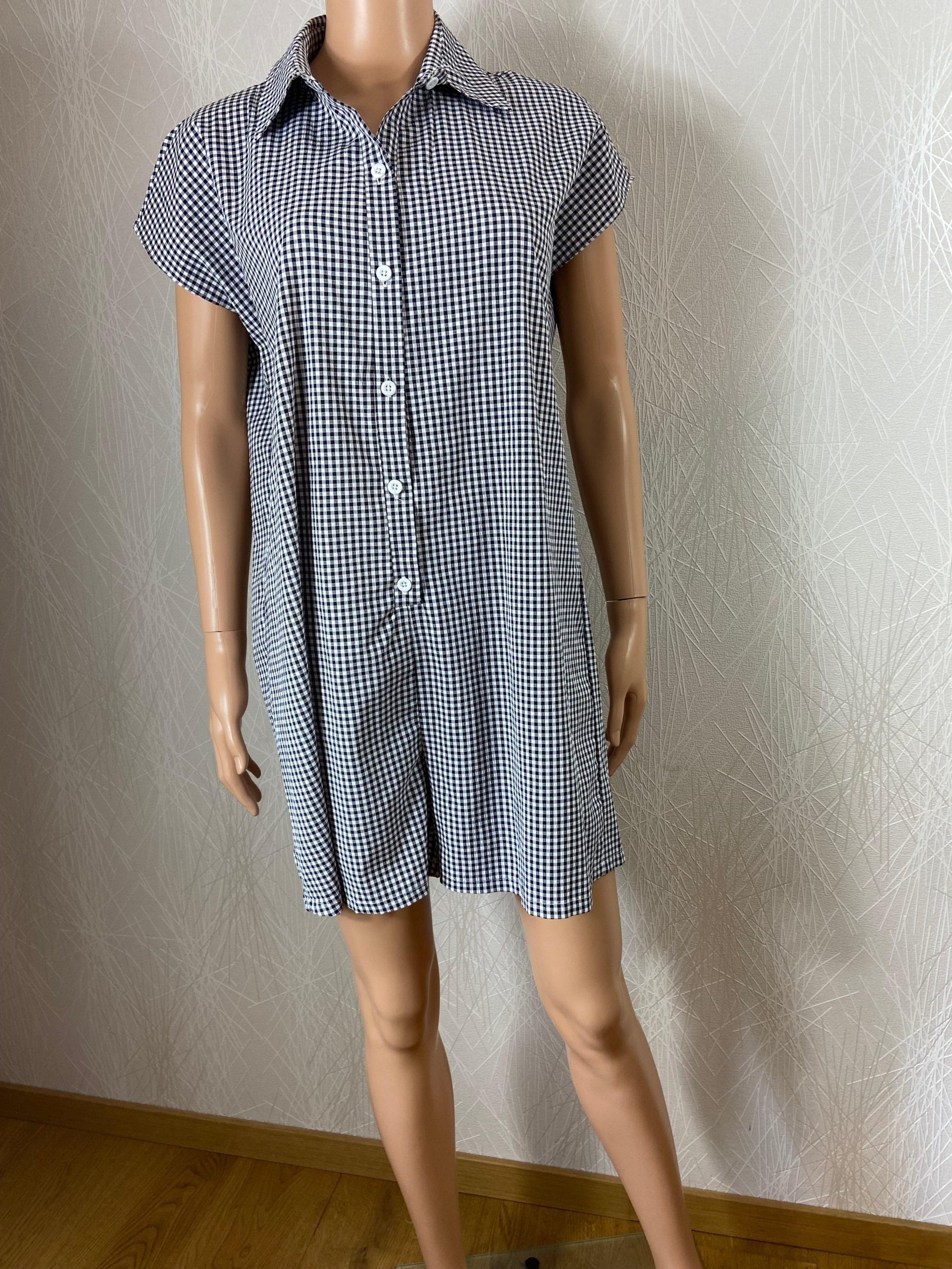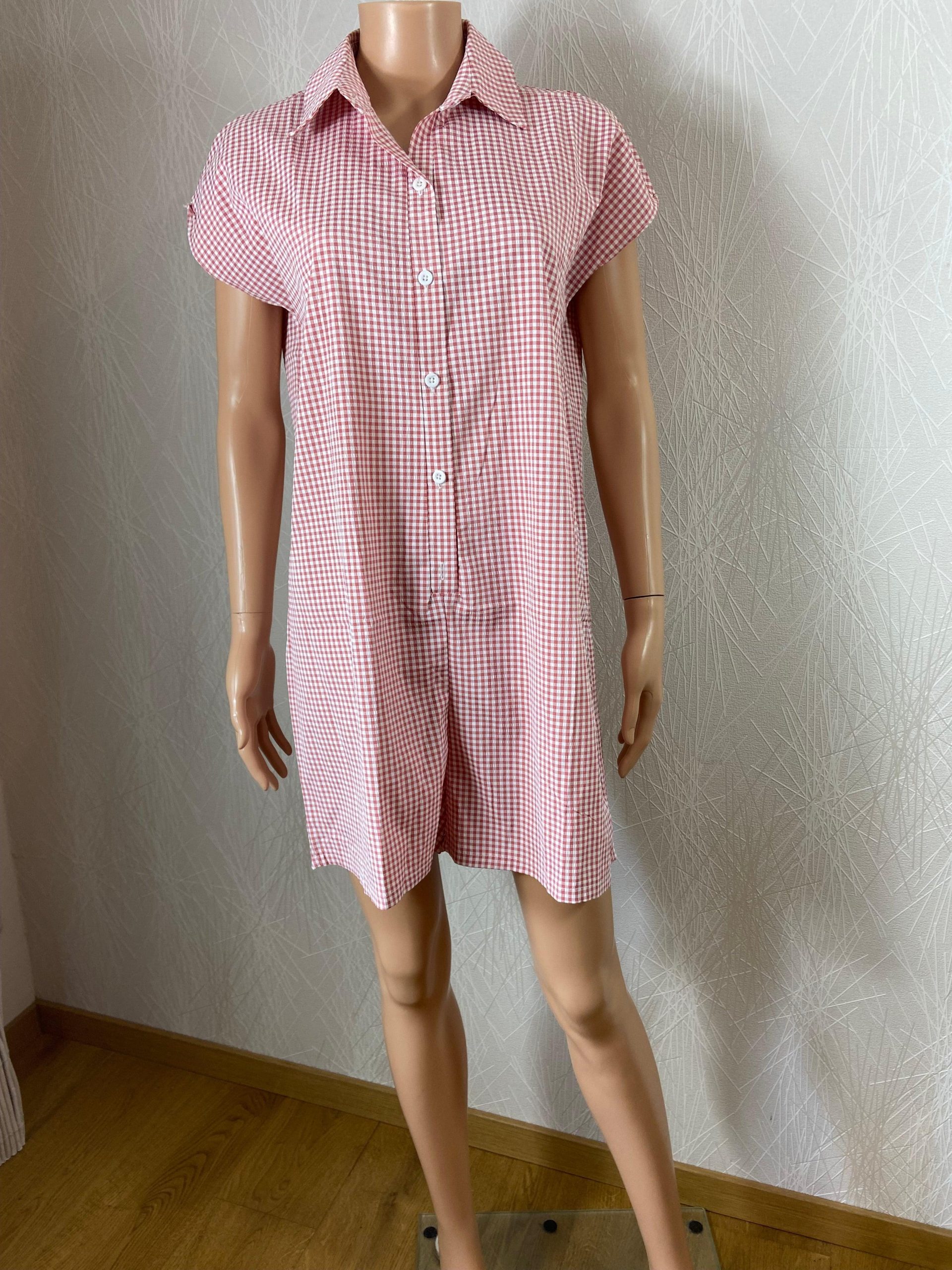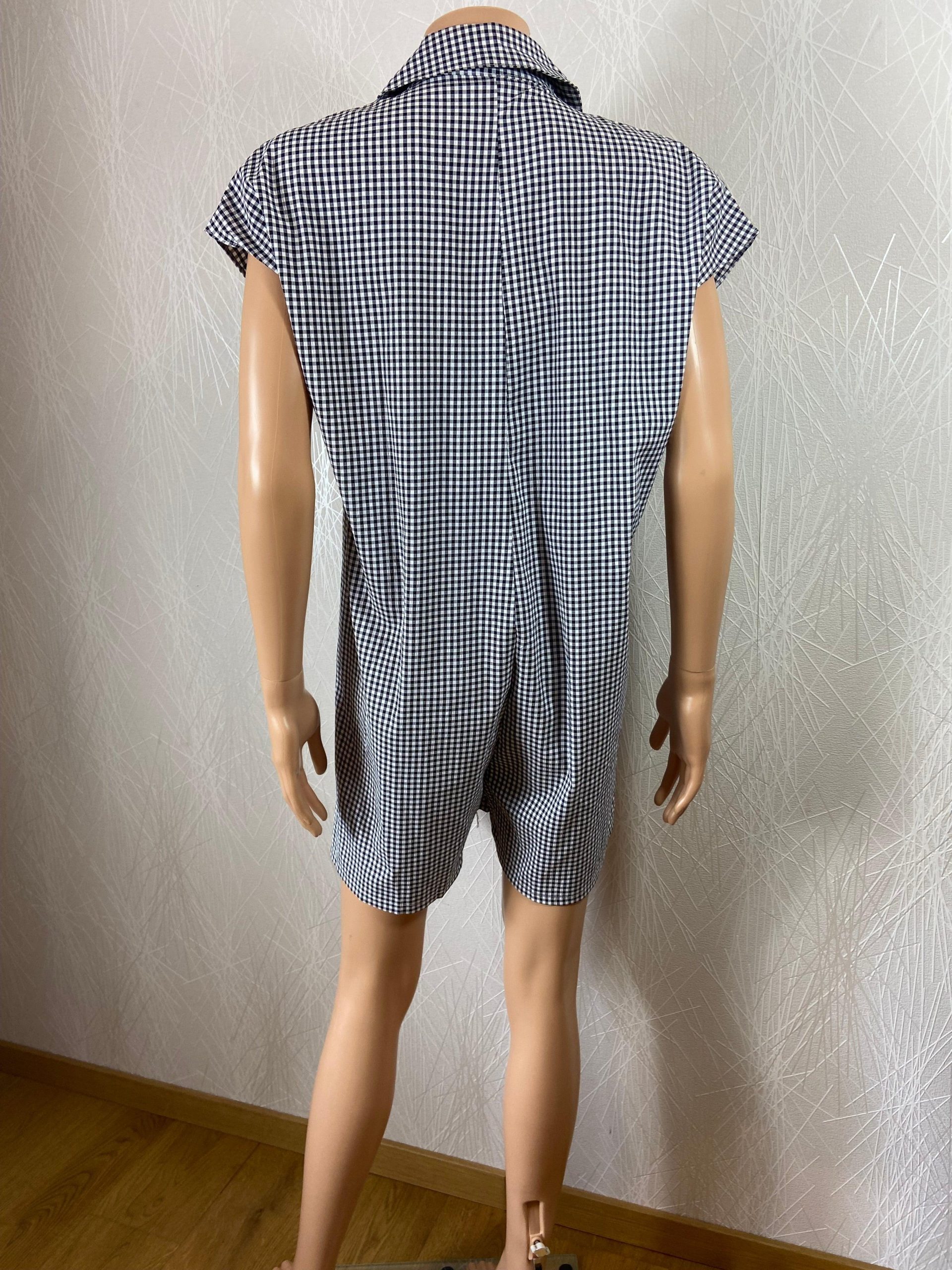 Combishort à petits carreaux col boutonné Lady Fashion