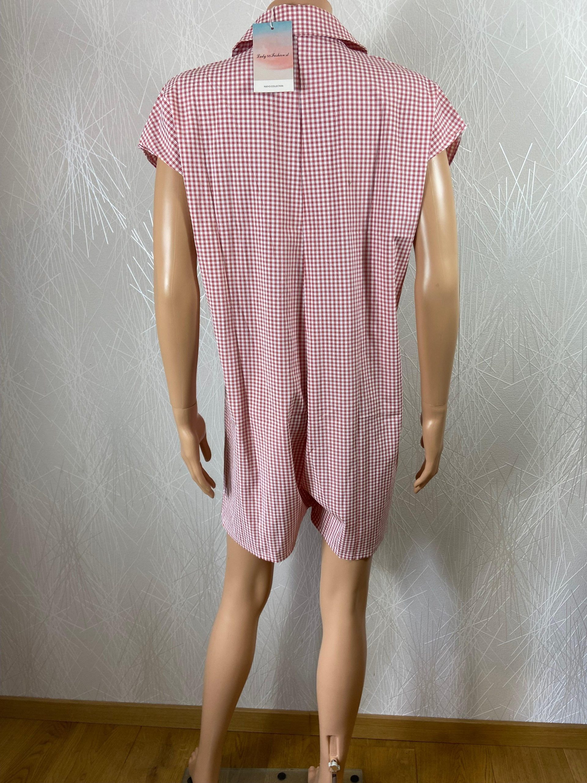 Combishort pour femme de la marque Lady Fashion. Manches courtes, avec col, boutonné, tissu à petits carreaux et coupe droite. Matière : 100% polyester Couleur : Noir ou rose Marque : Lady Fashion Taille L-XL / 40-42 Dimensions : Largeur épaule : 58 cm ; tour de poitrine : 110 cm ; longueur entrejambe : […]
