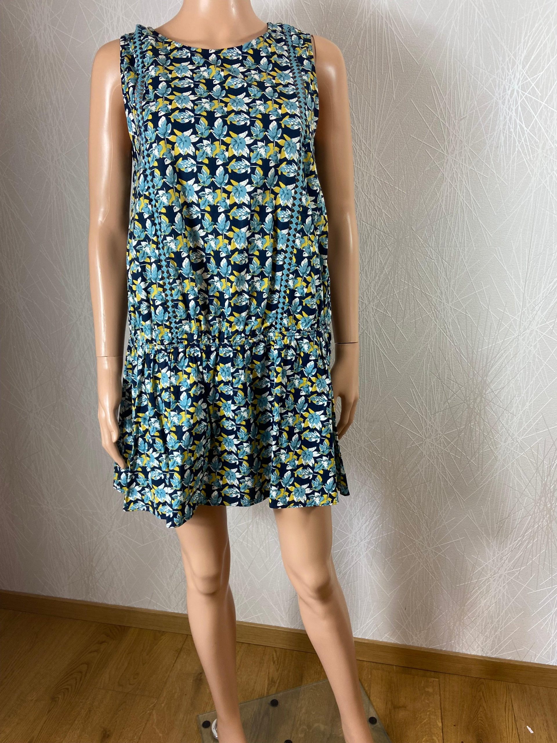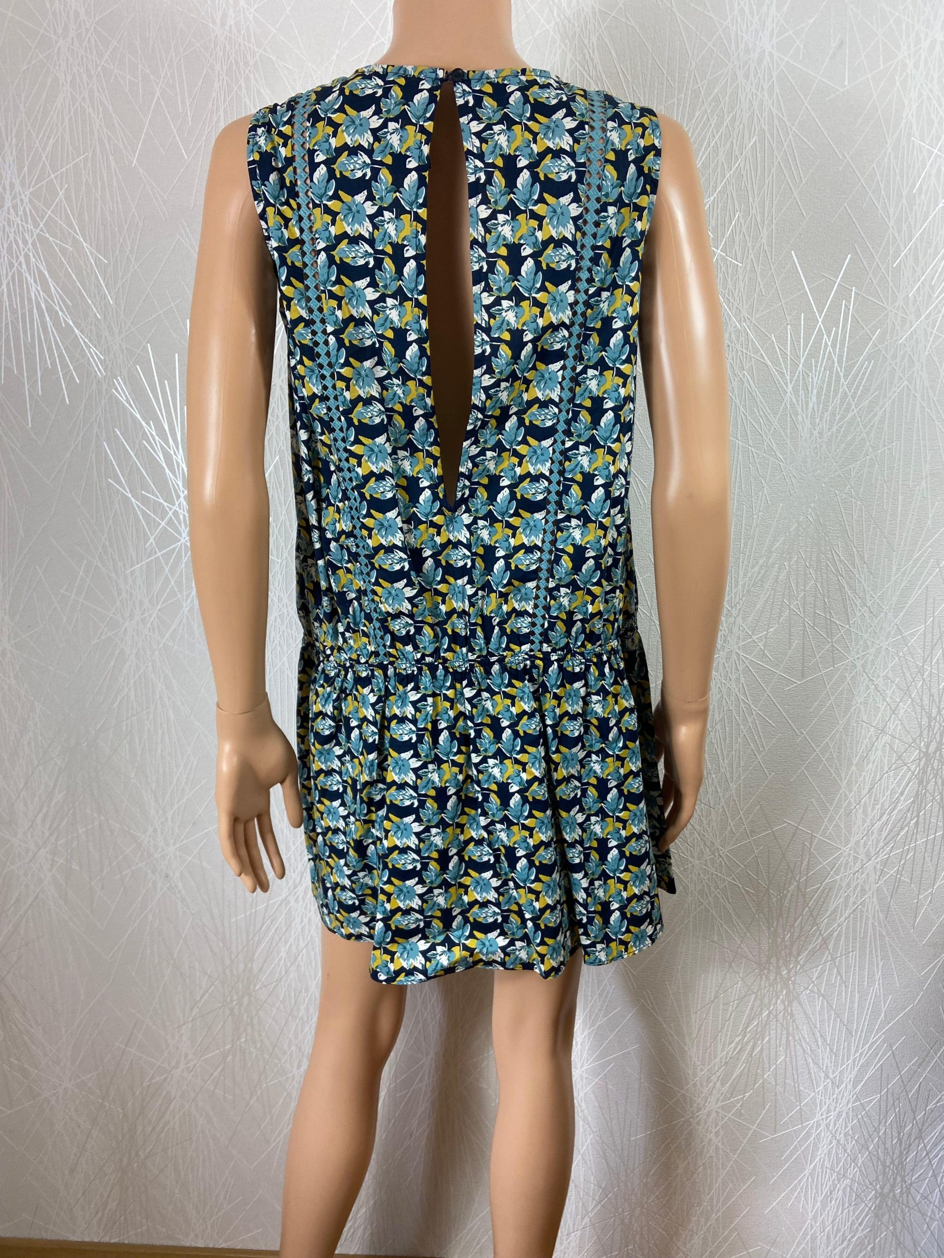 Combishort avec jupe en superposition de la marque Grace & Mila Coupe sans manches, tissu en coton légèrement ajouré sur l’avant et élastique à la taille avec volant. Tissu à motif fleuri multicolore, doublé en bas, fermeture goutte d’eau à l’arrière et échancré dans le dos. Matière : 100% coton Couleur : Bleu Marque : […]