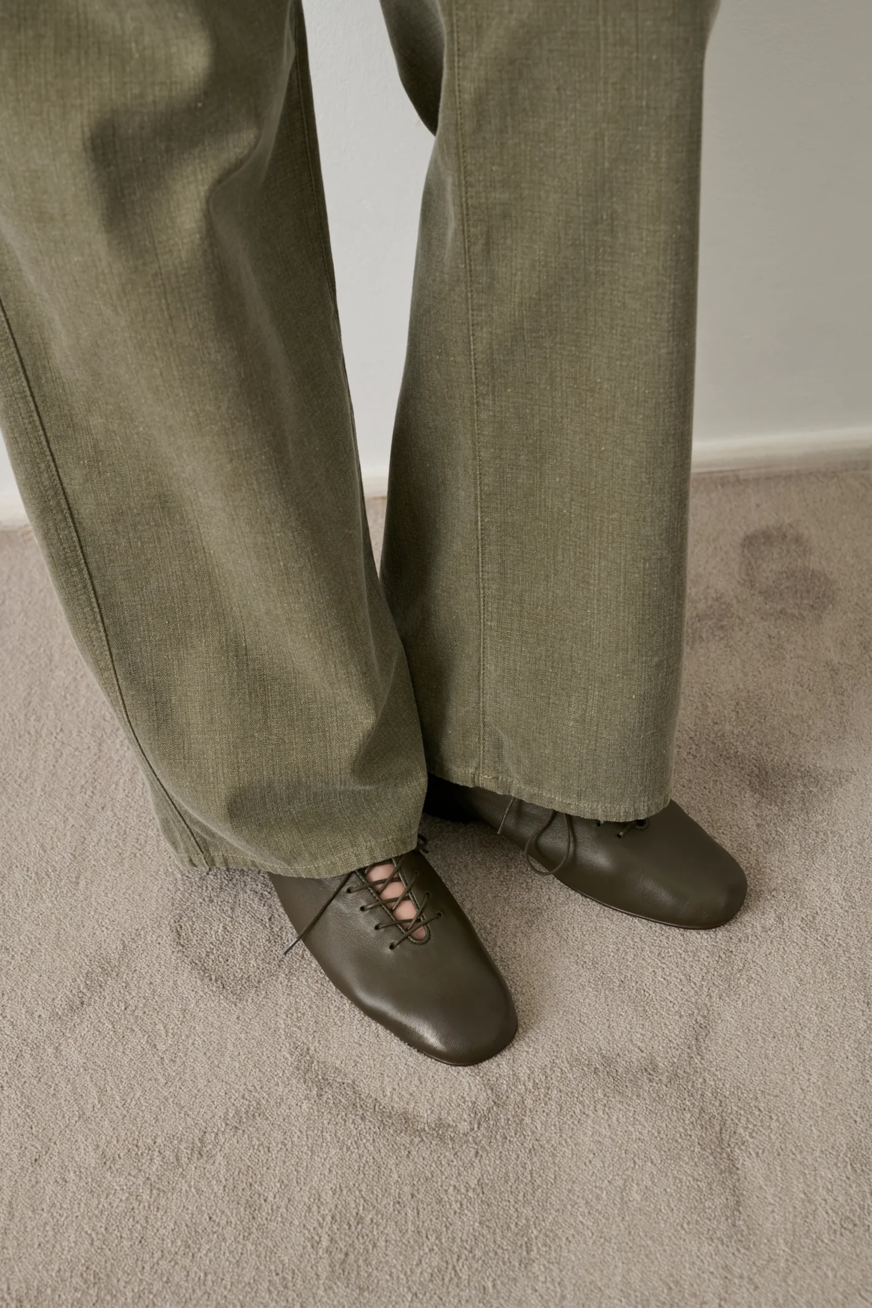 – Derbies à lacets en cuir souple à bout rond – Non doublé – Hauteur de tige 6,5cm – Passants au talon pour enfiler la ballerine – Cuir LWG (Leather Working Group)