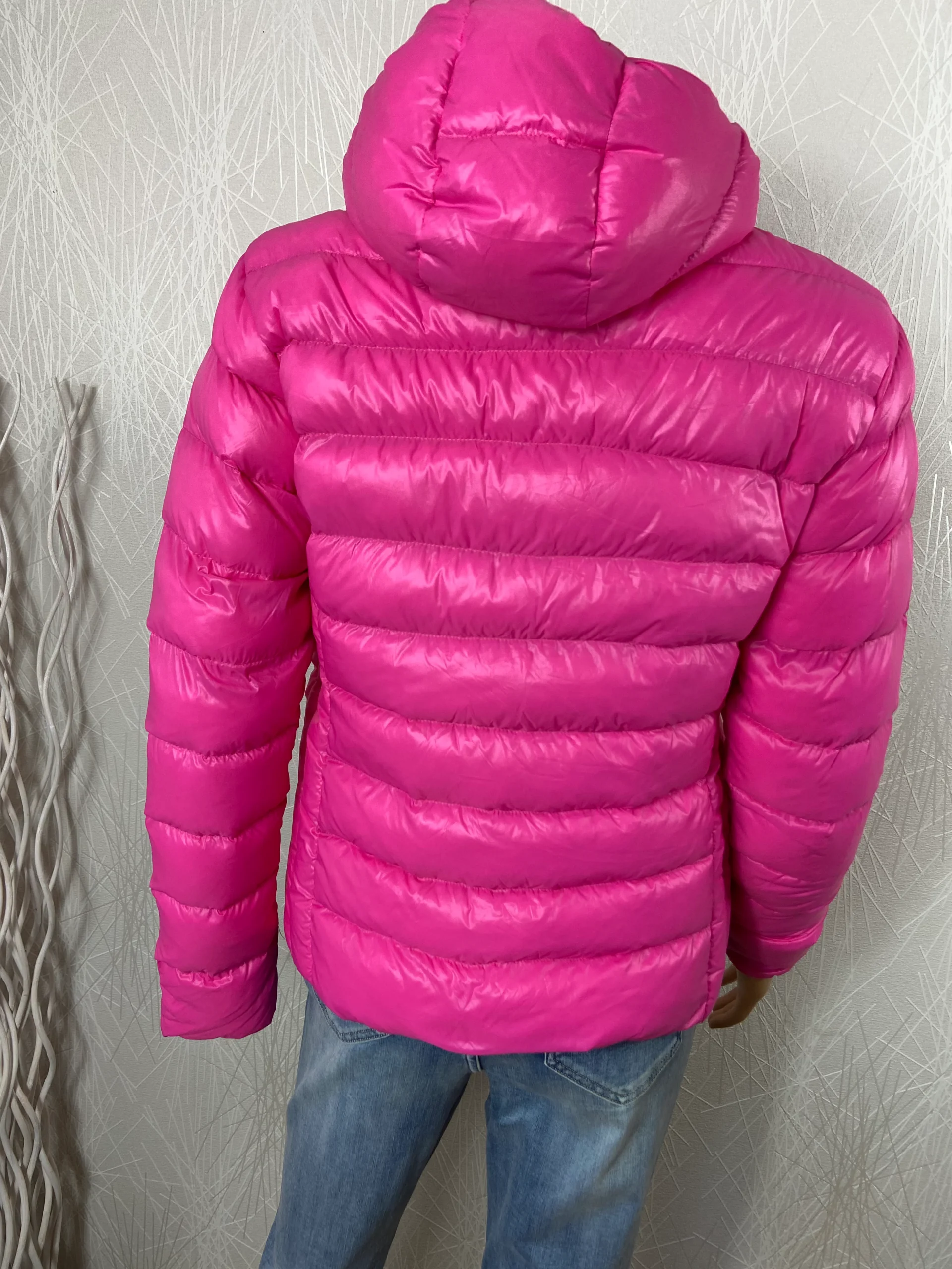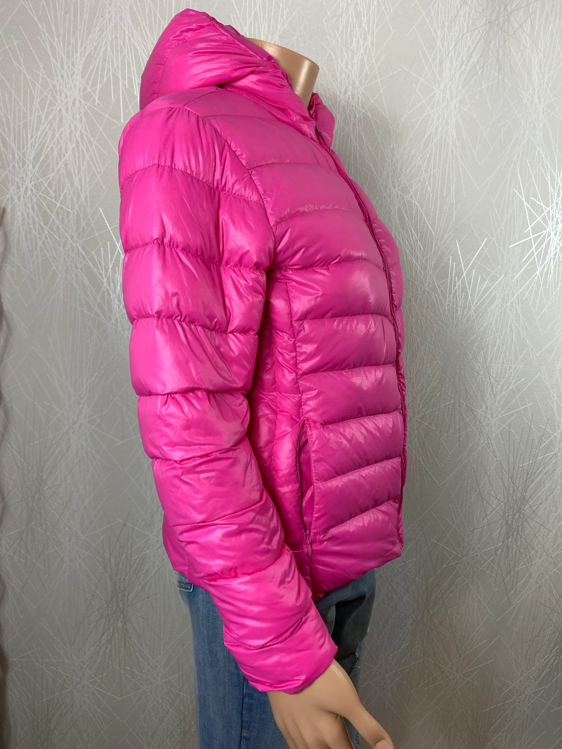 Doudoune rose matelassée duvet plumes capuche PM