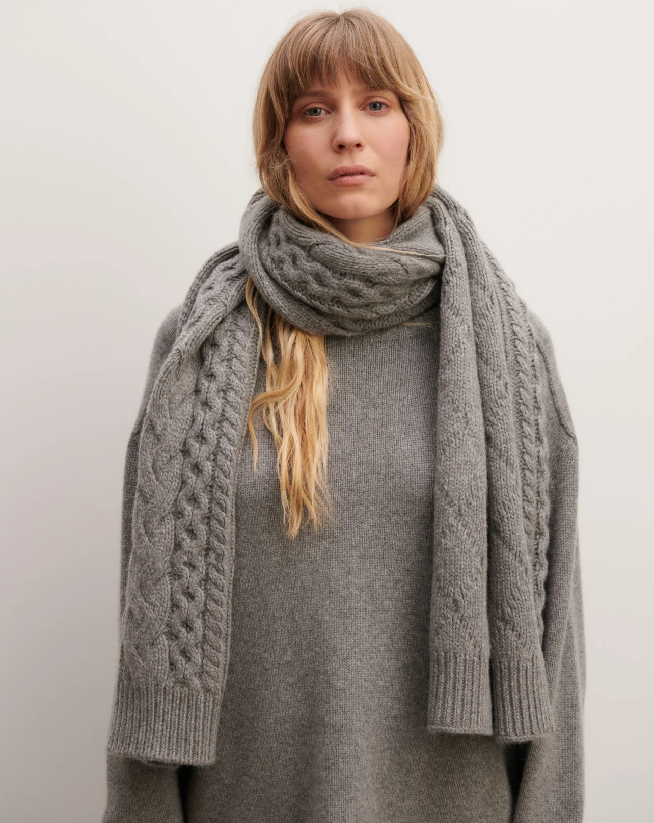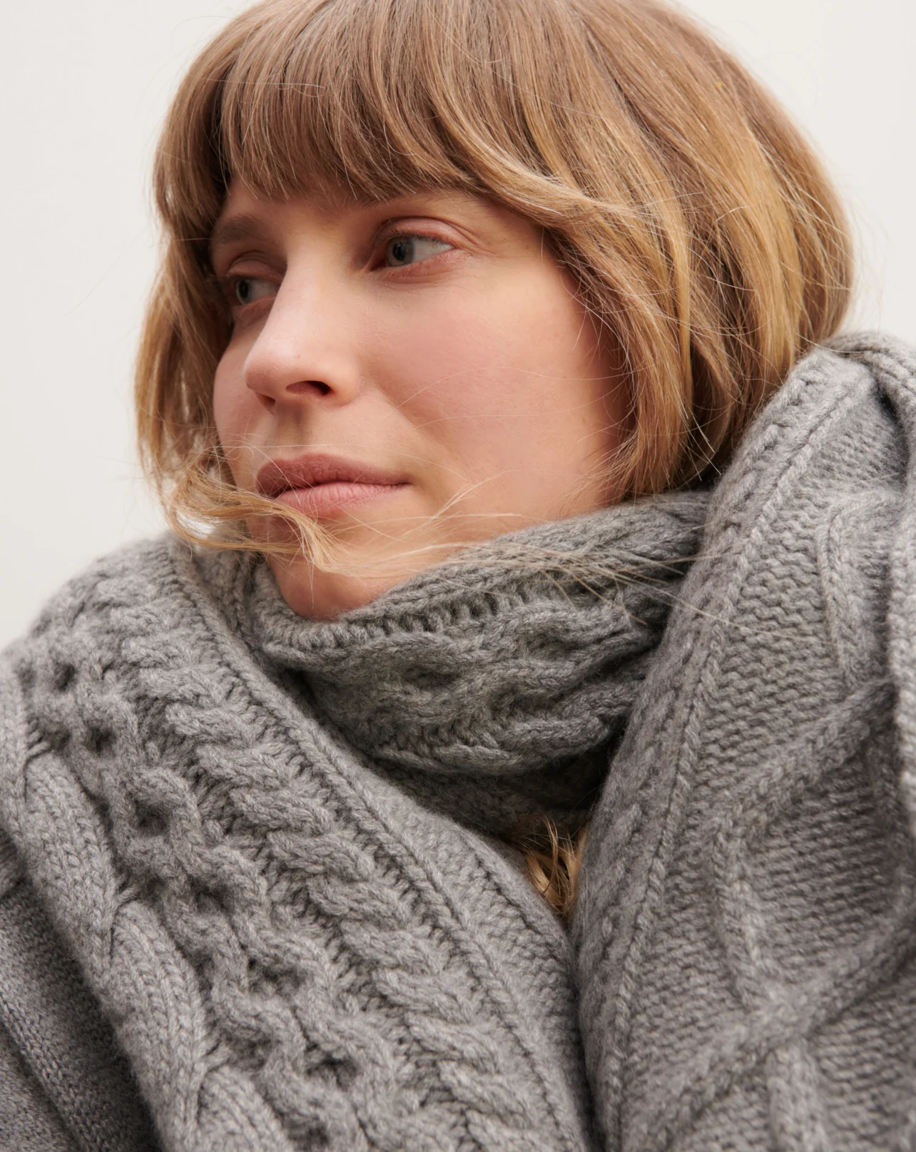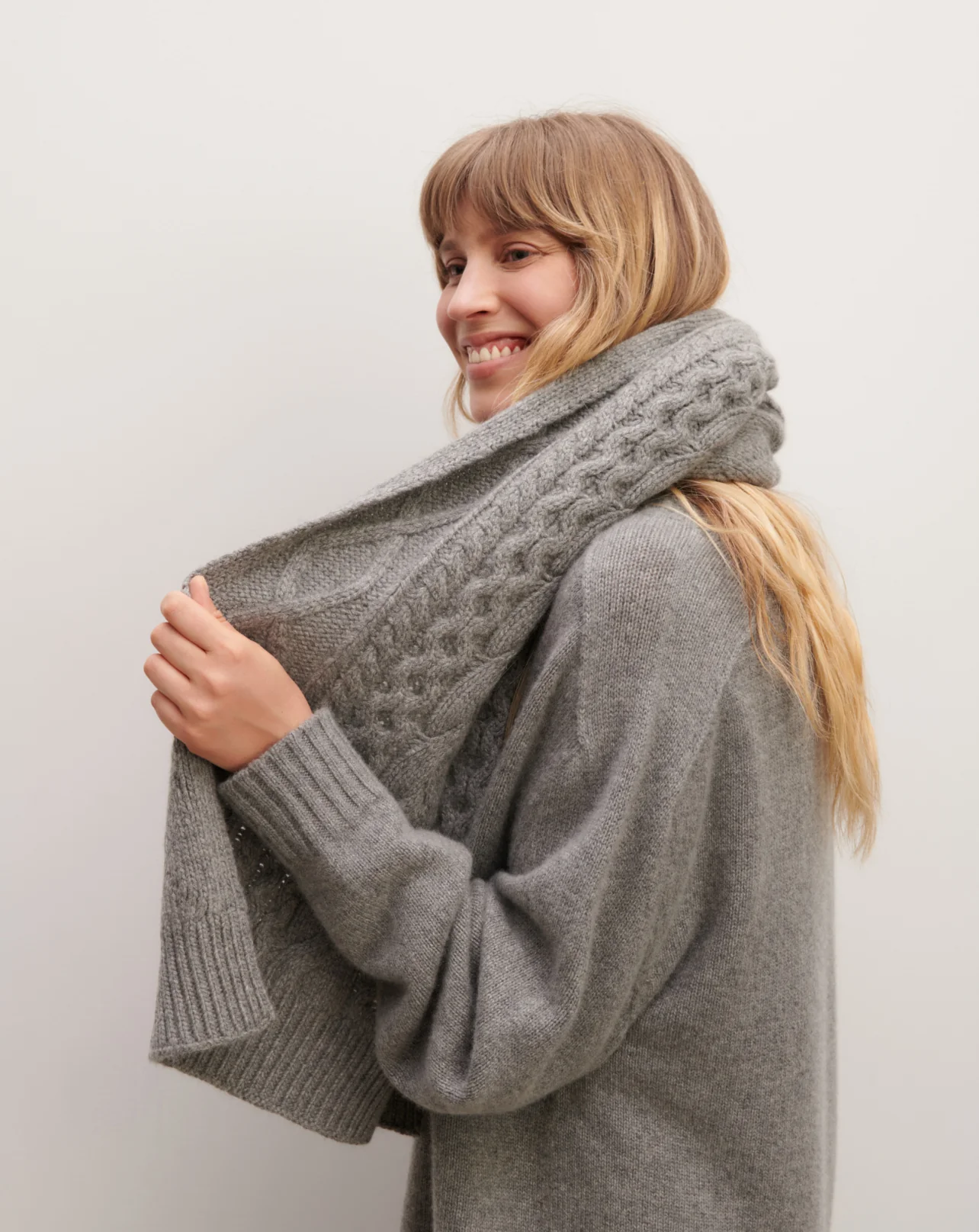 Écharpe en cachemire avec jeu de torsades. -Echarpe torsades femme-Tricot à torsades et maille tressée