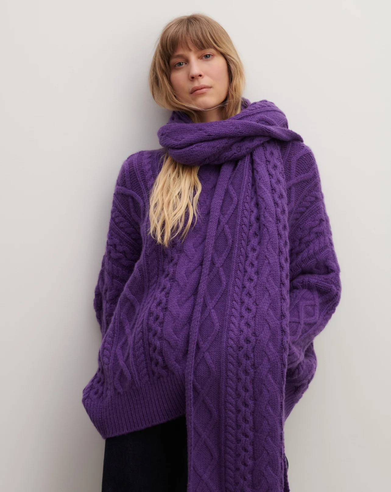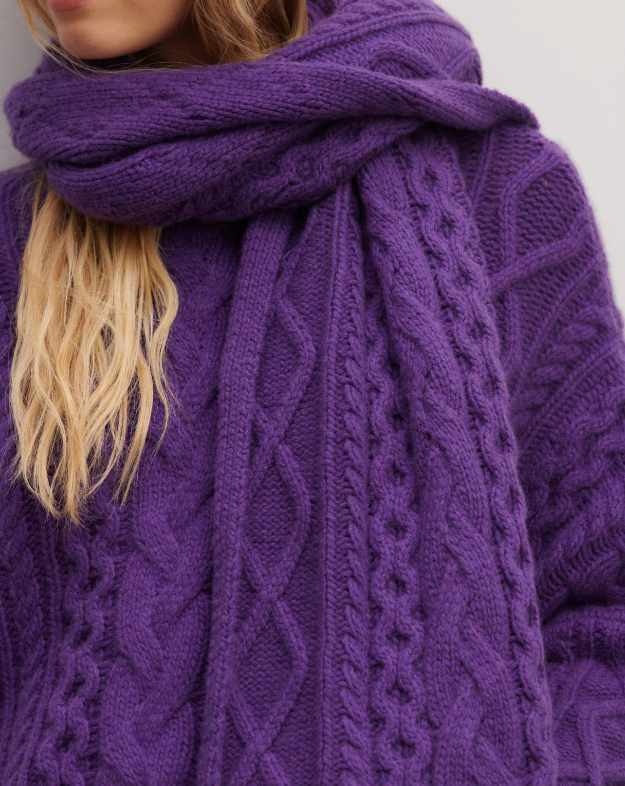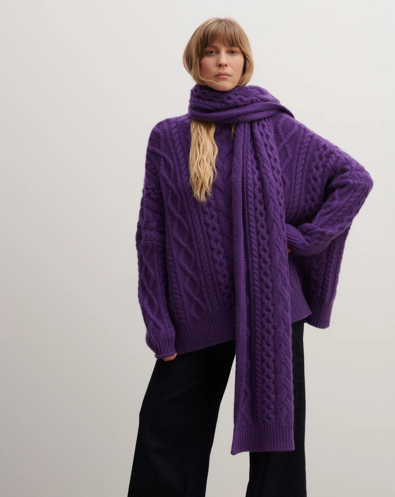 Écharpe en cachemire avec jeu de torsades. -Echarpe torsades femme-Tricot à torsades et maille tressée
