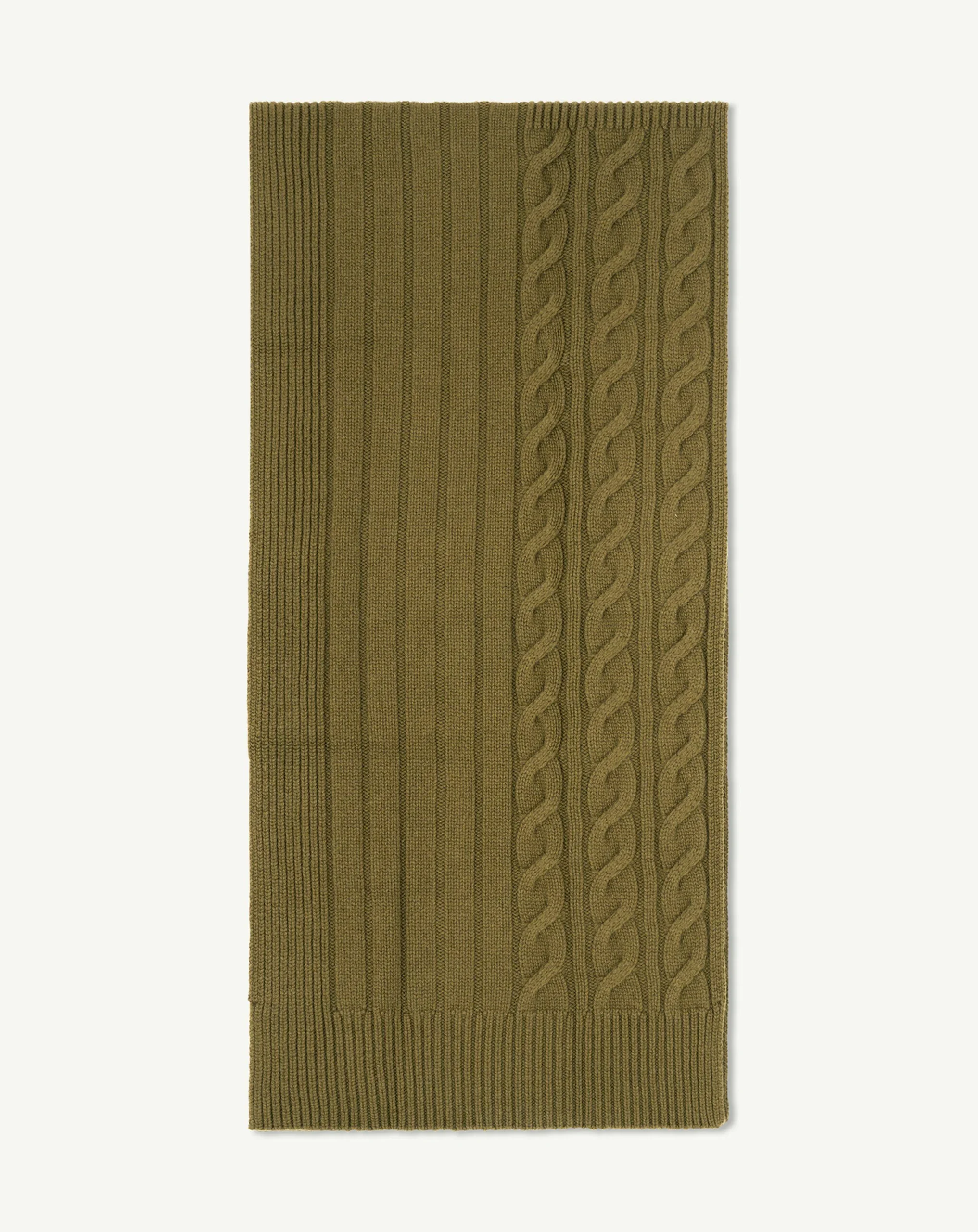 Écharpe en douce maille de cachemire et ornée d’un jeu de côtes et torsades.