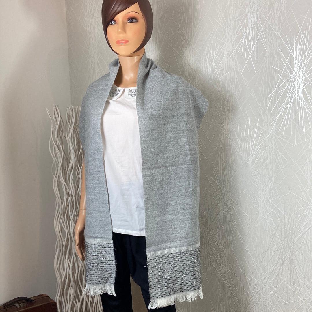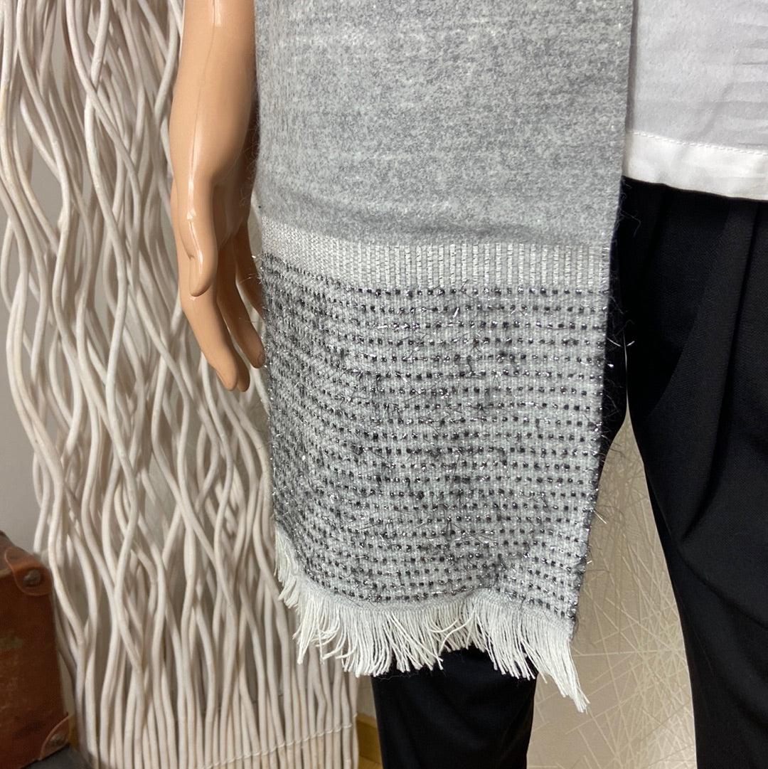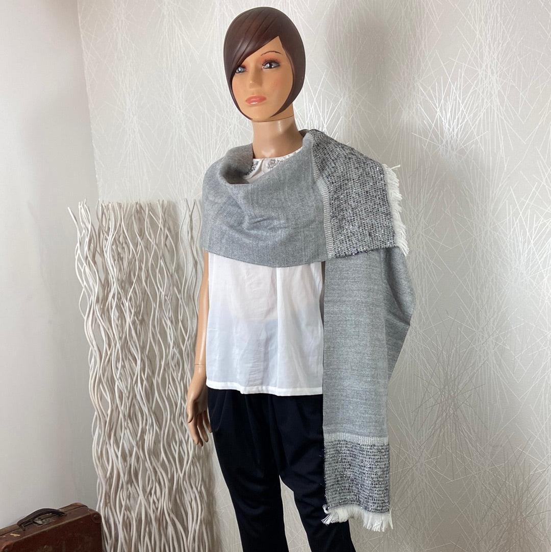 Écharpe large chaude avec laine pour femme, tons gris avec fils argentés, de la marque Articles de Paris.