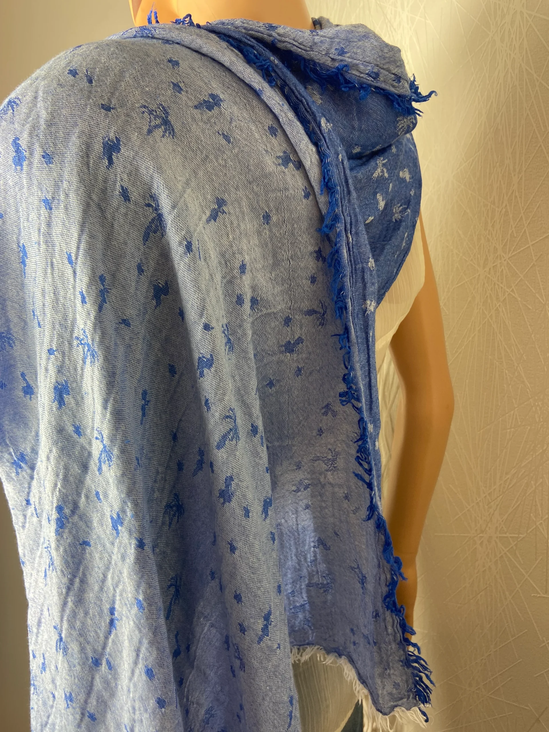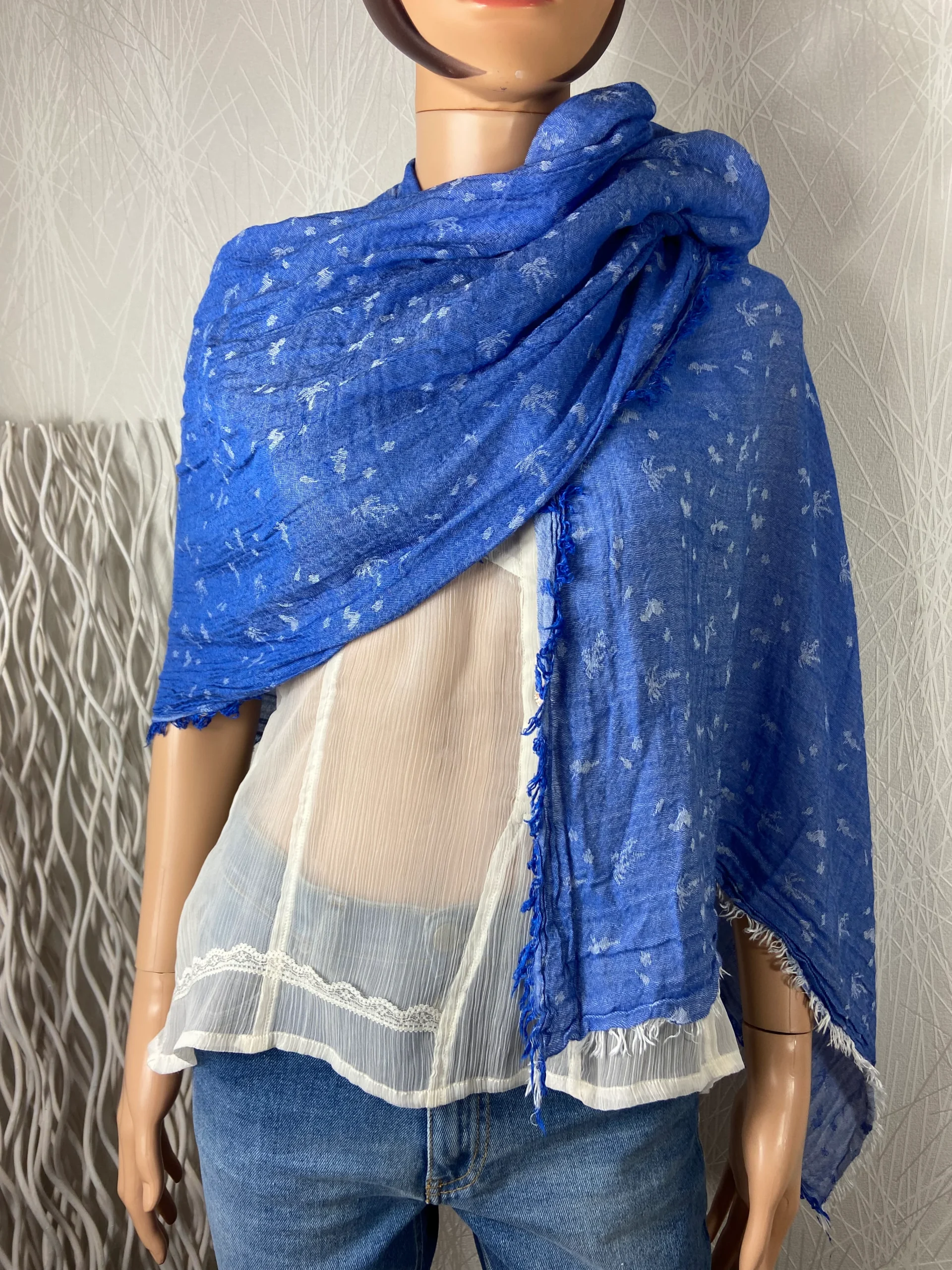 Foulard bleu réversible avec motifs de la marque Pako Litto. Matière : 50% micromodal – 50% polyester Couleur : Bleu Marque : Pako Litto Taille Unique – Réf : TUSE5959 Dimensions : Longueur : 185 cm ; largeur : 70 cm Valeur en boutique 39 €