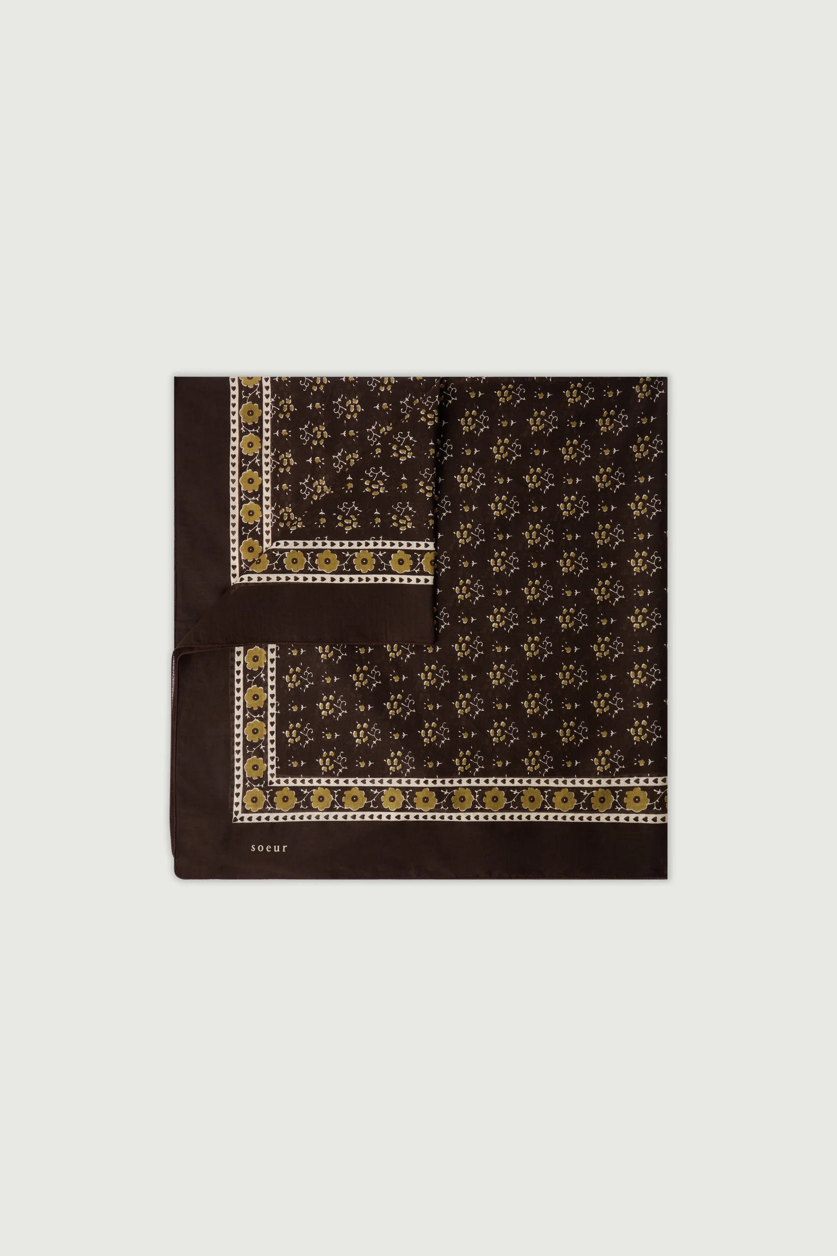 FOULARD CLASSIQUE est une grande étole en voile de coton léger. C’est une pièce emblématique du vestiaire Soeur. Imprimé d’un motif fleuri iconique, ce foulard se décline chaque saison dans des gammes couleurs exclusives et se collectionne à l’infini. – Carrée– Dimensions : 100 x 100 cm– 100% Coton